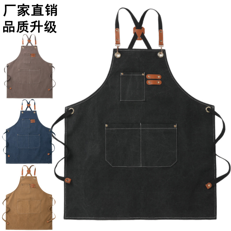 두꺼운 캔버스 앞치마 대외 무역 작업복 얼룩 방지 원예 커피 숍 아마존 방수 원예 주방 크로스 보더 여성스토어 가기