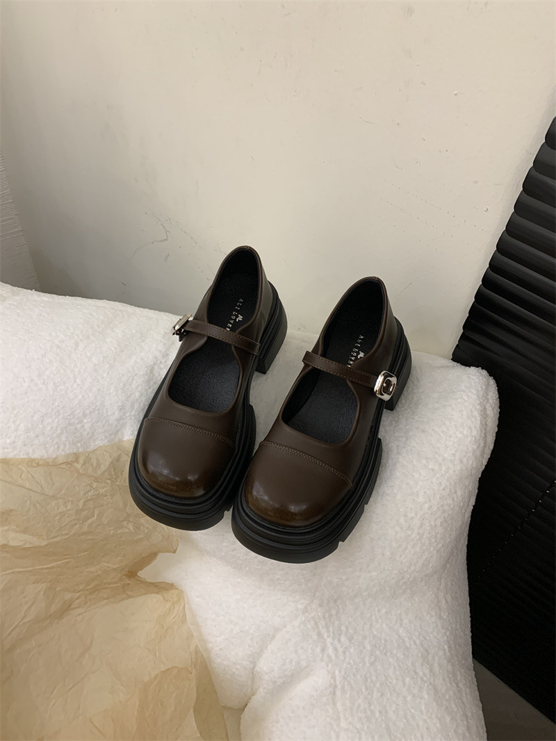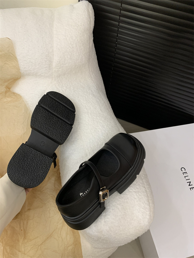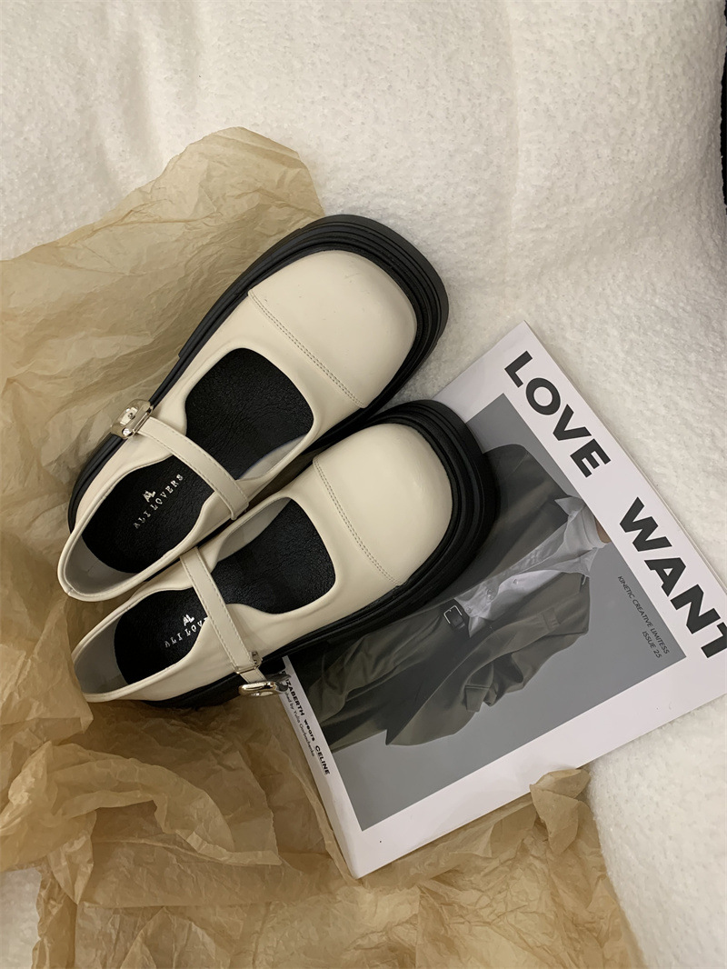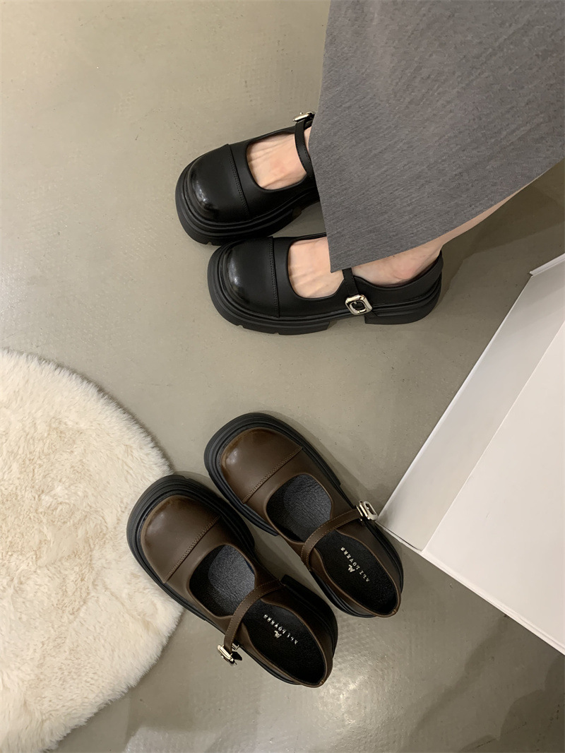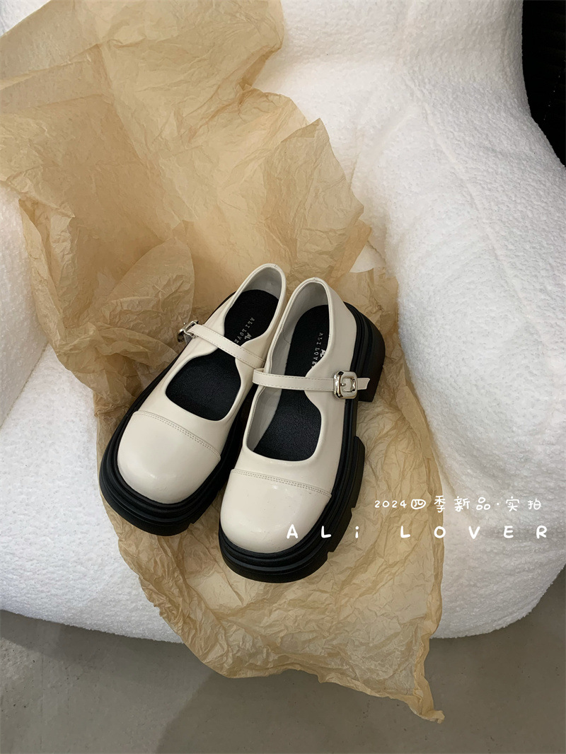 여성을위한 프랑스 복고풍 얕은 굽 싱글 신발 2024 새로운 봄, 가을 디자인 두꺼운 밑창 영국 스타일 작은 가죽 신발