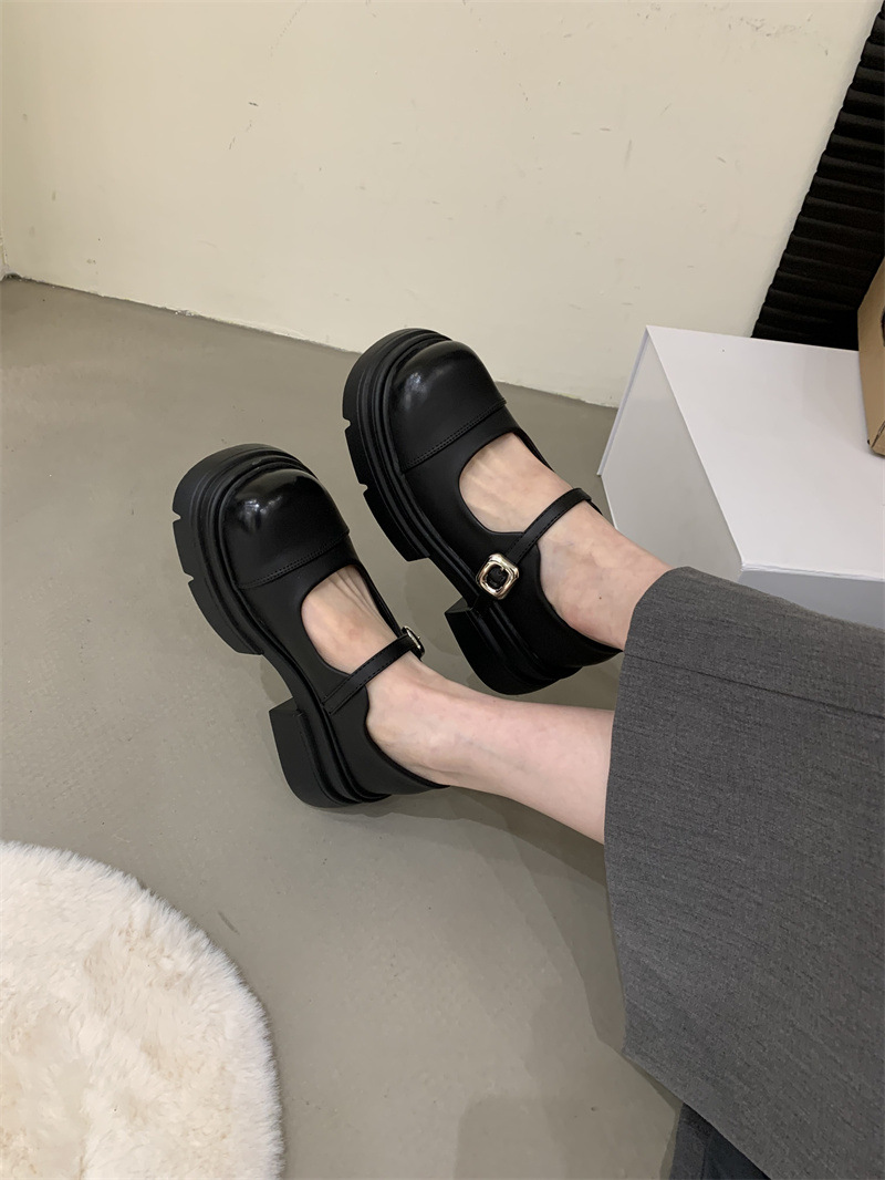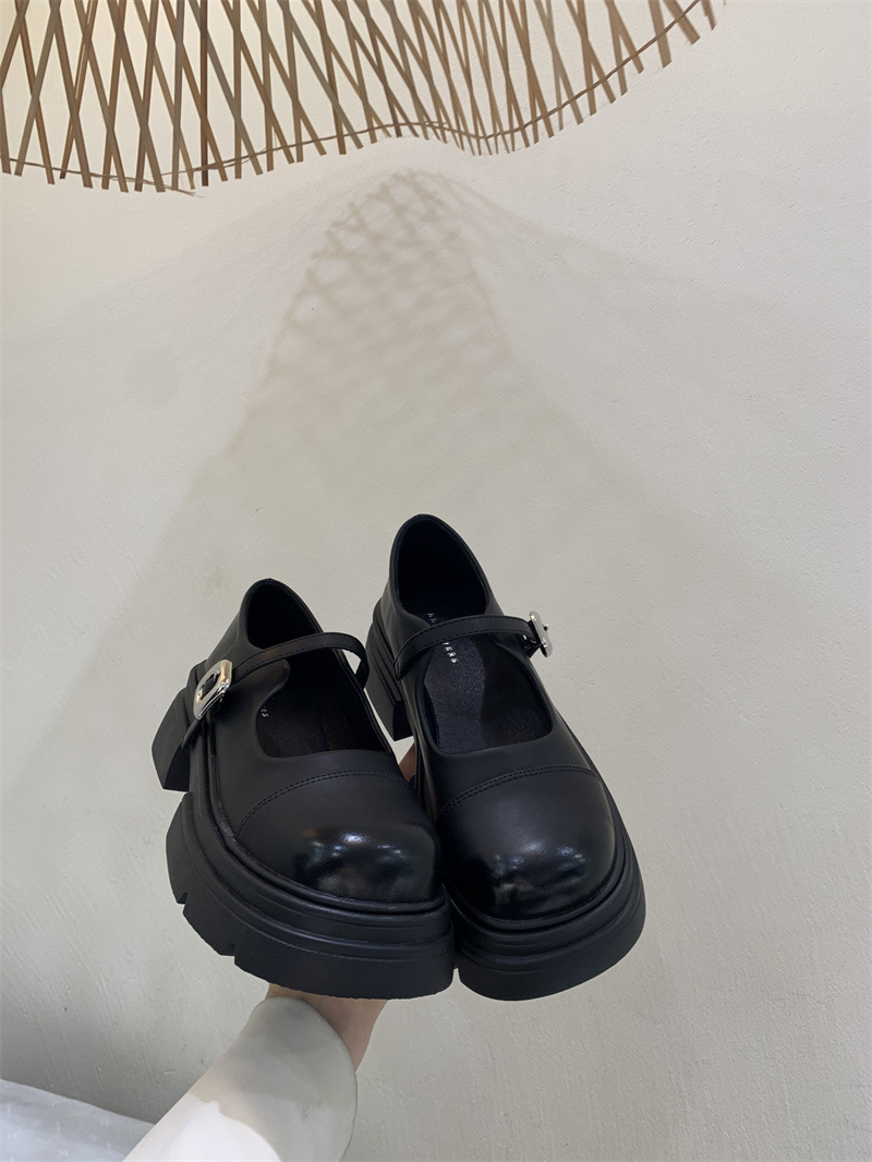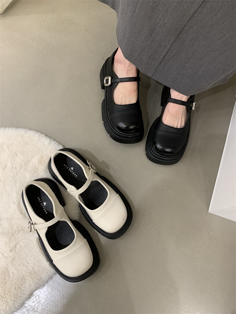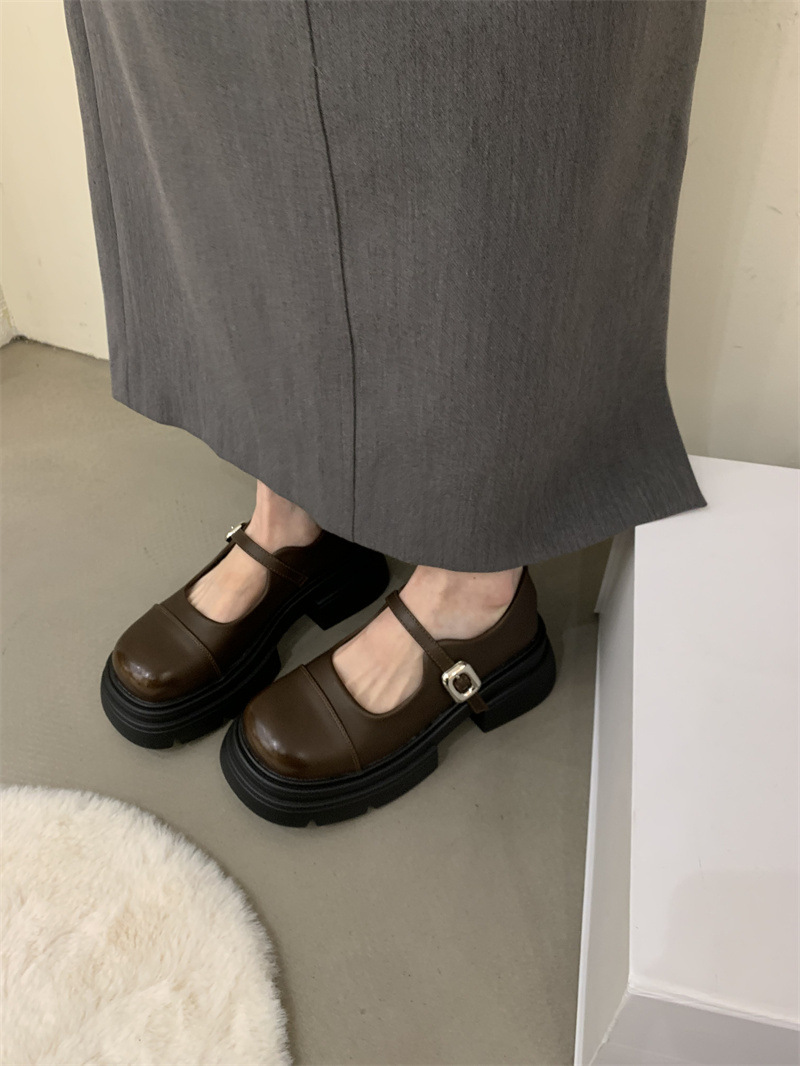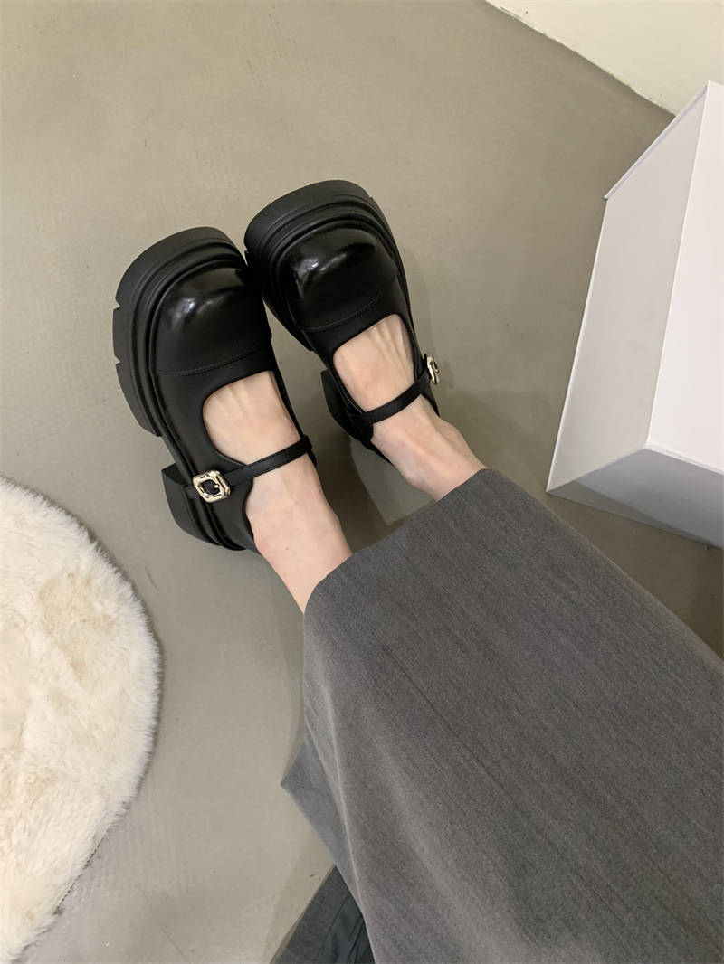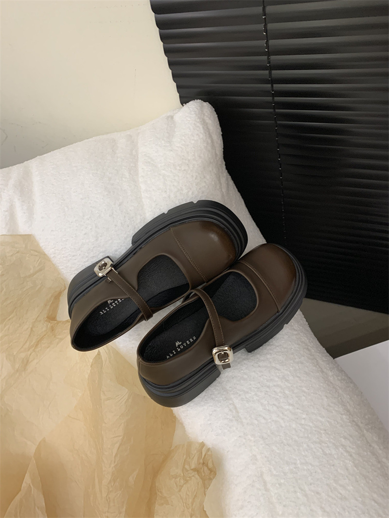 여성을위한 프랑스 복고풍 얕은 굽 싱글 신발 2024 새로운 봄, 가을 디자인 두꺼운 밑창 영국 스타일 작은 가죽 신발
