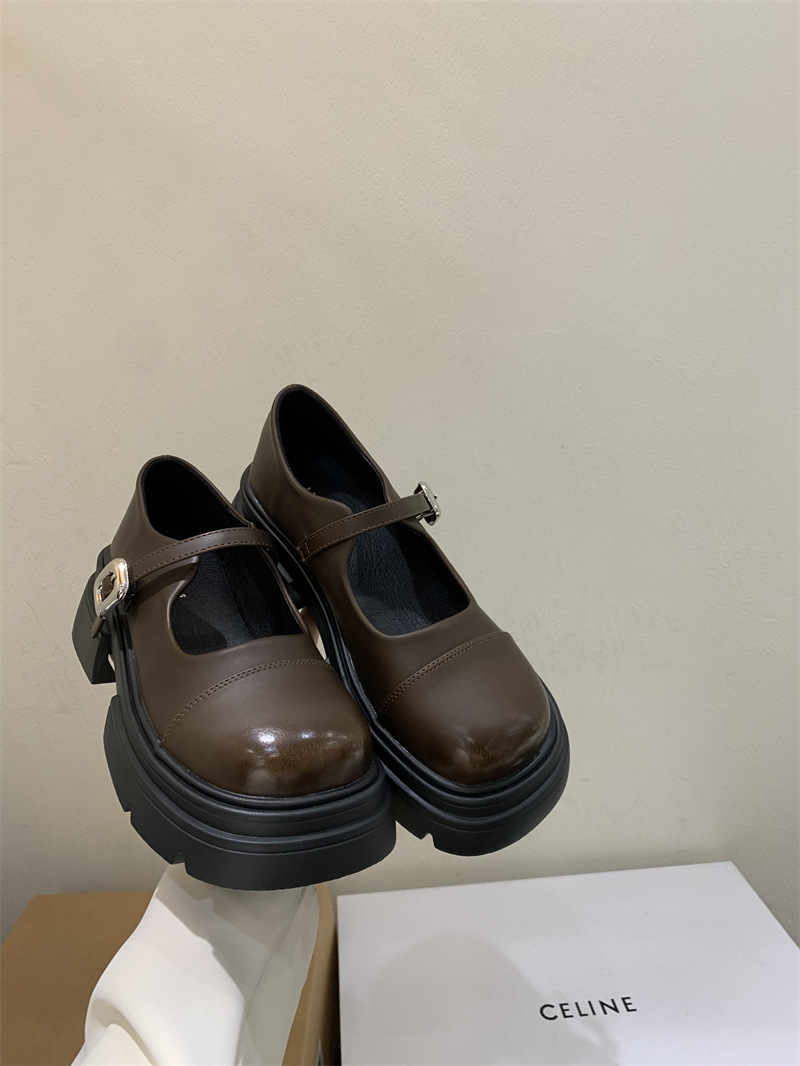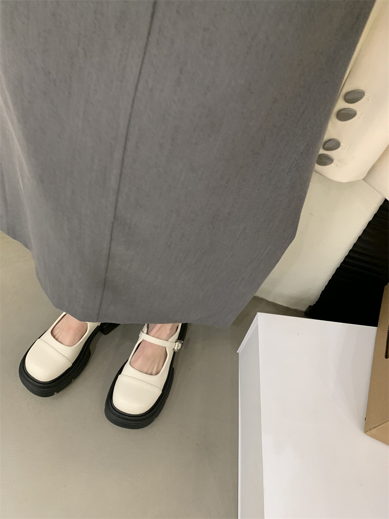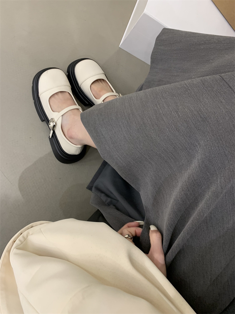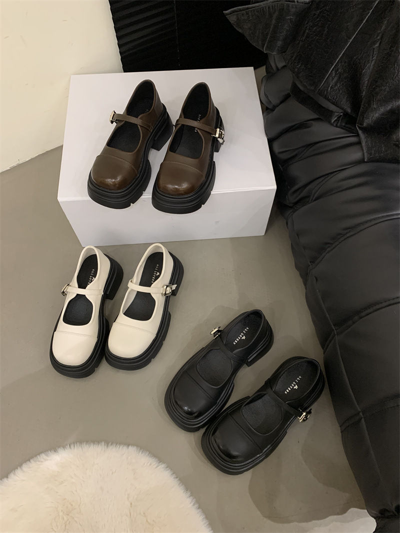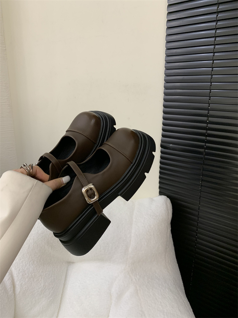 여성을위한 프랑스 복고풍 얕은 굽 싱글 신발 2024 새로운 봄, 가을 디자인 두꺼운 밑창 영국 스타일 작은 가죽 신발