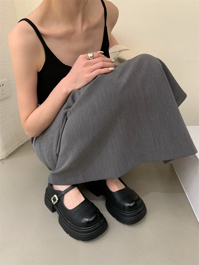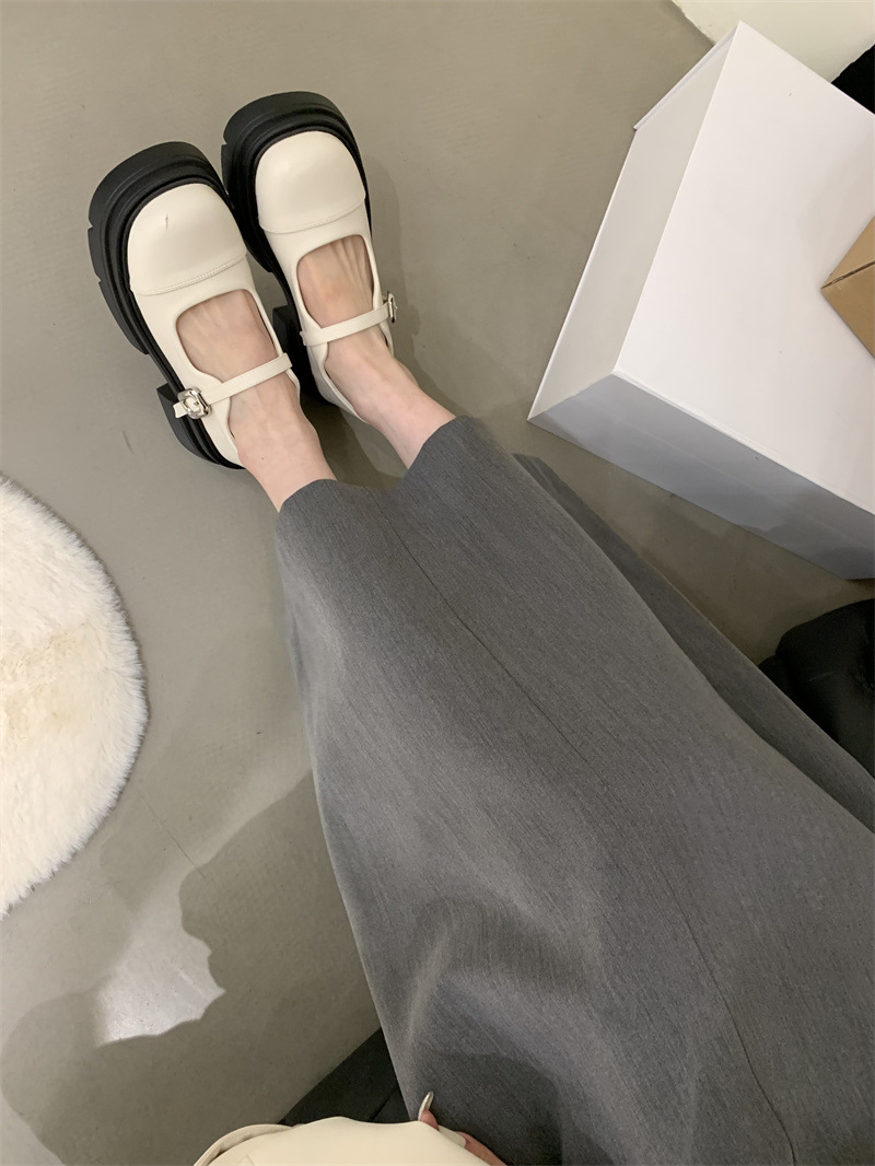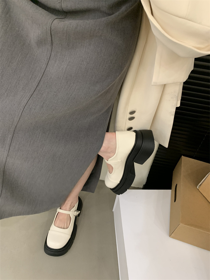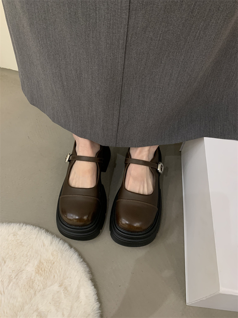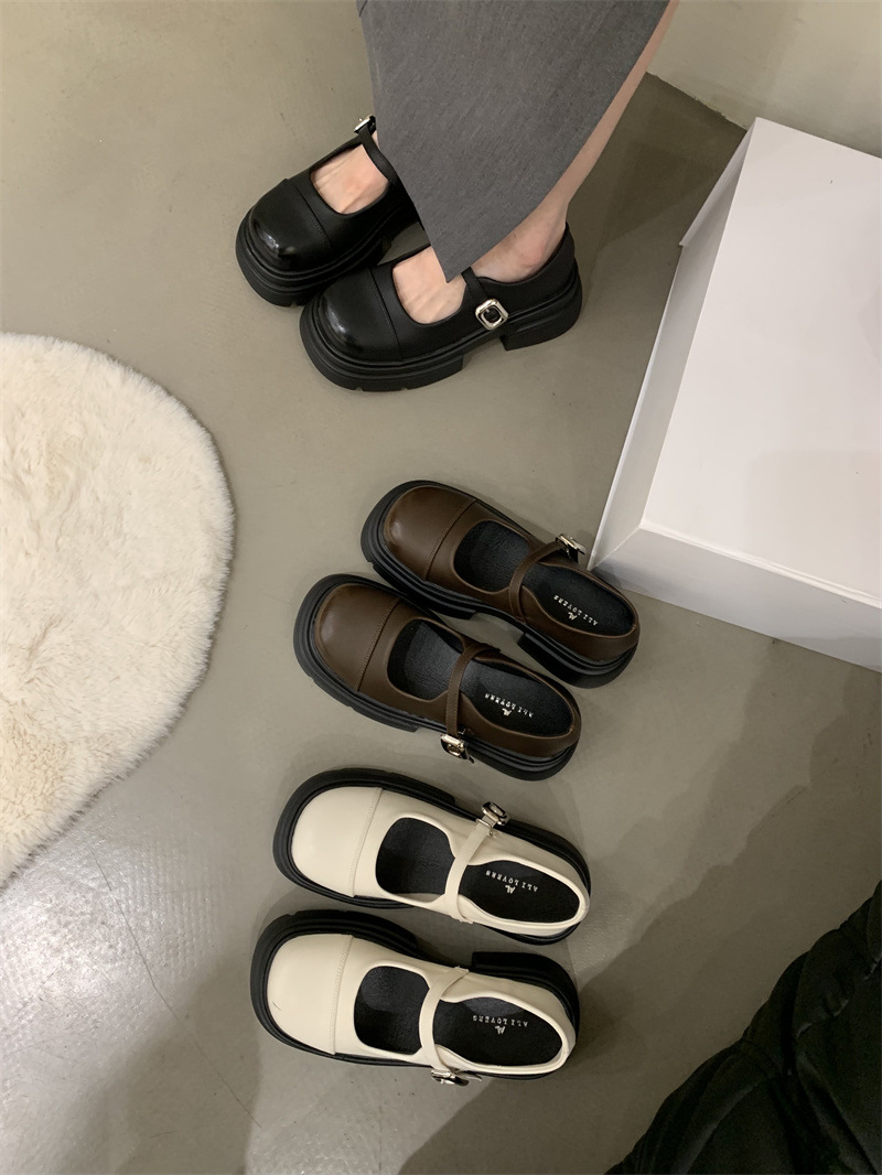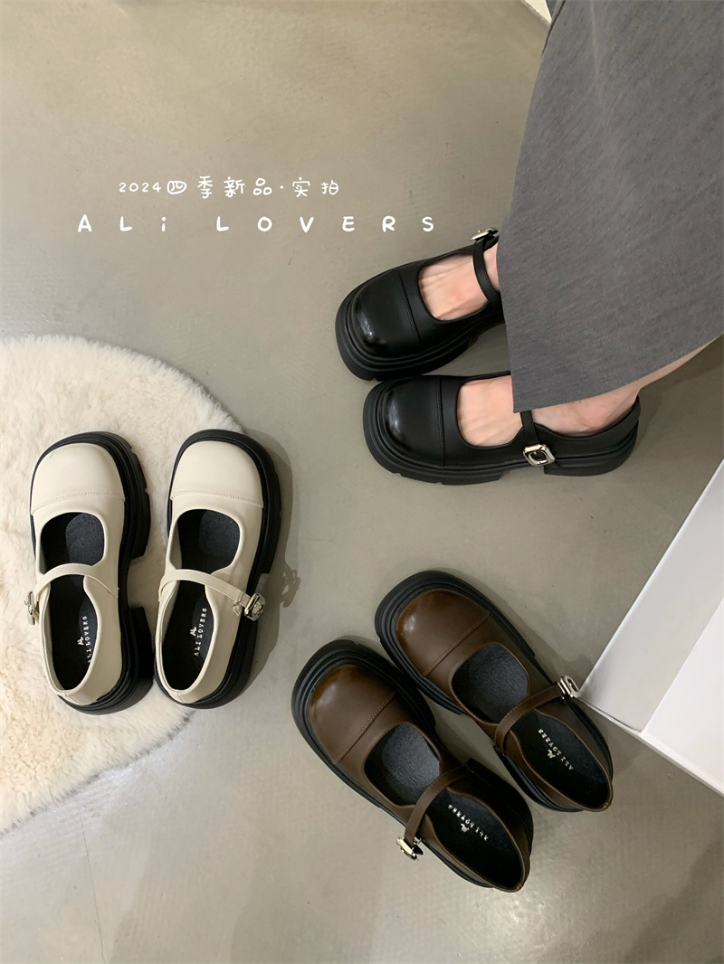 여성을위한 프랑스 복고풍 얕은 굽 싱글 신발 2024 새로운 봄, 가을 디자인 두꺼운 밑창 영국 스타일 작은 가죽 신발스토어 가기
