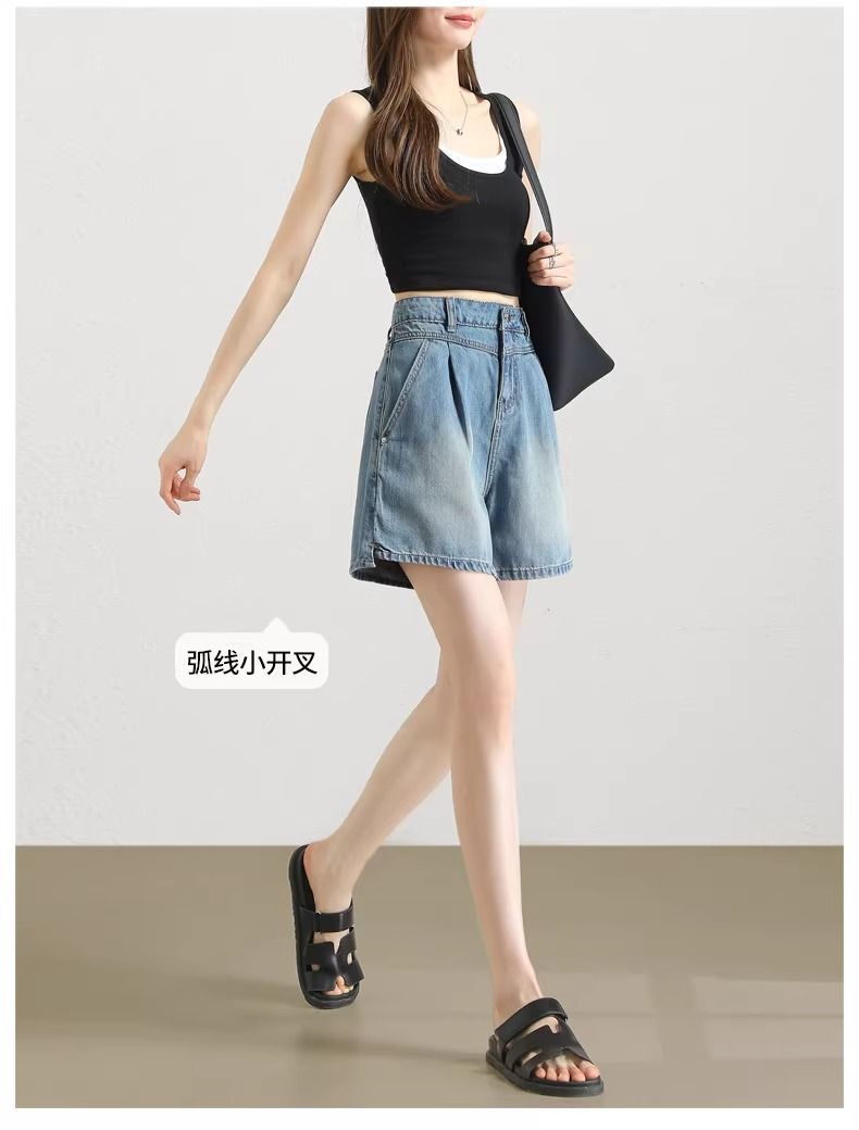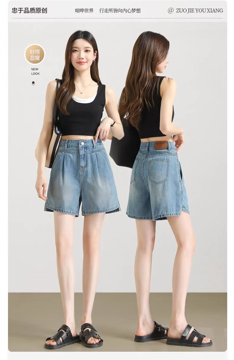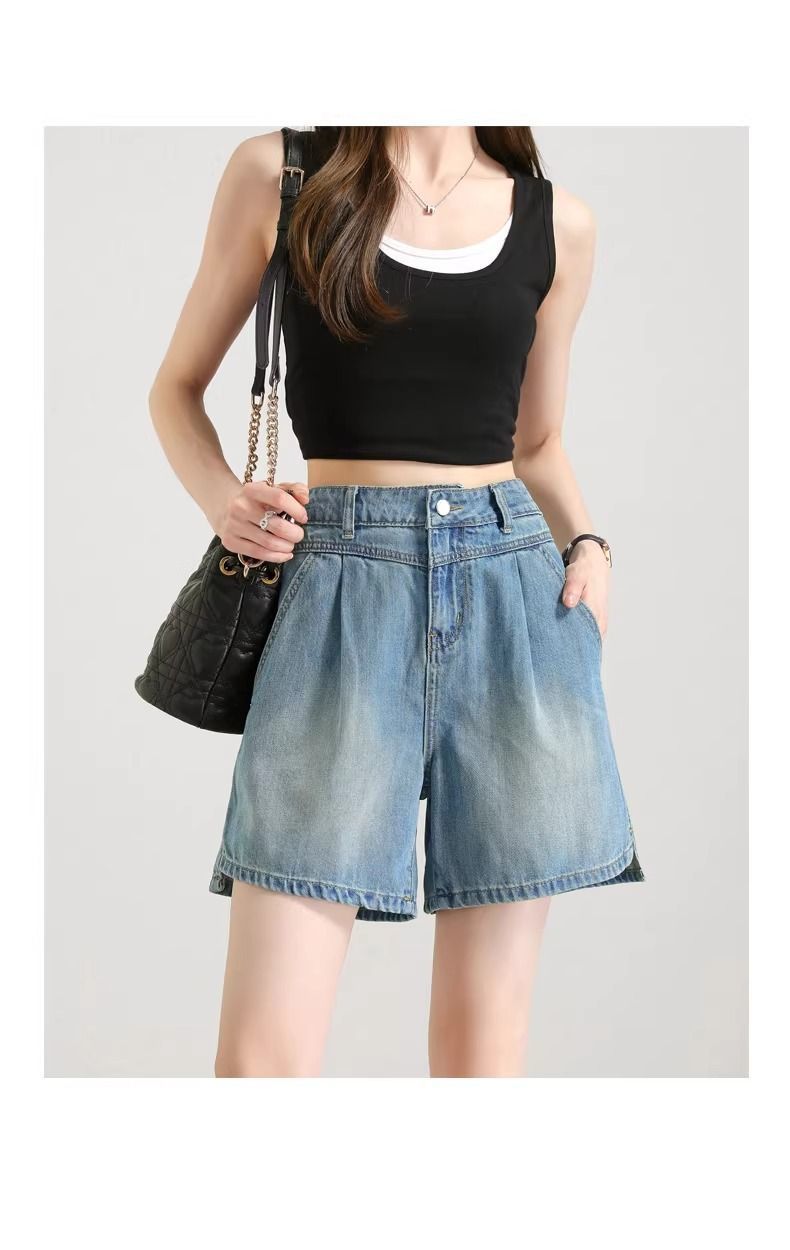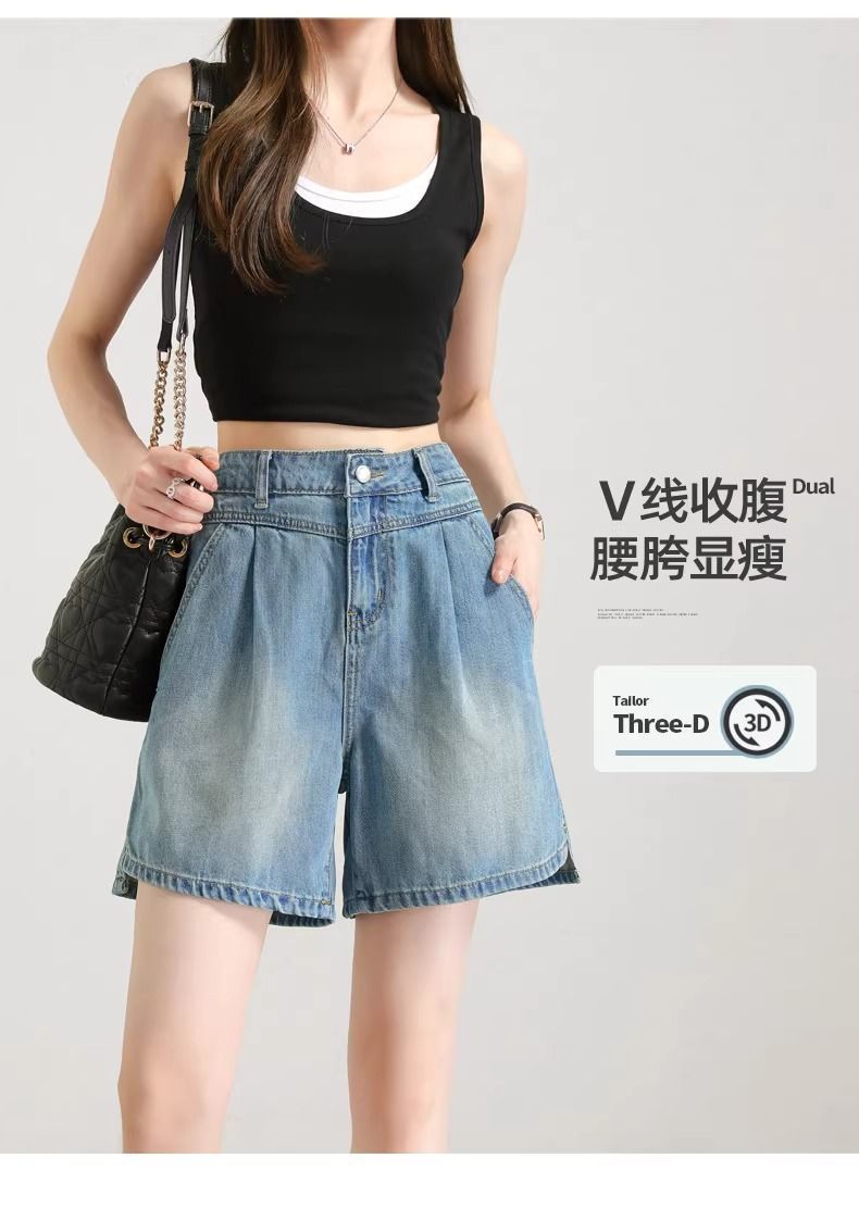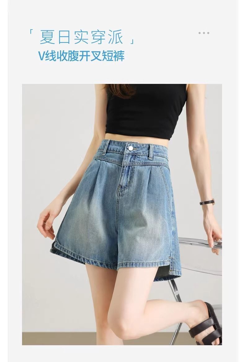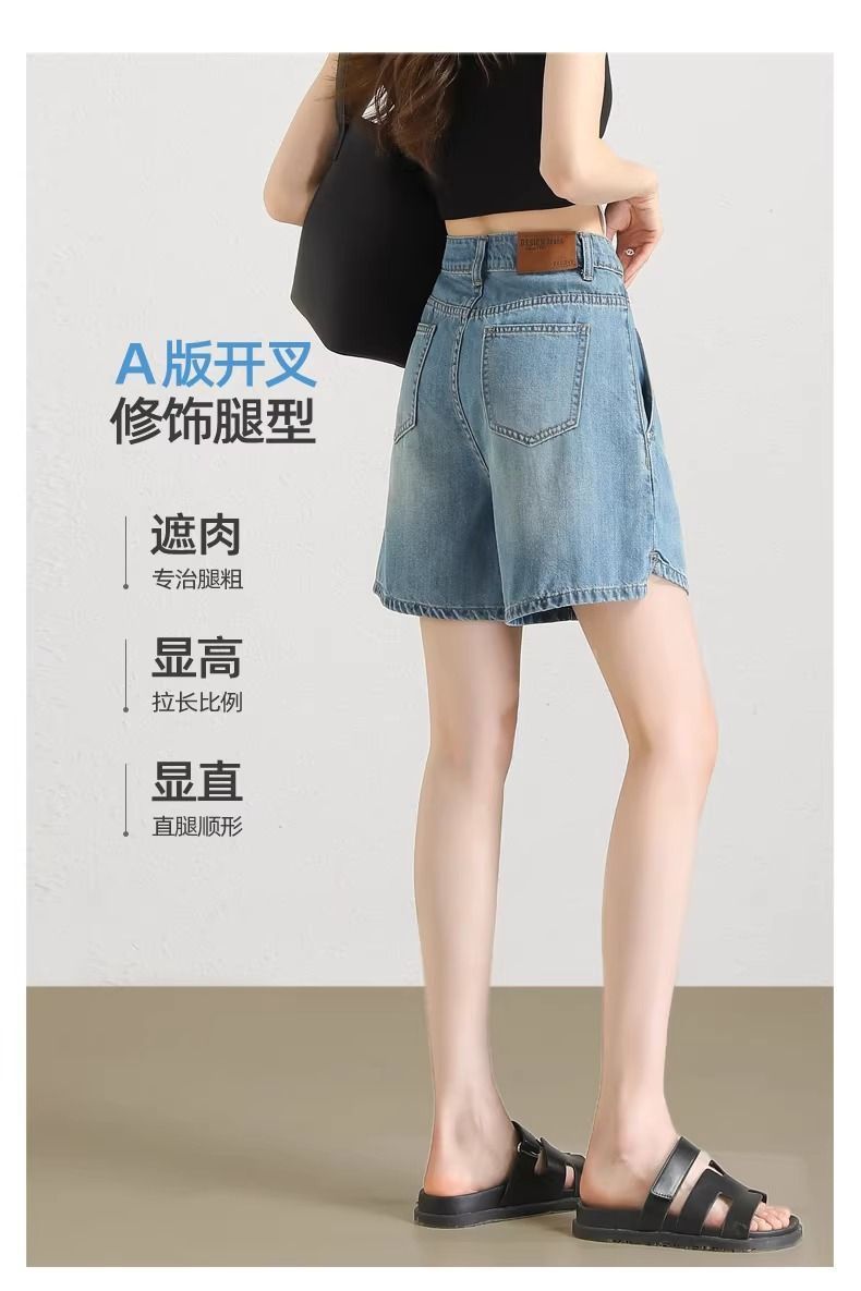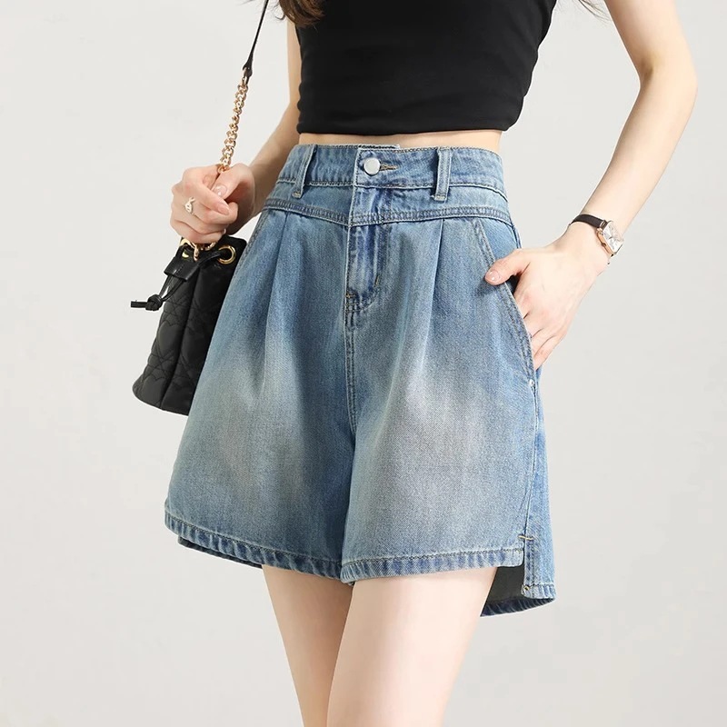 2025년 여름 여성용 슬릿 데님 반바지 얇은 신상 하이웨이스트 A라인 루즈한 불규칙한 중간 길이 바지스토어 가기