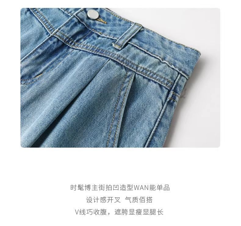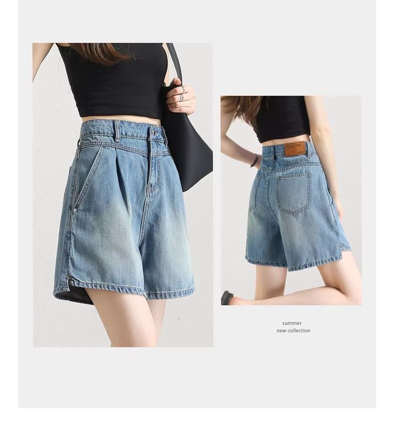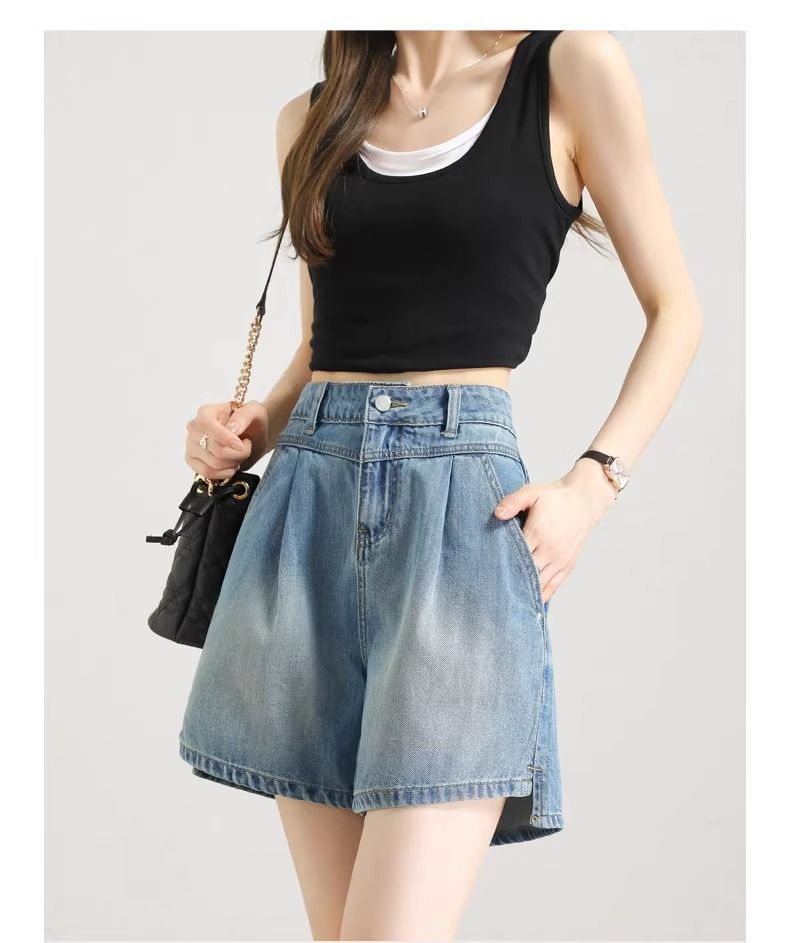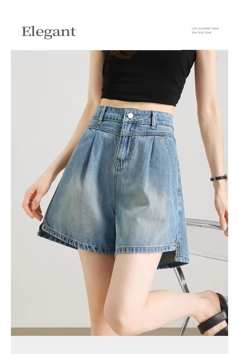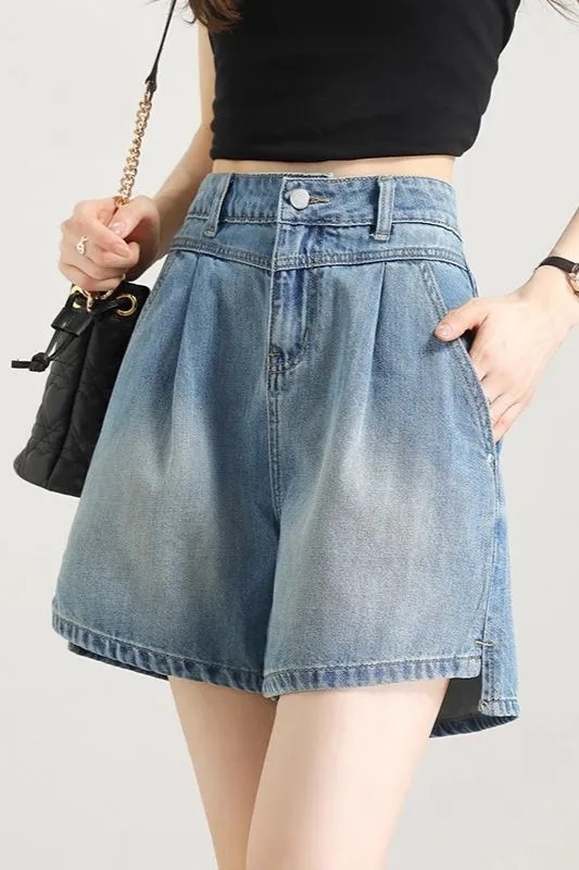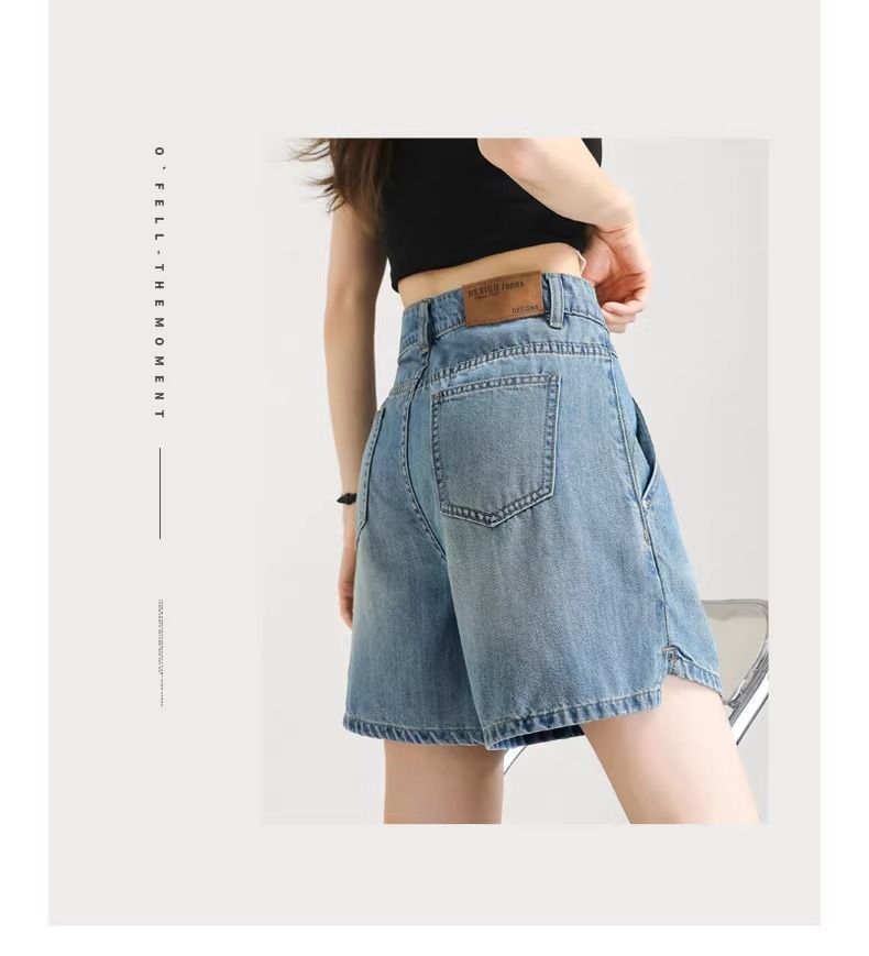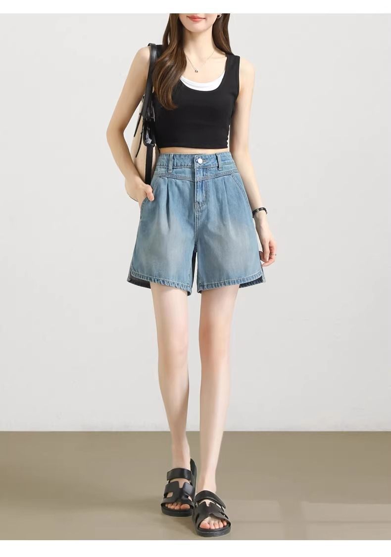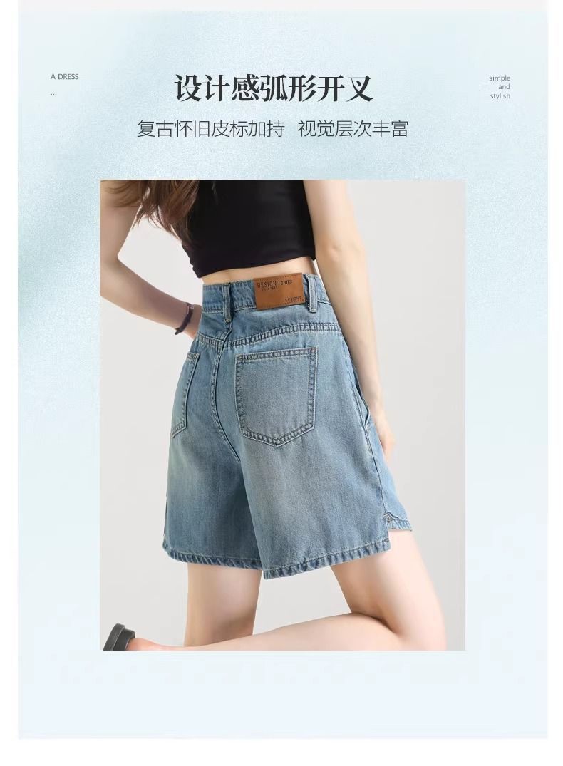 2025년 여름 여성용 슬릿 데님 반바지 얇은 신상 하이웨이스트 A라인 루즈한 불규칙한 중간 길이 바지스토어 가기