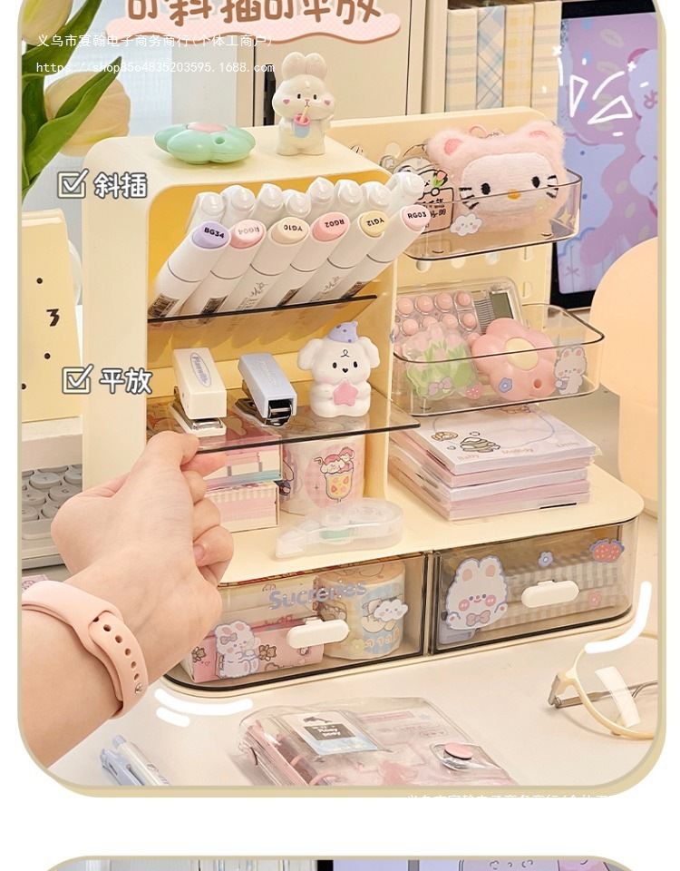 • 흰색 경사 삽입물[] 대형 1-드로 6프레임 펜 홀더 무료 스티커[]
