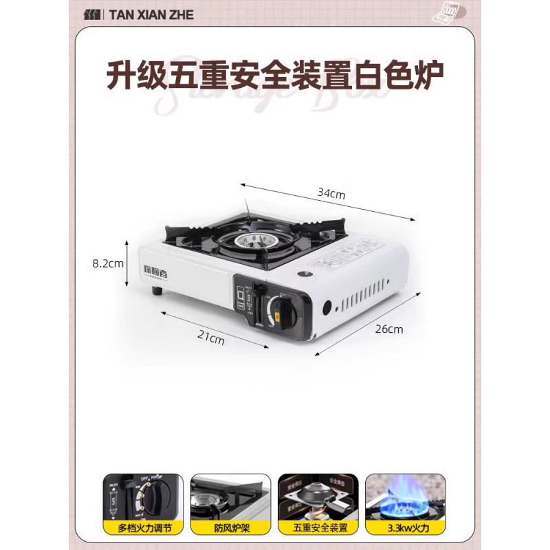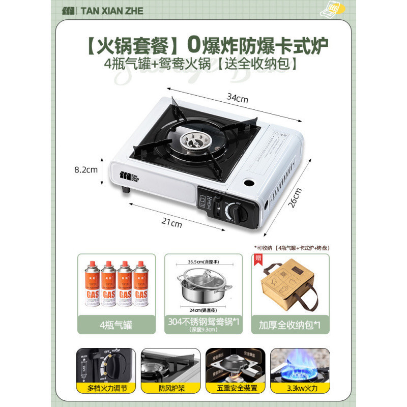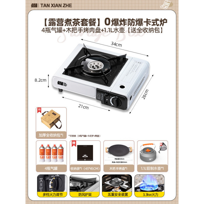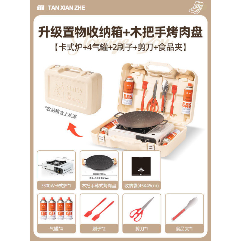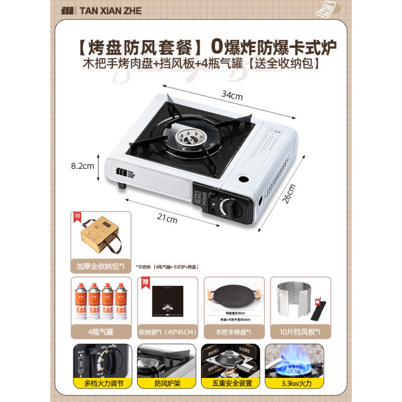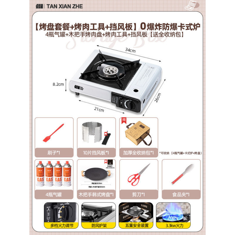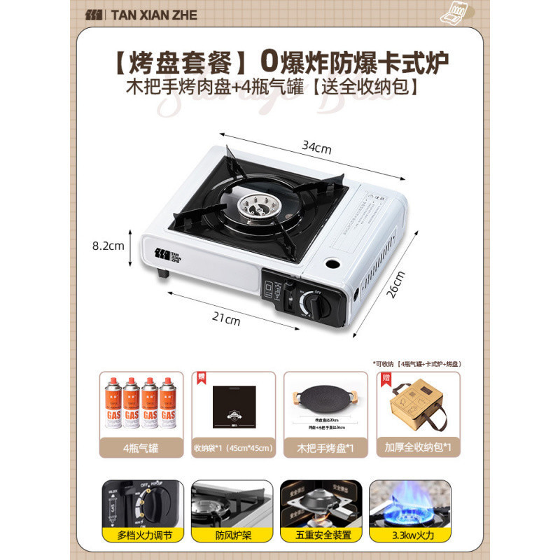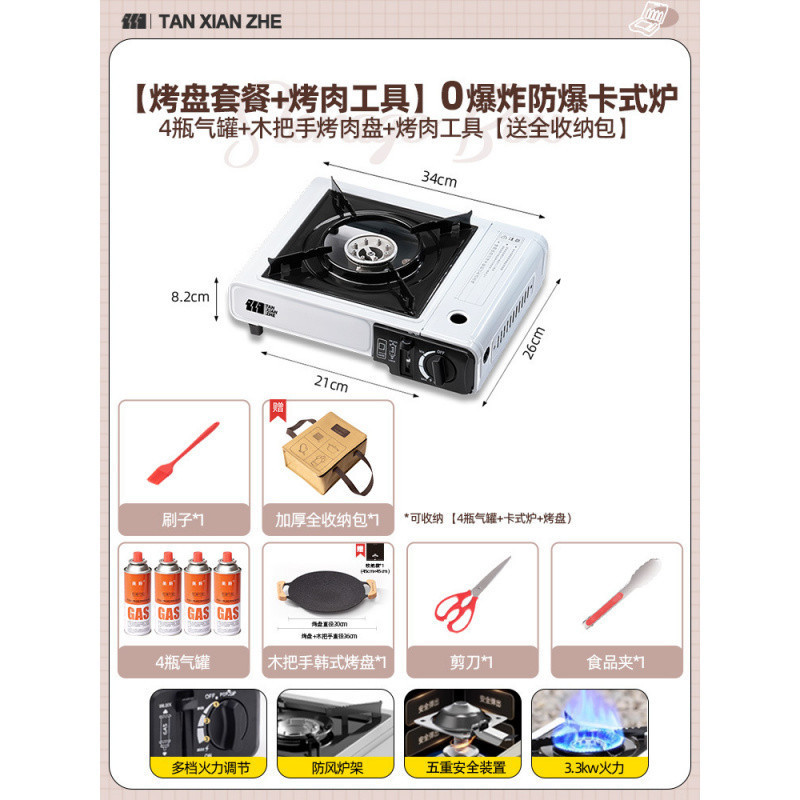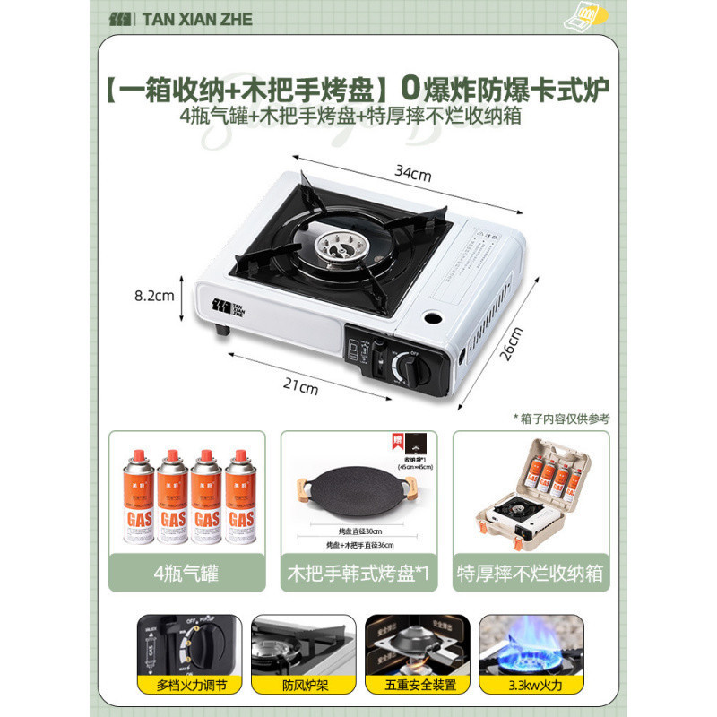• ️[베이킹 팬 세트 + 바베큐 도구] 방폭형 카세트 스토브 + 가스 탱크 4병 + 나무 손잡이 그릴