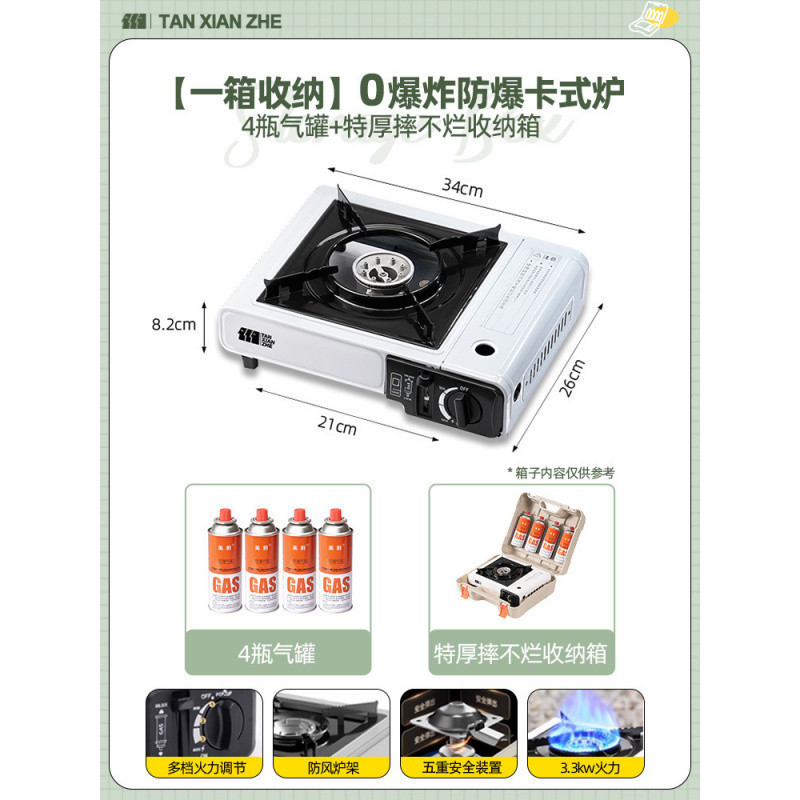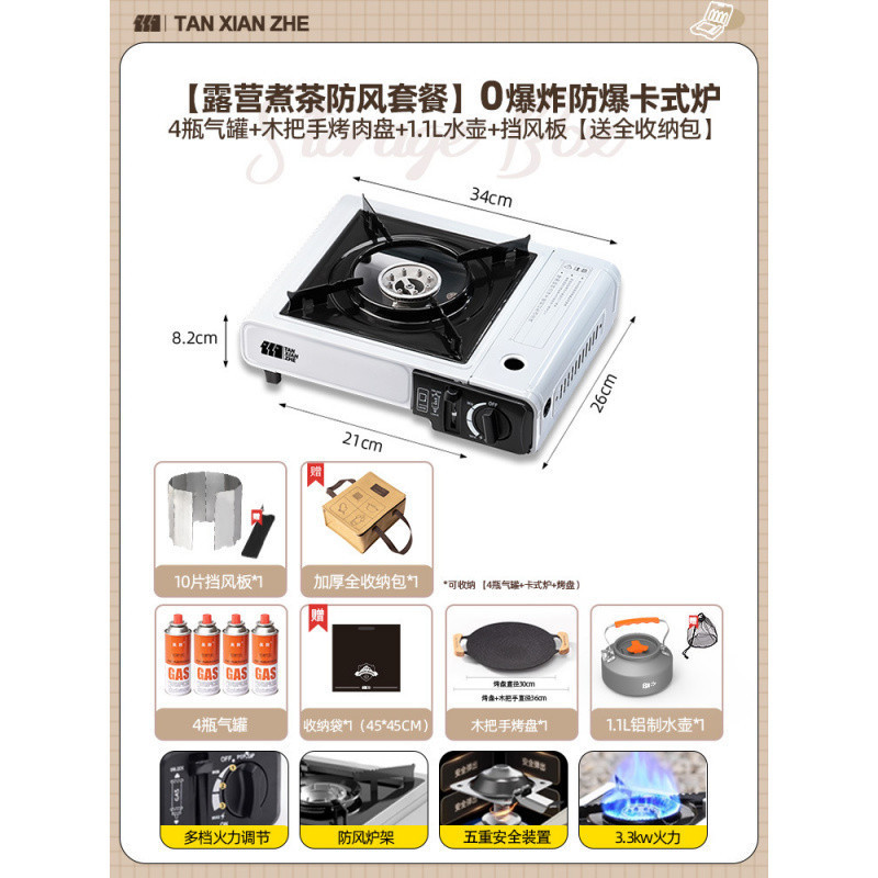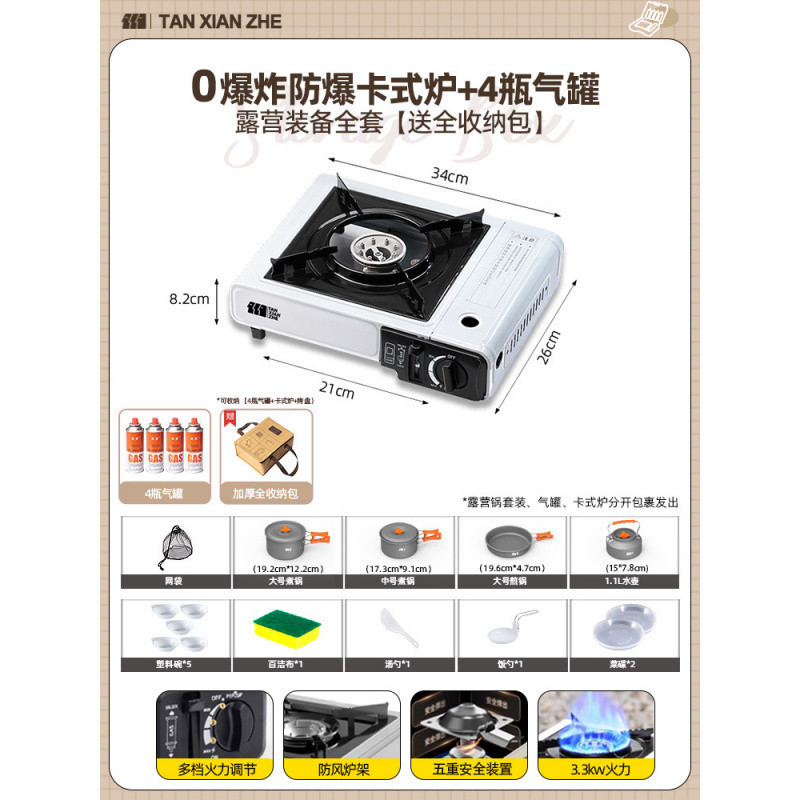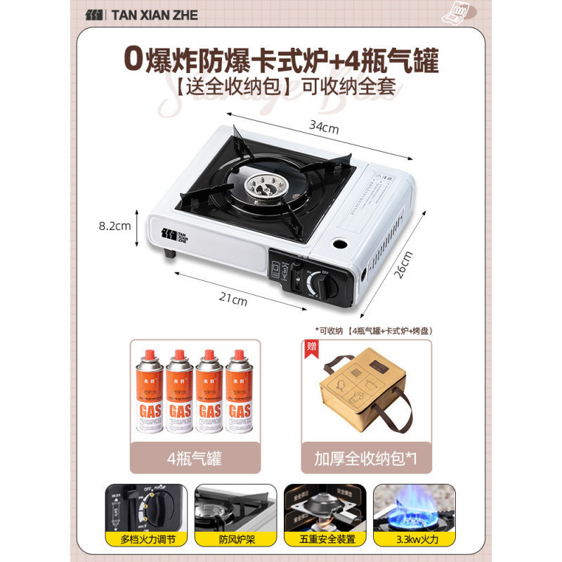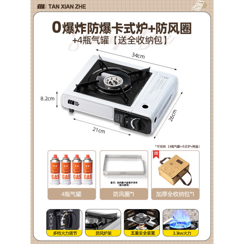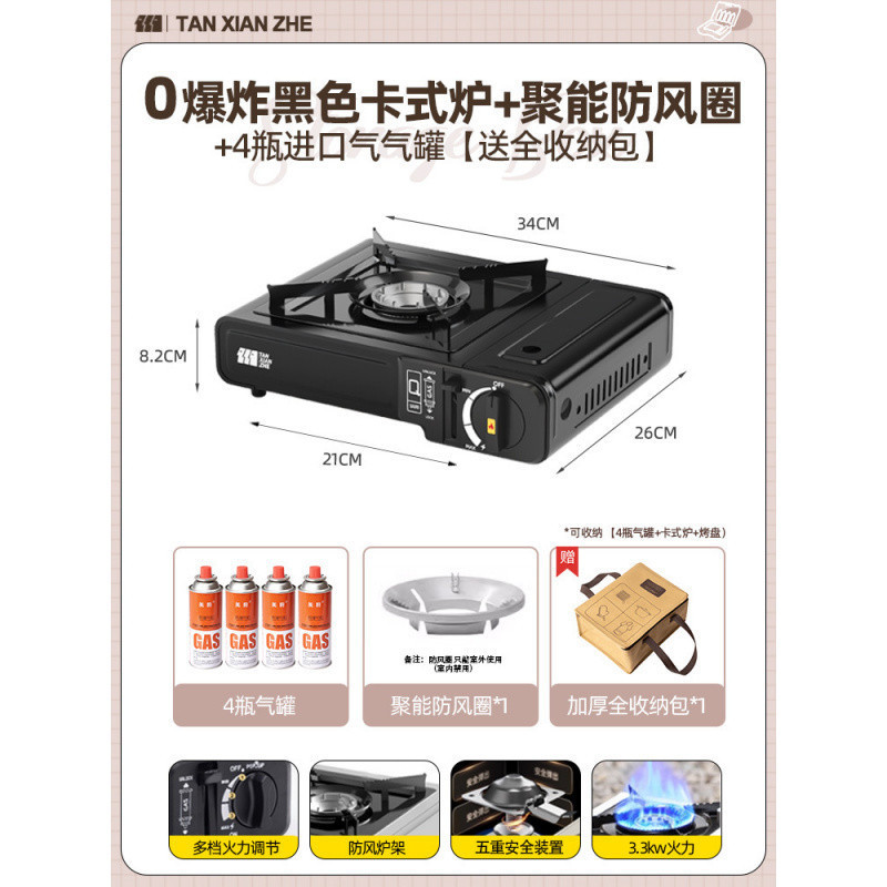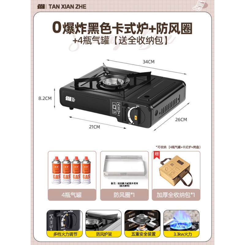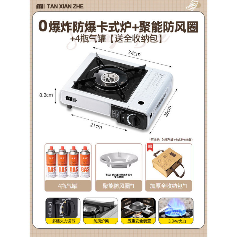• 0 폭발 방폭 카세트 스토브 + 방풍 링 + 가스 탱크 4개 [전체 보관 가방 포함]