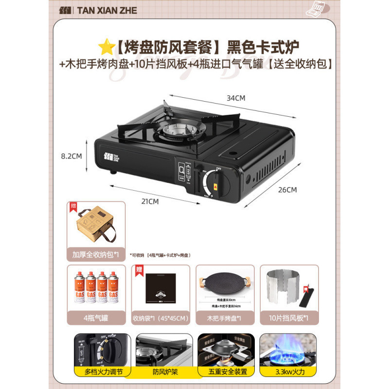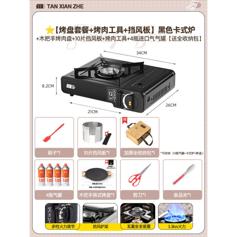 • ️[베이킹 팬 세트 + 바비큐 도구 + 앞유리] 블랙 카세트 스토브 + 가스 탱크 4병 +
