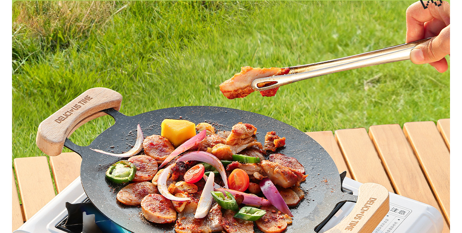 • [베이킹 팬 세트] 방폭형 카세트 스토브 + 나무 손잡이 바비큐 팬 + 가스 탱크 4개 [무료]