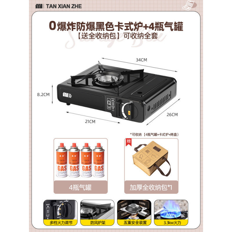 • ️폭발 방지 검정색 카세트 스토브 0개 + 가스 탱크 4개 [전체 보관 가방 포함] 보관 가능