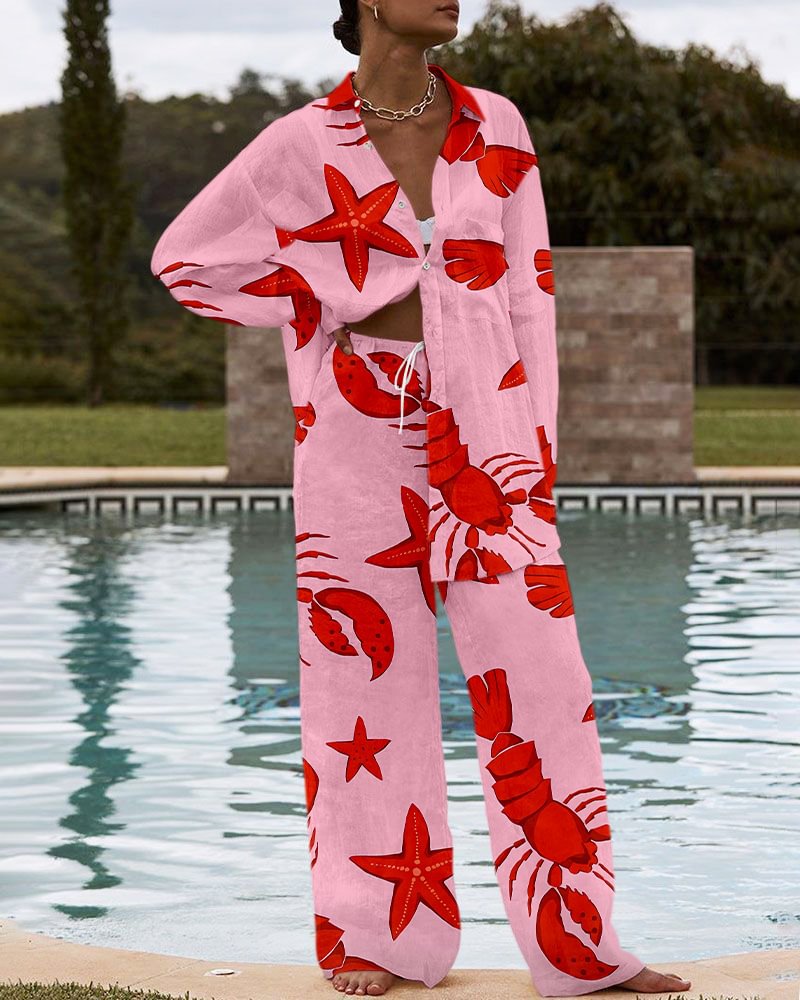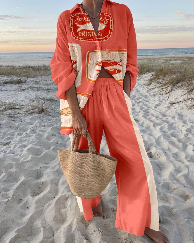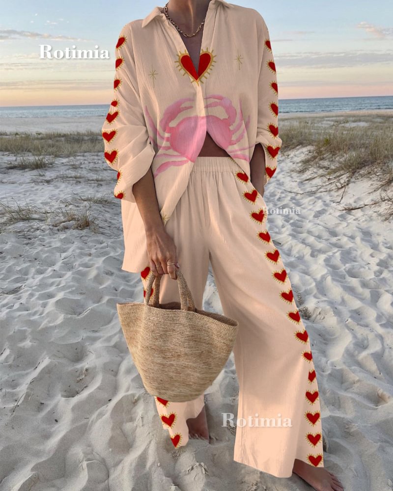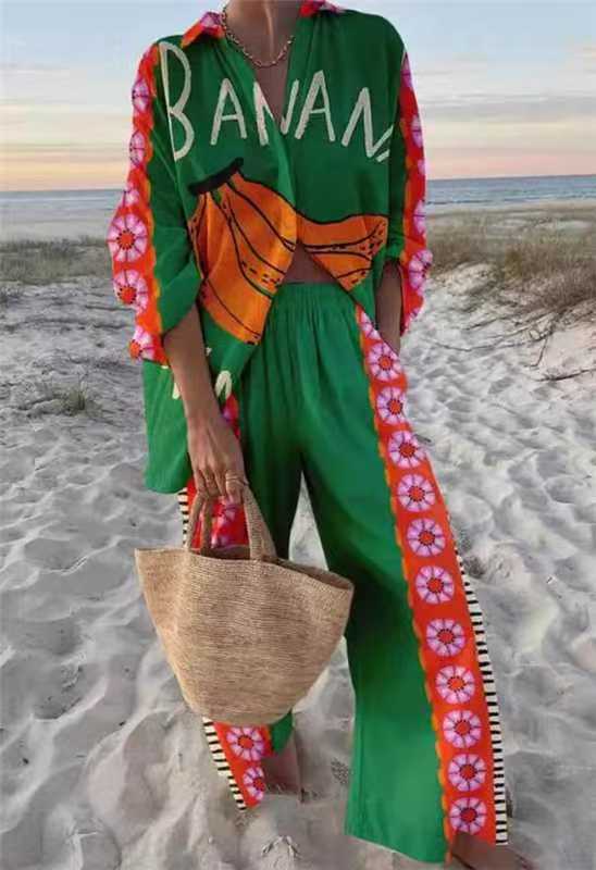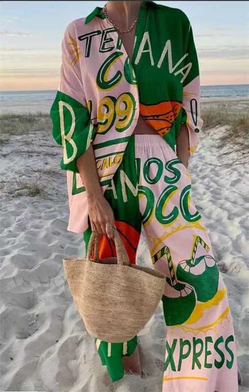 국경 간 TIK Amazon TEMU AliExpress 3D 디지털 꽃 여성 하와이 휴가 스타일 셔츠 캐주얼 슈트