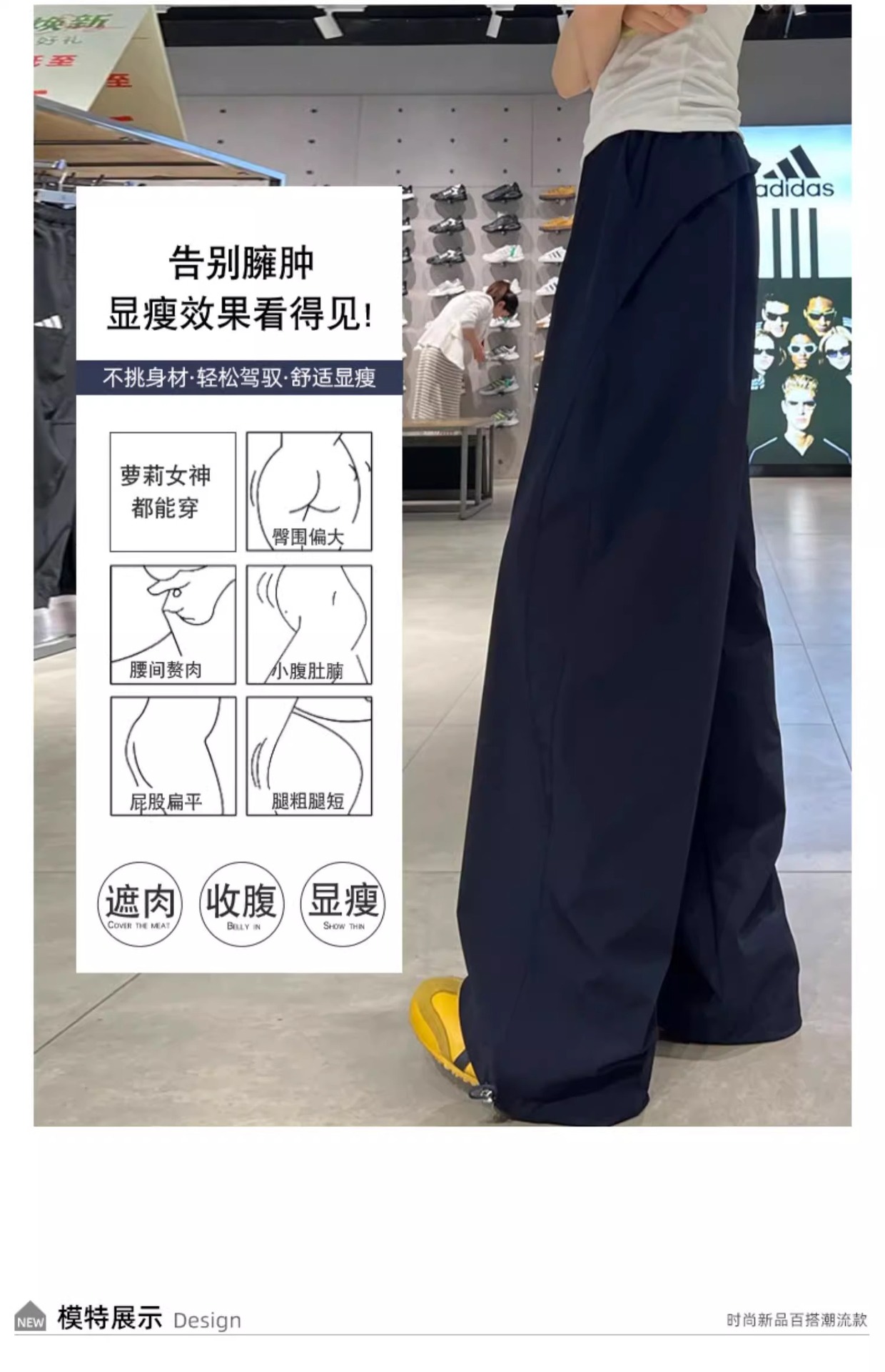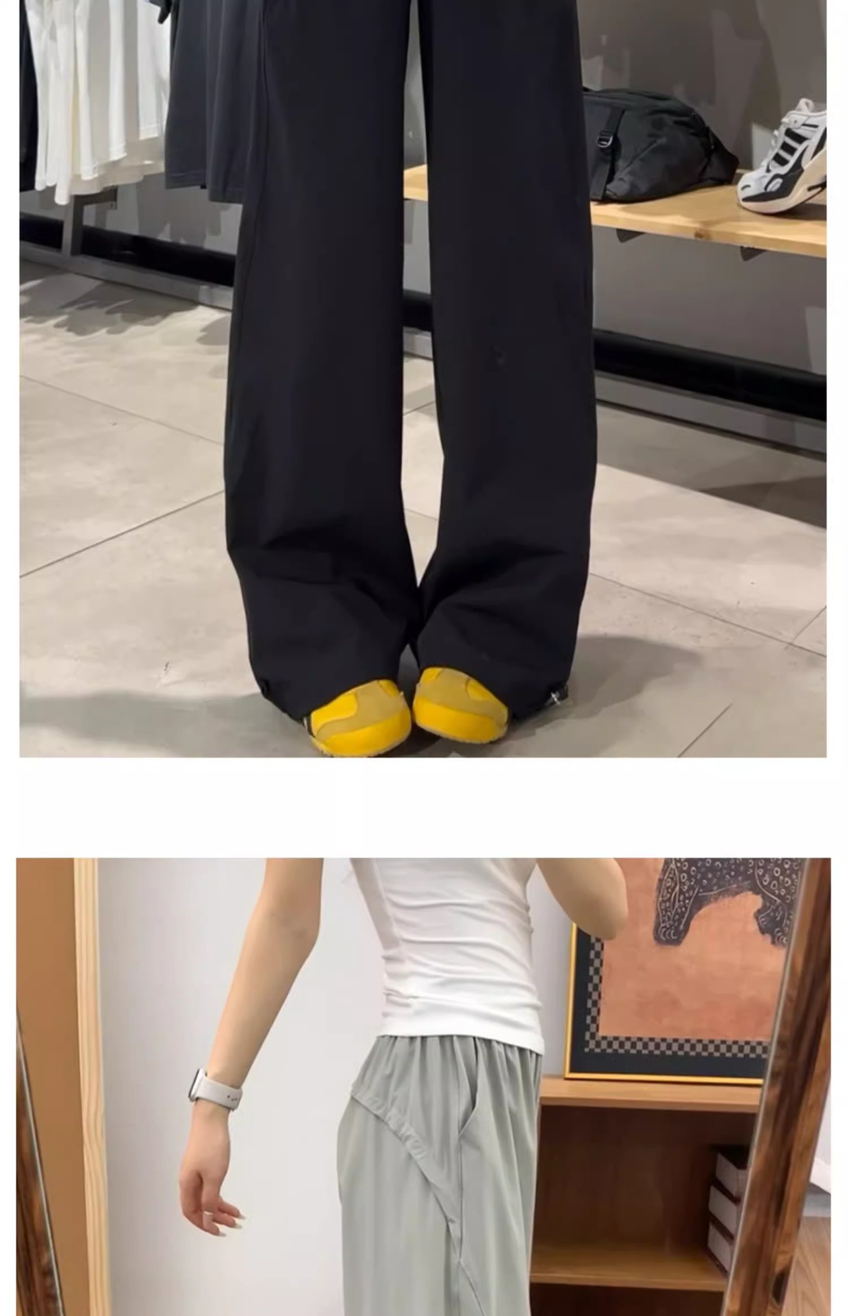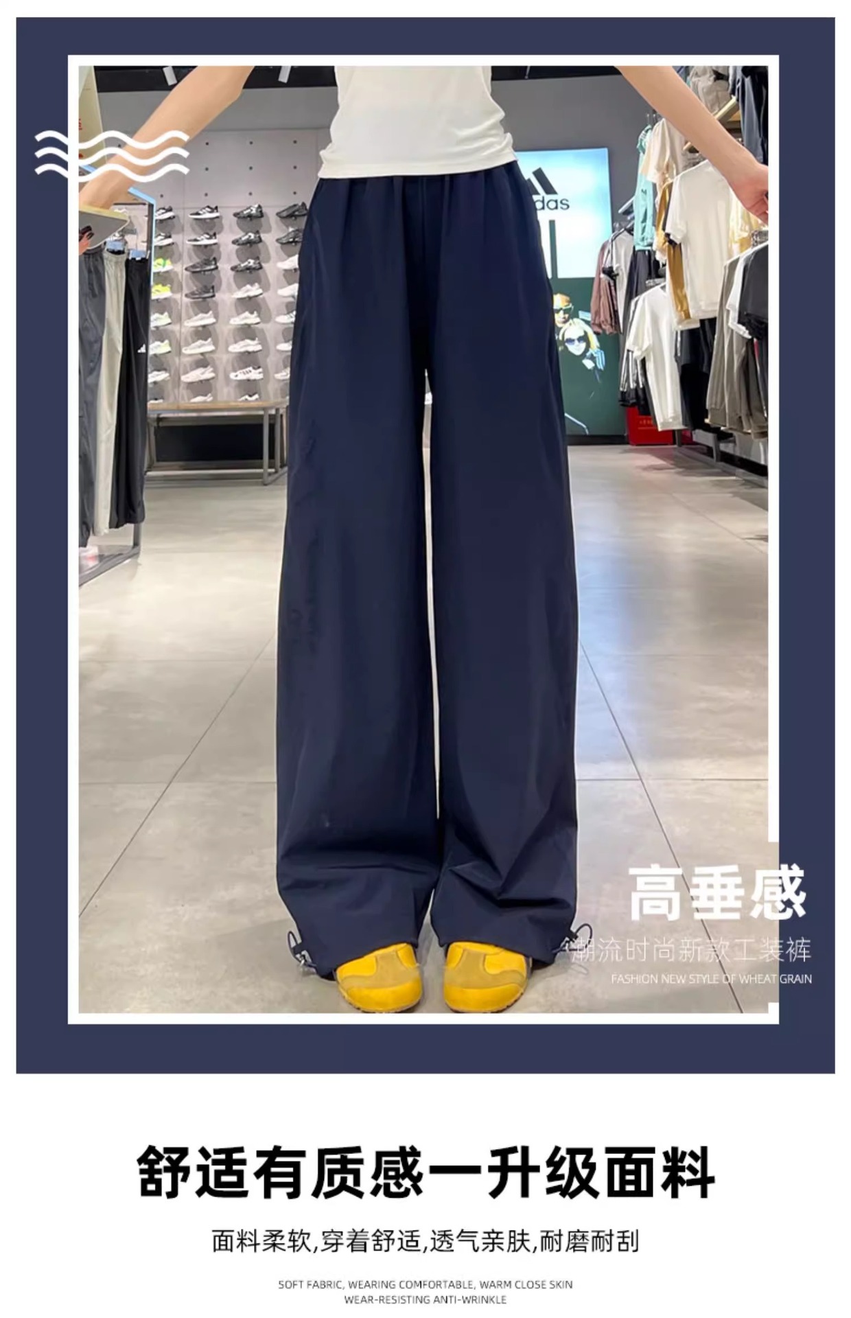 여성을위한 디자인 속건성 작업복 캐주얼 바지 여름 2025 새로운 하이 웨이스트 루즈 드레이프 야외 등산 스포츠 바지스토어 가기