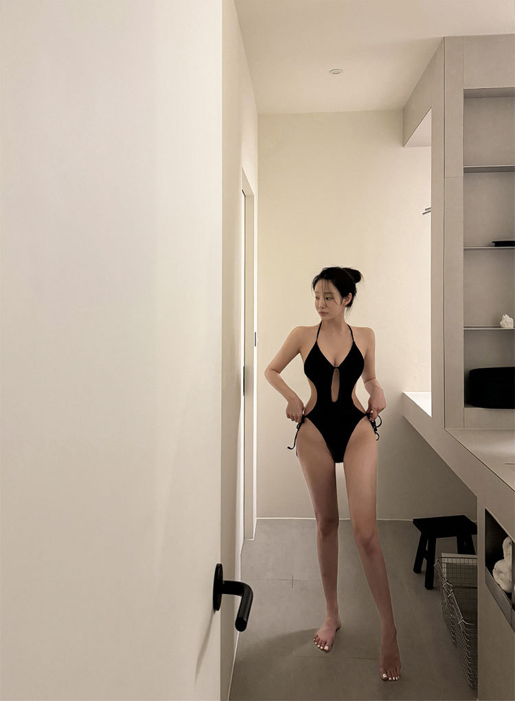 새로운 유럽과 미국 스타일의 원피스 슬림핏 중공 수영복 여성용 홀터넥 스트랩 섹시한 백리스 비키니 온천 휴가스토어 가기