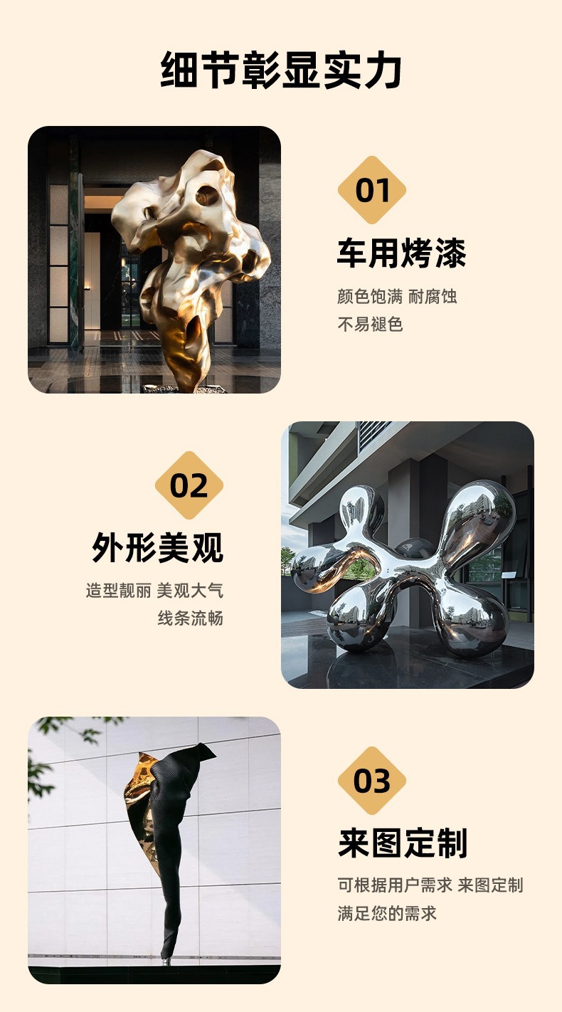 스테인리스 스틸 조각품, 쇼핑몰 광장, 학교, 거울면 장식품, 다양한 디자인, 도면 기반 대형 도시 조각품