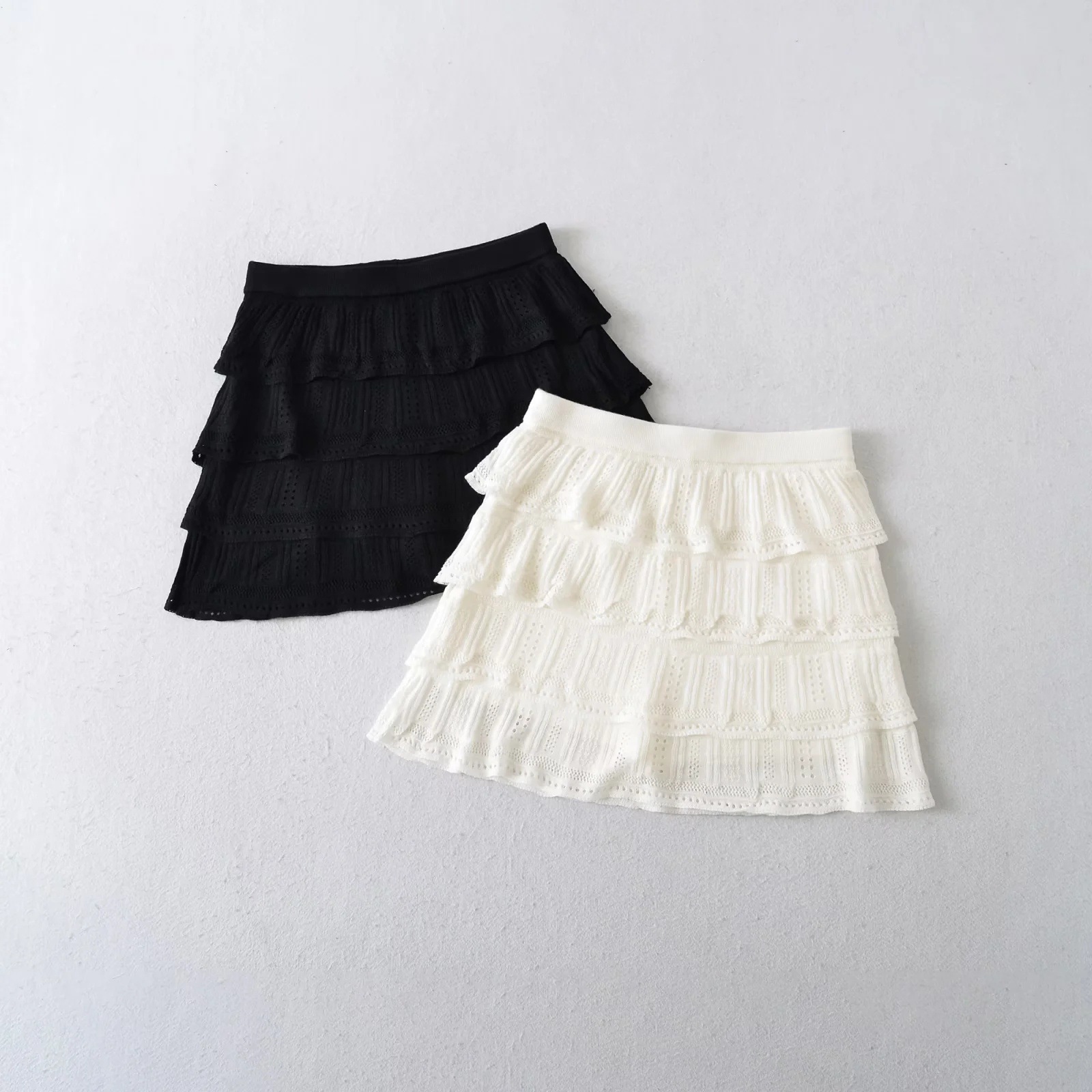 Ins 유럽과 미국 스타일의 핫 소녀 니트 스커트 섹시한 순수한 욕망 하이 웨이스트 슬림 피트 a 라인 케이크 스커트 미니 스커트