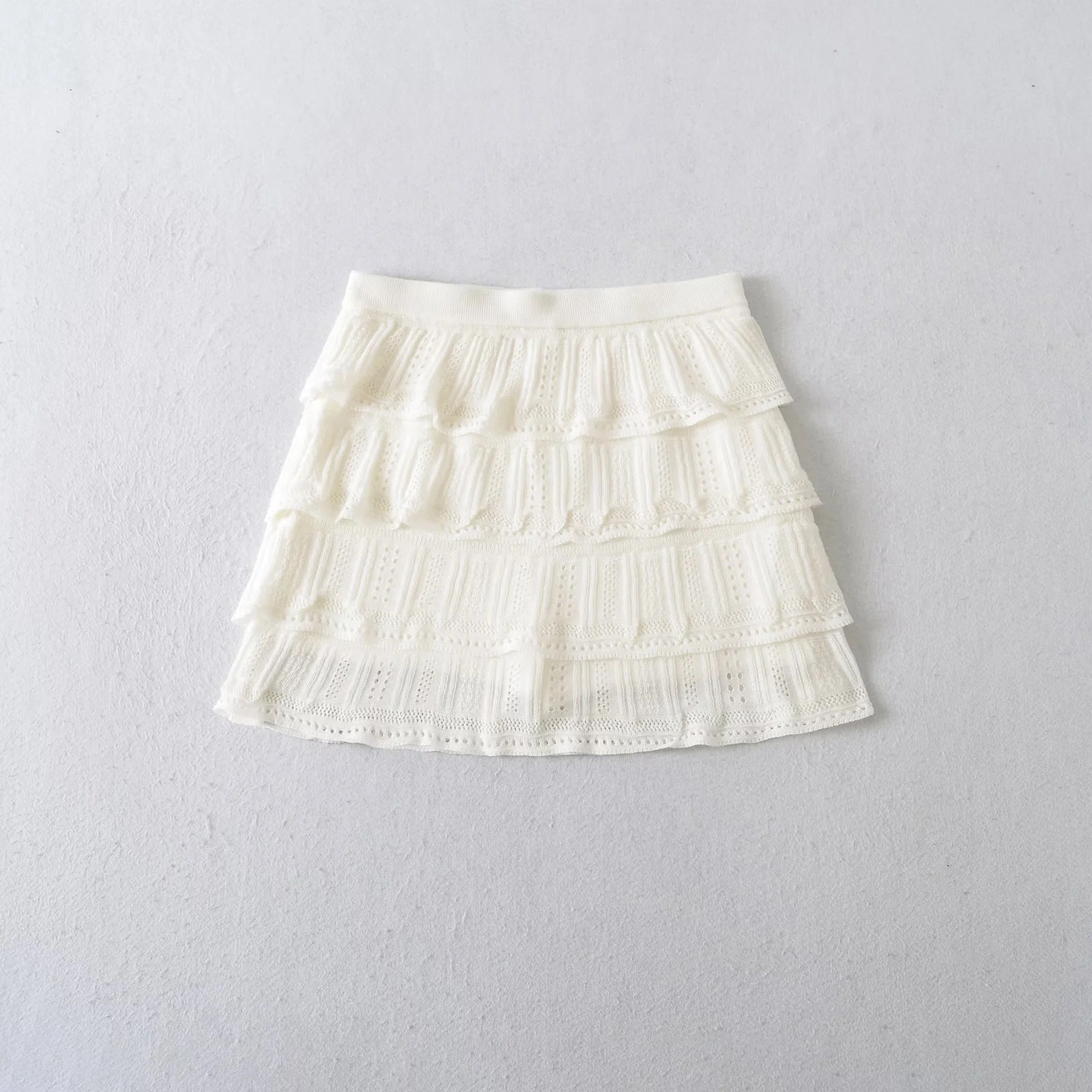 Ins 유럽과 미국 스타일의 핫 소녀 니트 스커트 섹시한 순수한 욕망 하이 웨이스트 슬림 피트 a 라인 케이크 스커트 미니 스커트스토어 가기