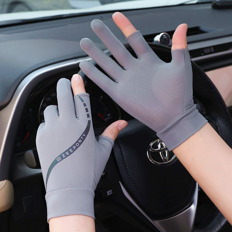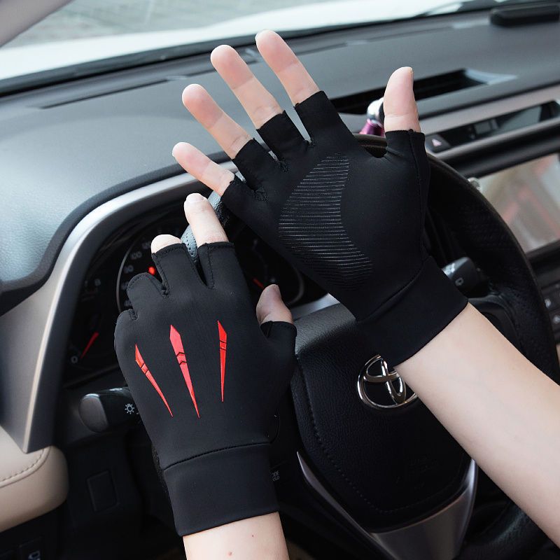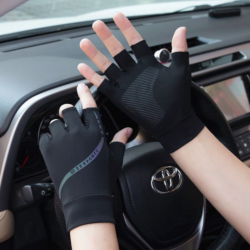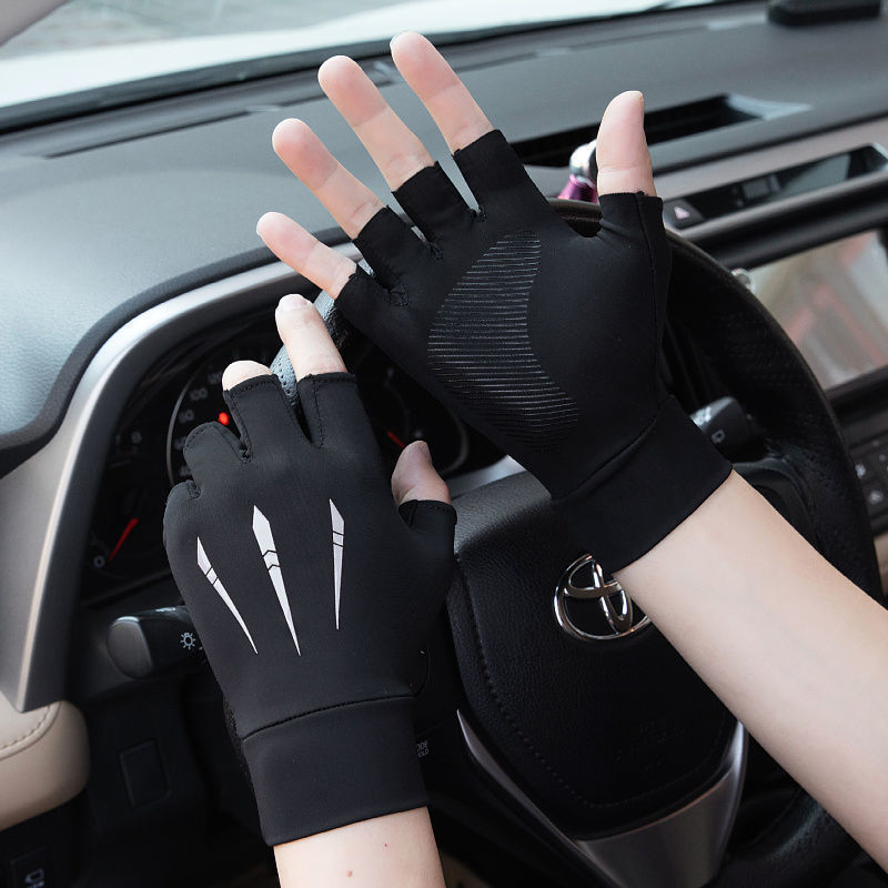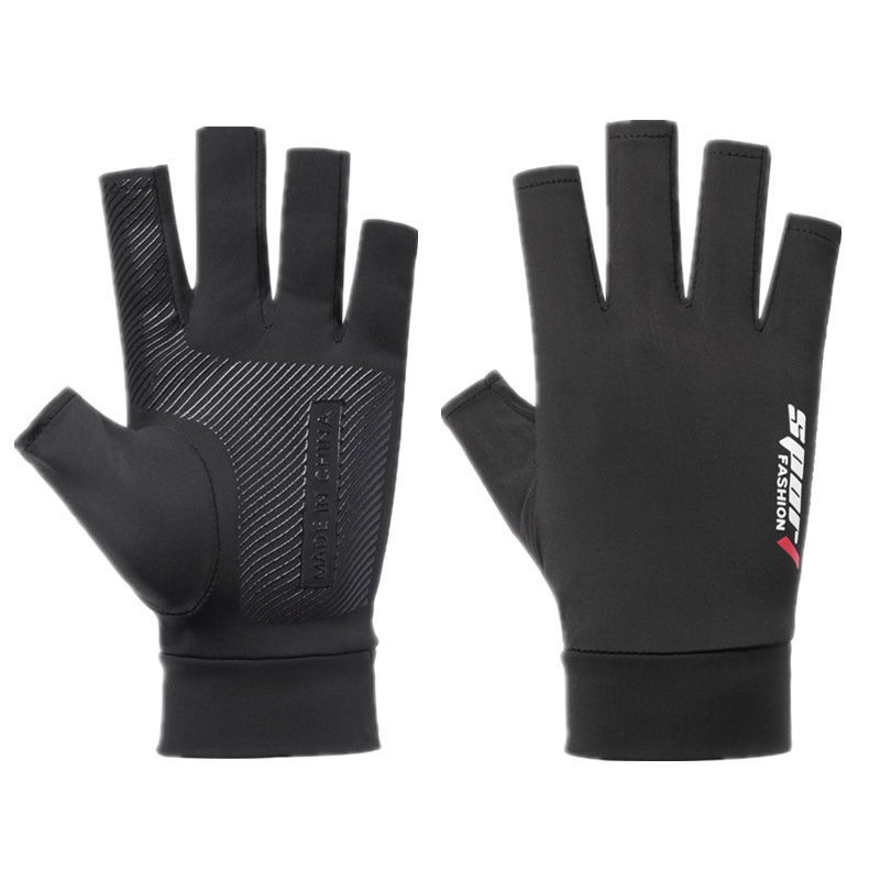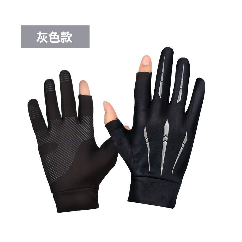 사이클링 장갑, 자전거 아이스 실크 남성용 여름 얇은 낚시 두 손가락 배달원, 외식 배달, 멋진 반 손가락 미끄럼 방지