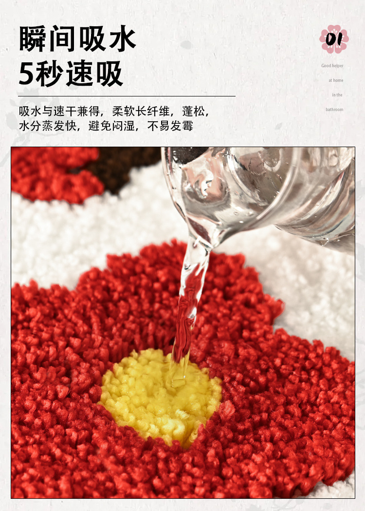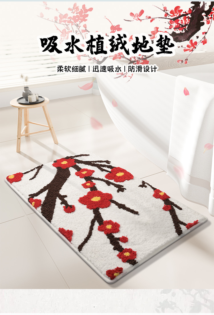 플록 처리된 두꺼운 도어 매트, 욕실 미끄럼 방지 욕실 도어 매트, 욕실 흡수성 발 매트, 가정용 도매스토어 가기