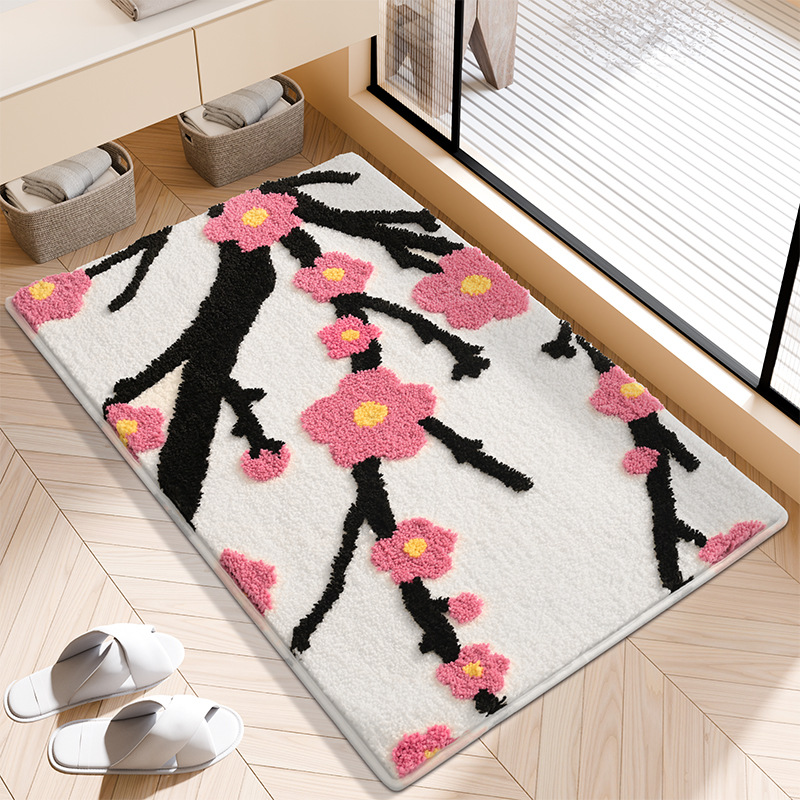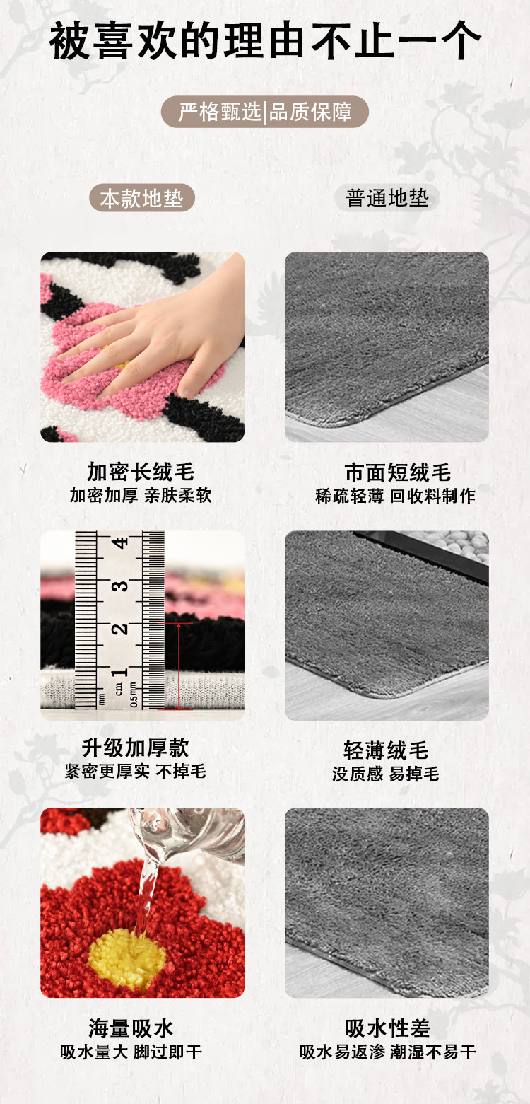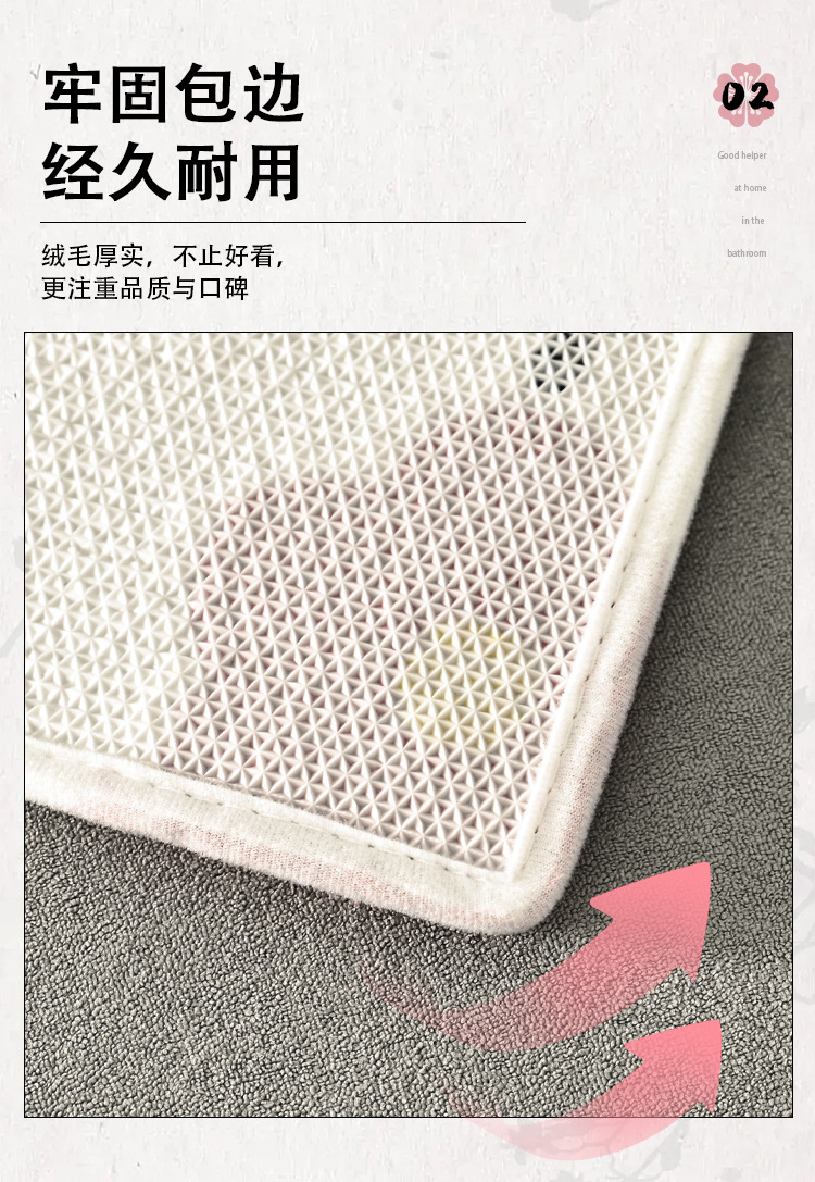 플록 처리된 두꺼운 도어 매트, 욕실 미끄럼 방지 욕실 도어 매트, 욕실 흡수성 발 매트, 가정용 도매