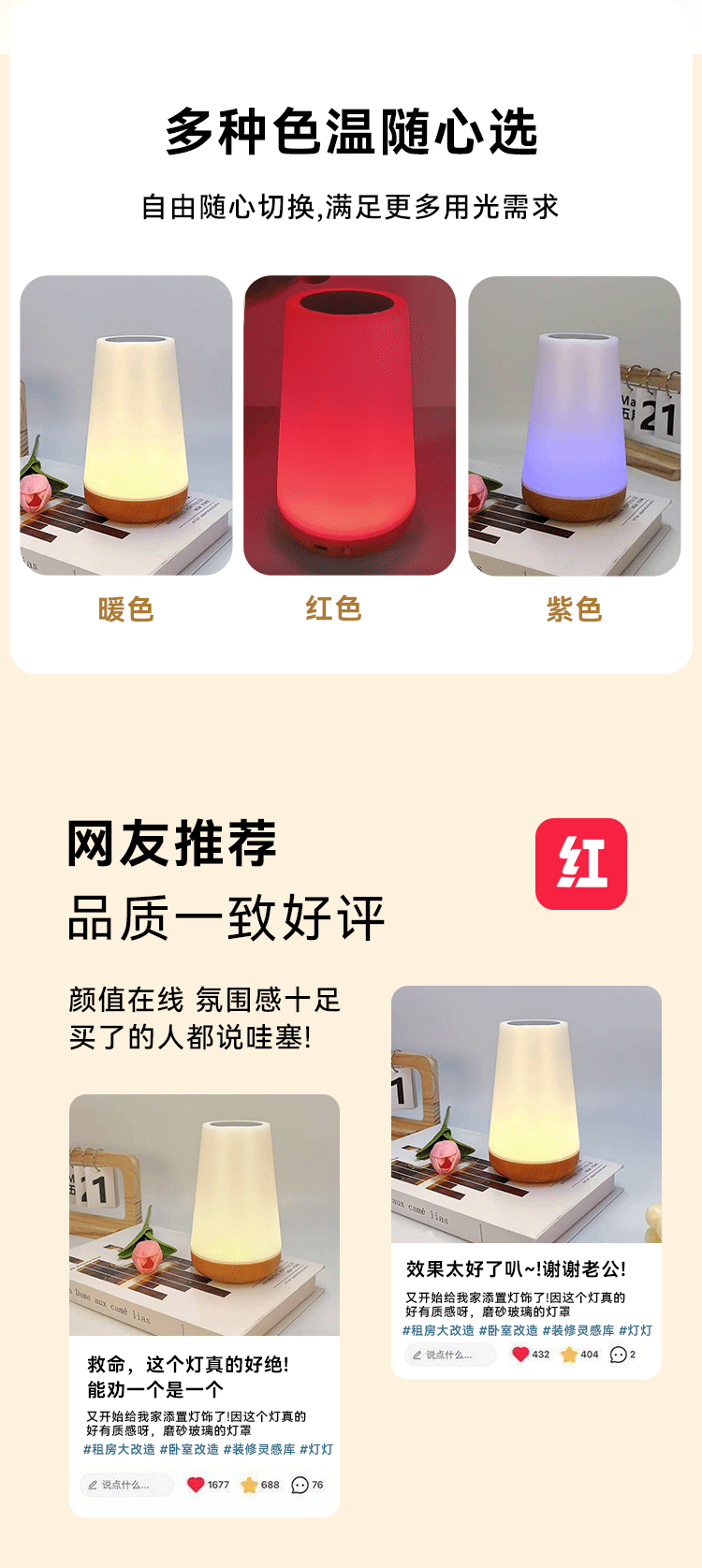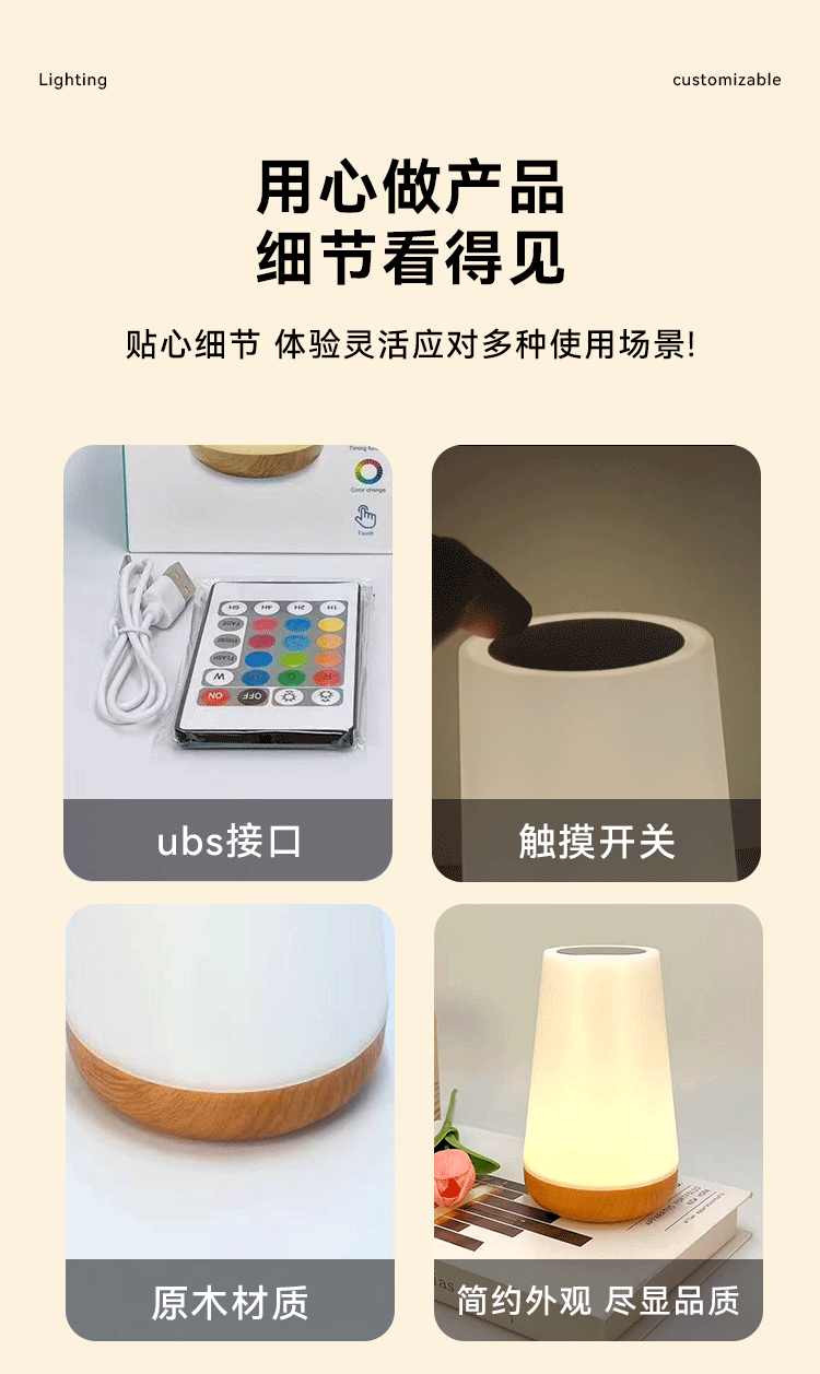 국경 간 창조적 인 원격 제어 나뭇결 터치 야간 조명 테이블 램프 침실 머리맡 램프 13 색 분위기 램프 Amazon스토어 가기