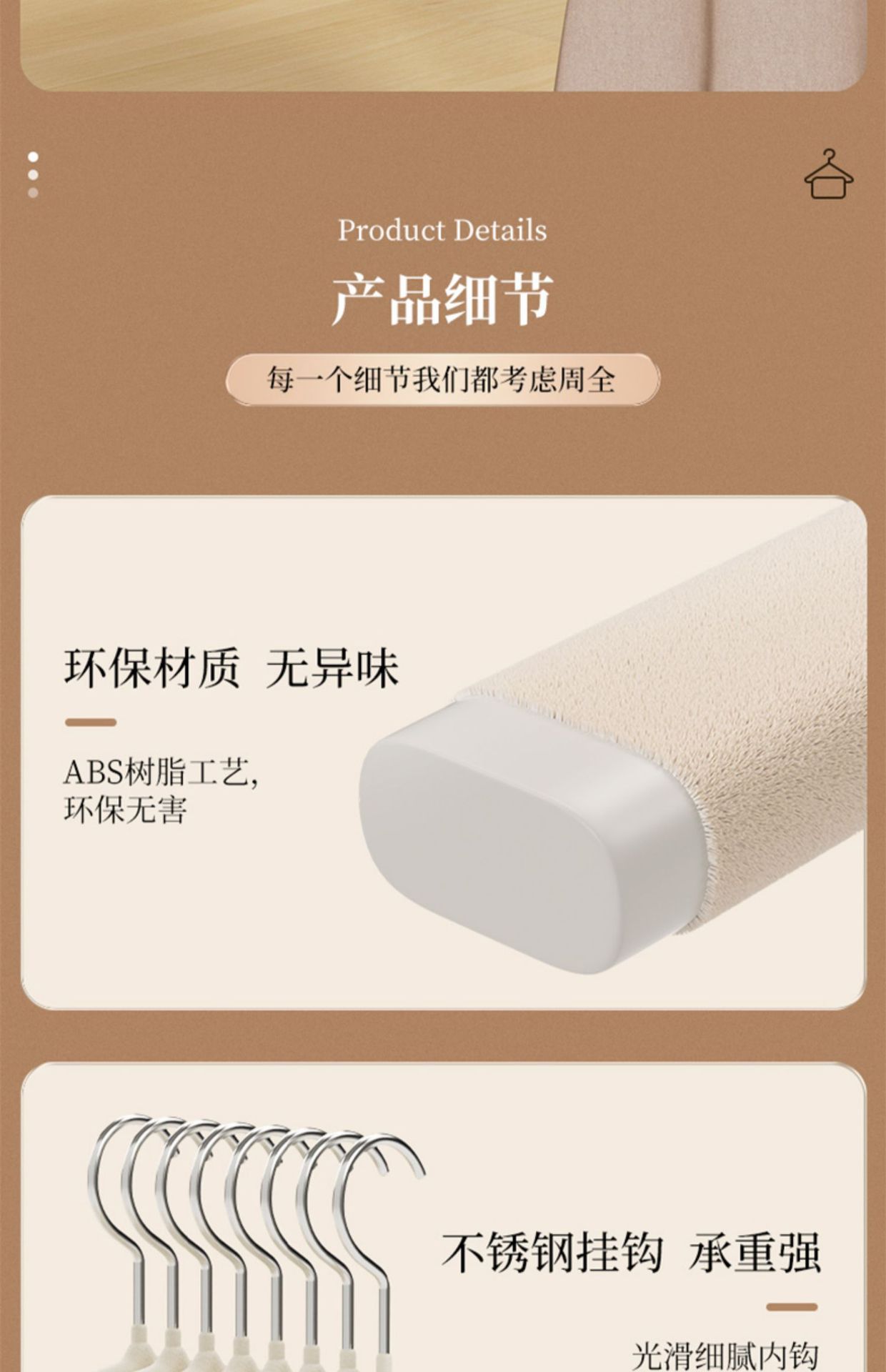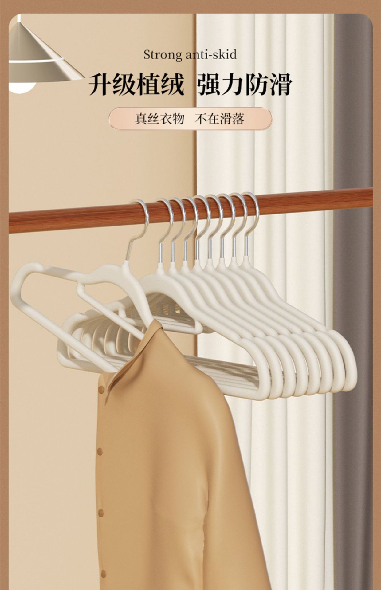 플록 옷걸이, 미끄럼 방지, 흔적 없는 원목, 두꺼운, 습식 및 건식 의류 매장, 가정용 옷장 보관, 다기능스토어 가기
