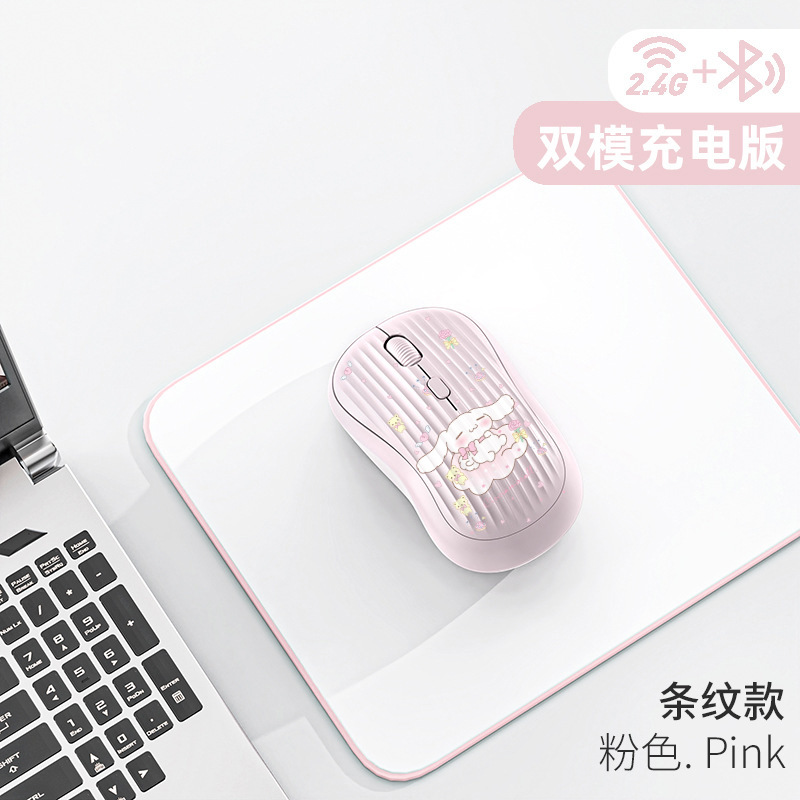 • 2.4G+블루투스 듀얼 모드 type-c 충전 무선 마우스 스트라이프 핑크 패턴