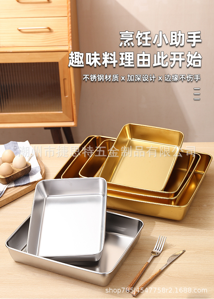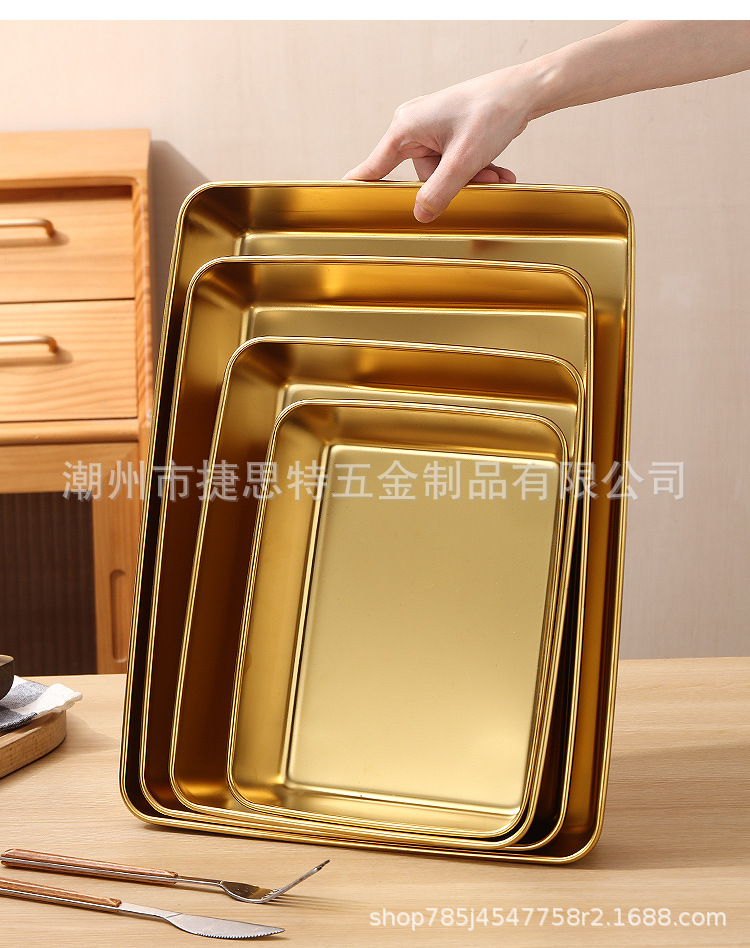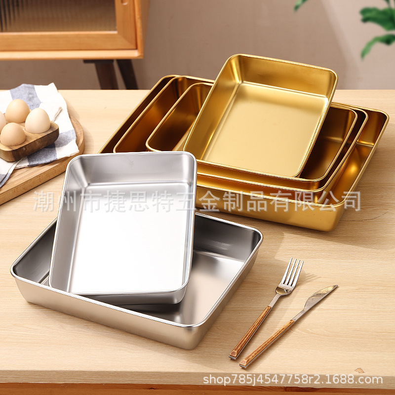 한국식 스테인리스 골드 사각 접시 평평한 바닥 트레이 바베큐 접시 간식 노점구이 음식 접시 준비용 디스플레이 접시