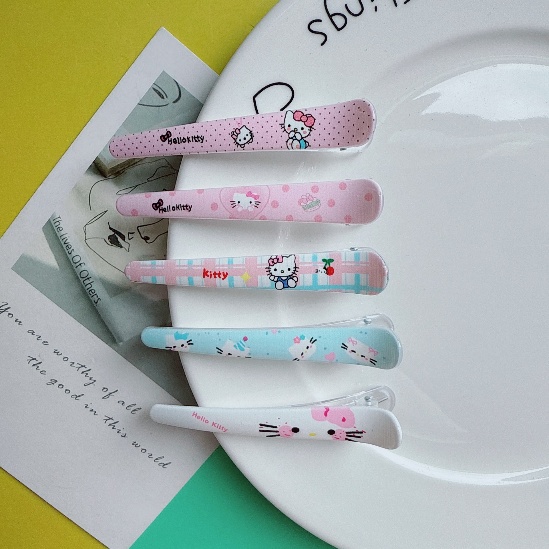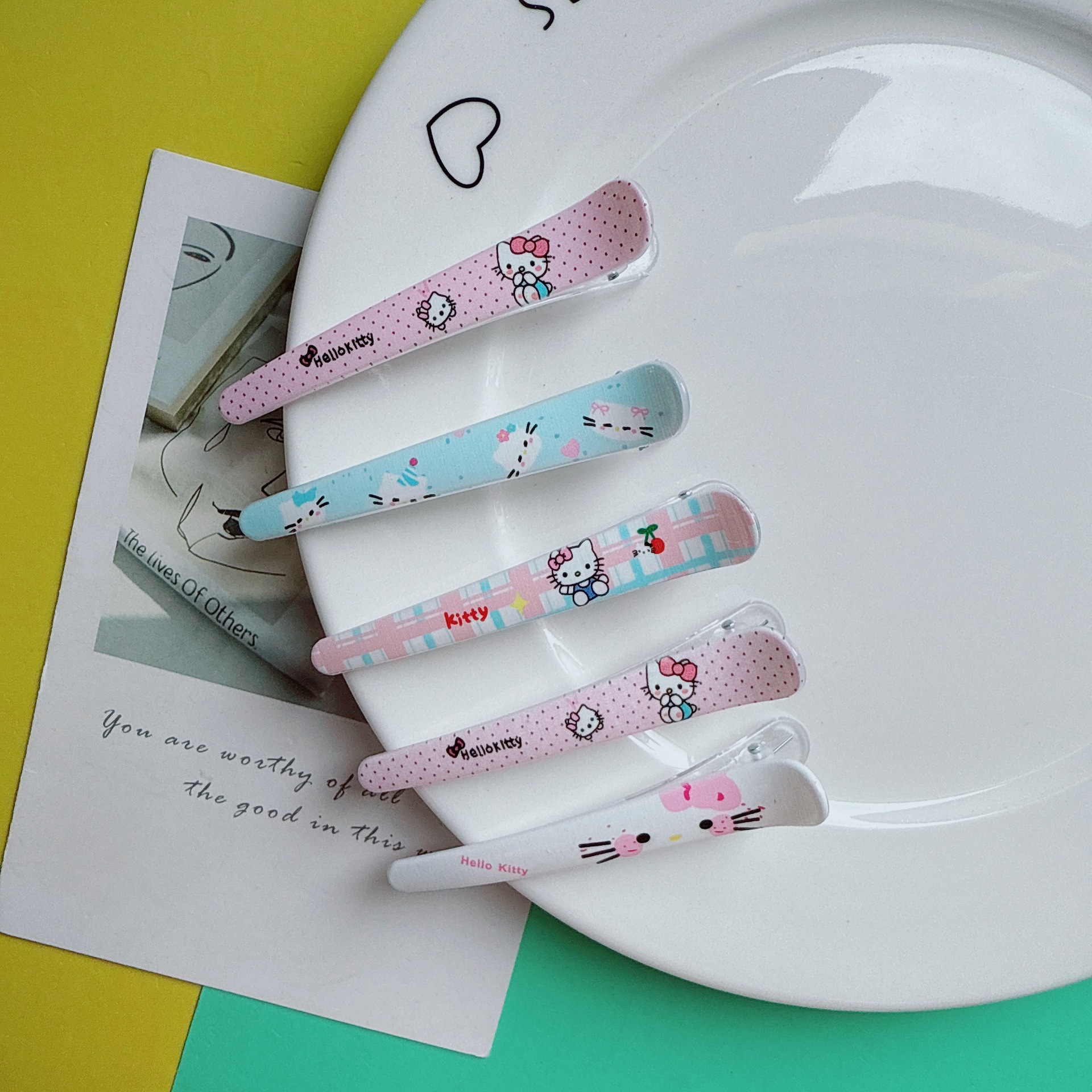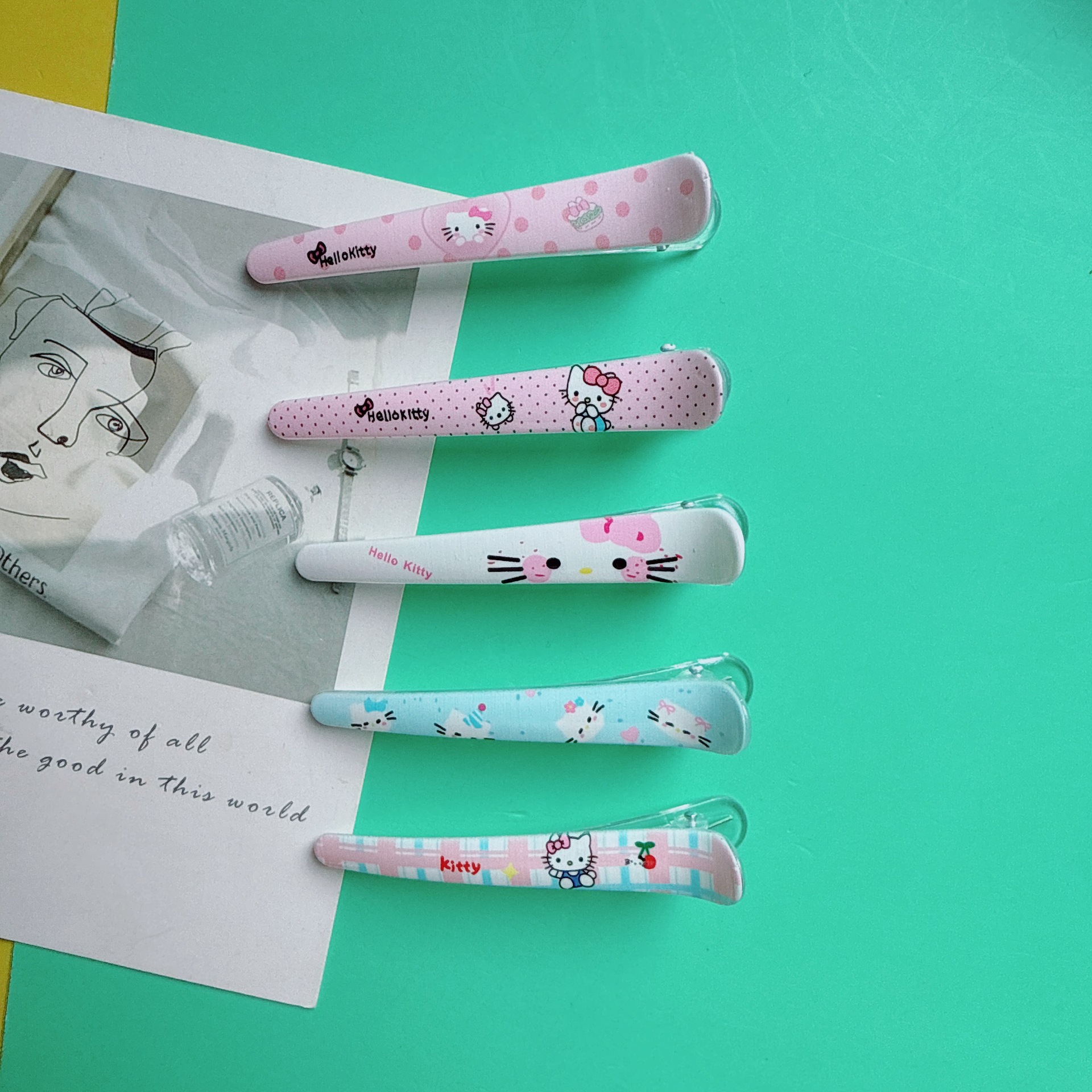 귀여운 도파민 만화 프린트 고양이 덕빌 클립 어린이 다용도 앞머리 사이드 클립 달콤한 소녀 하트 헤어 클립