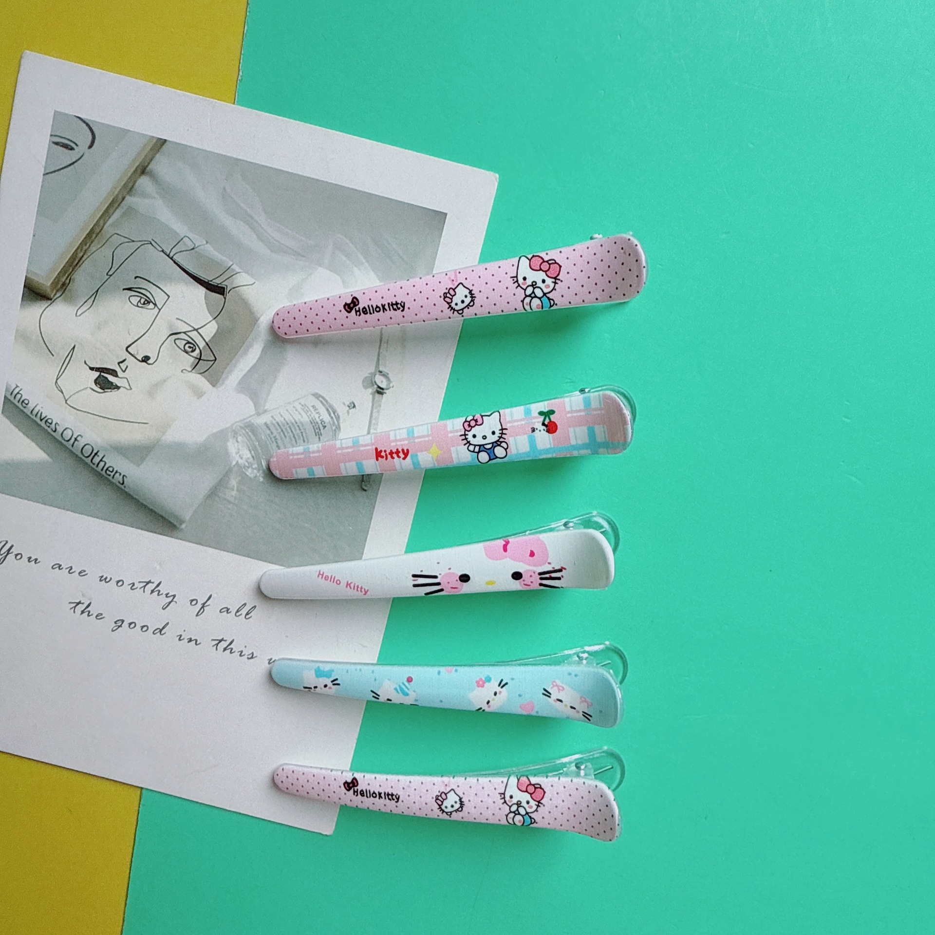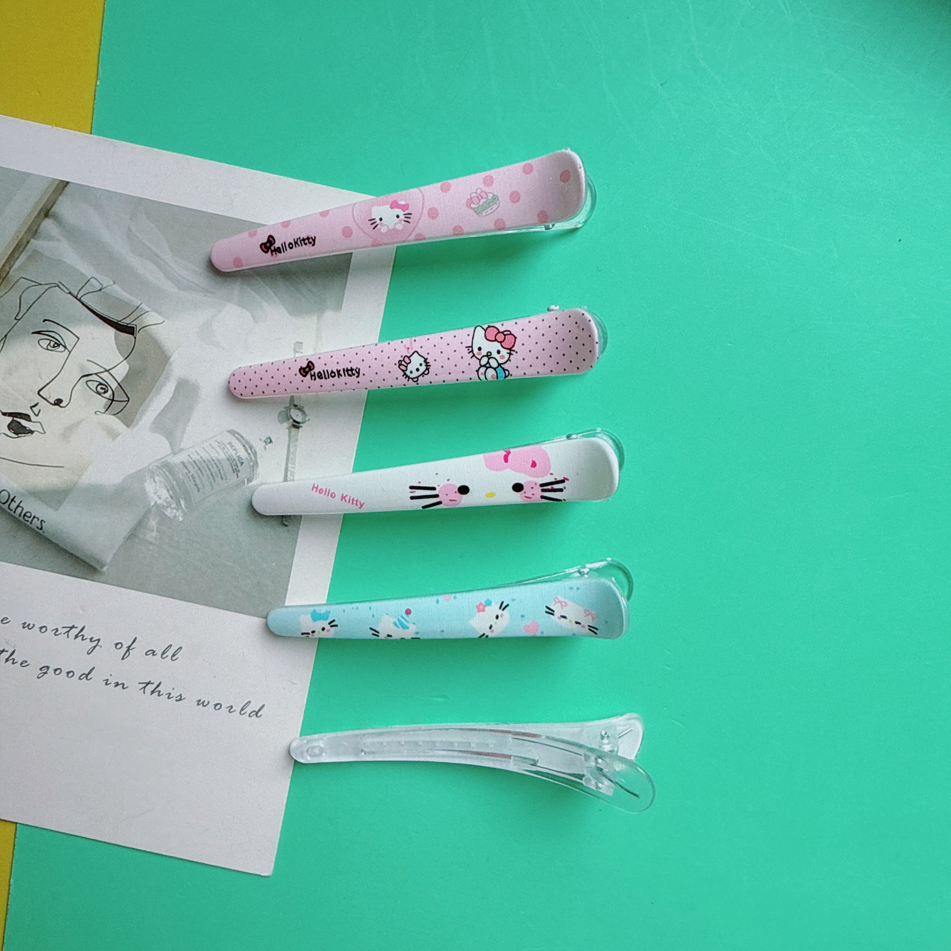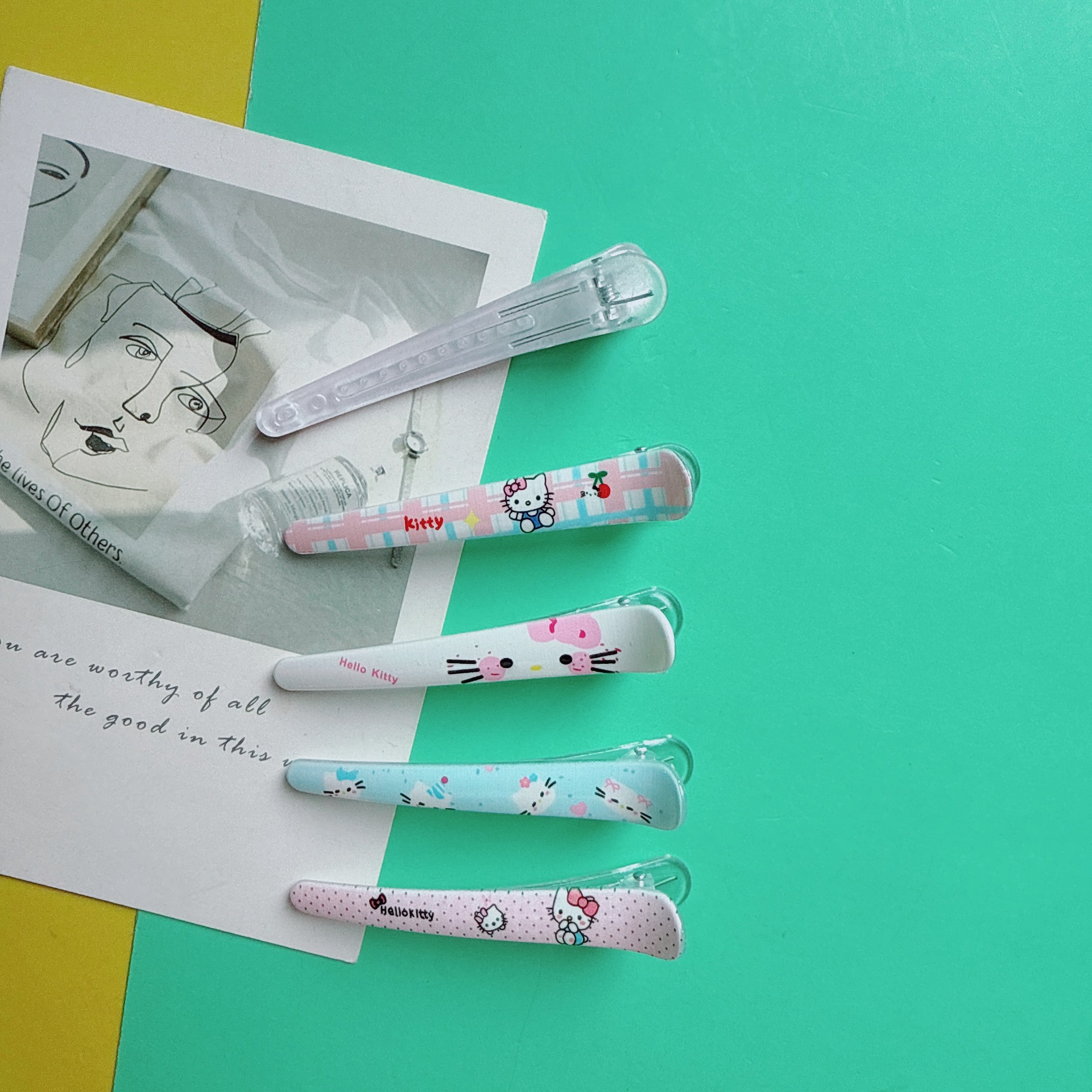 귀여운 도파민 만화 프린트 고양이 덕빌 클립 어린이 다용도 앞머리 사이드 클립 달콤한 소녀 하트 헤어 클립