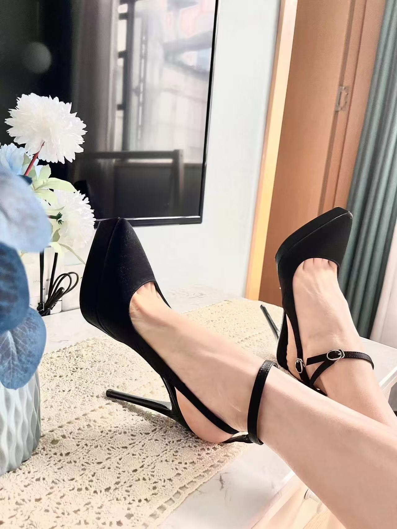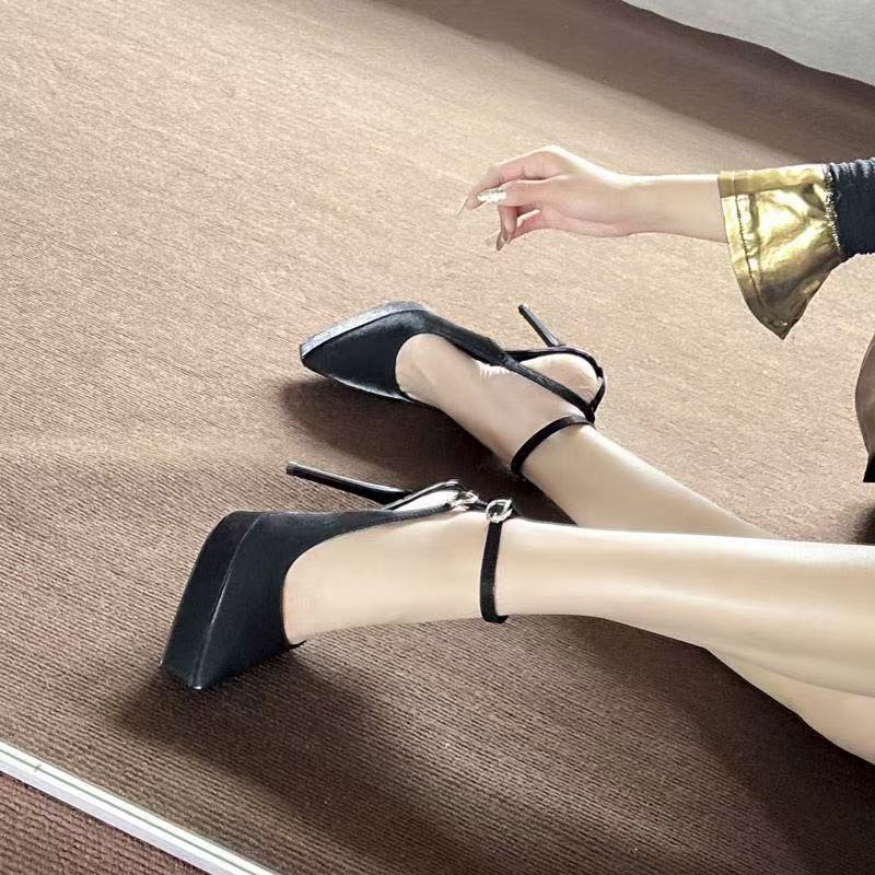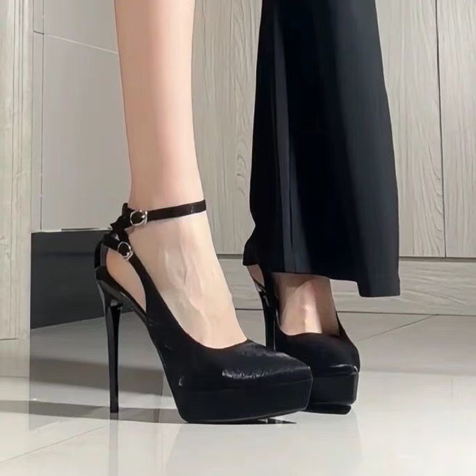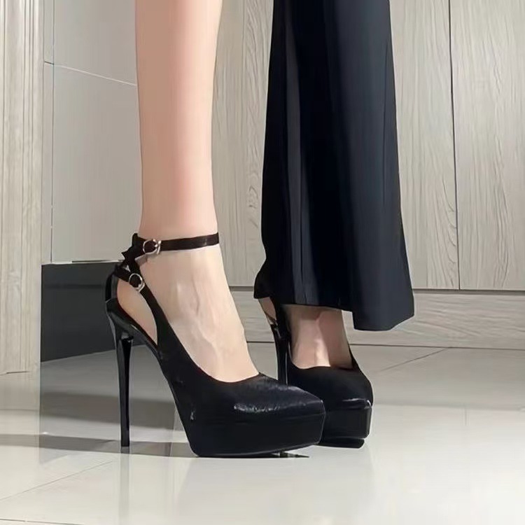 2025 블랙 하이힐 여성 여름 방수 플랫폼 뾰족한 발가락 여왕의 새로운 슈퍼 하이 여성 섹시한 스틸레토 힐