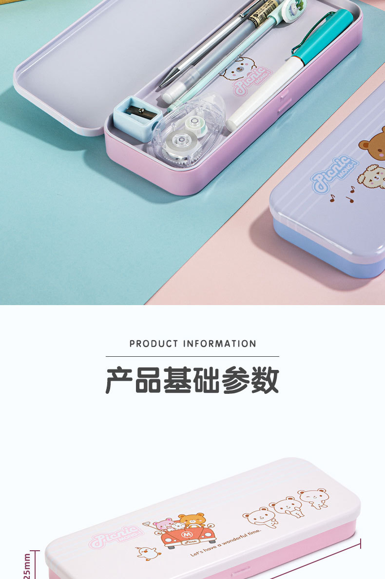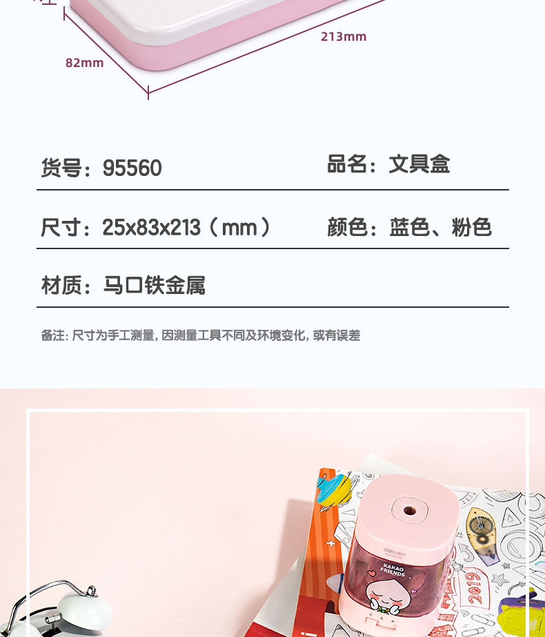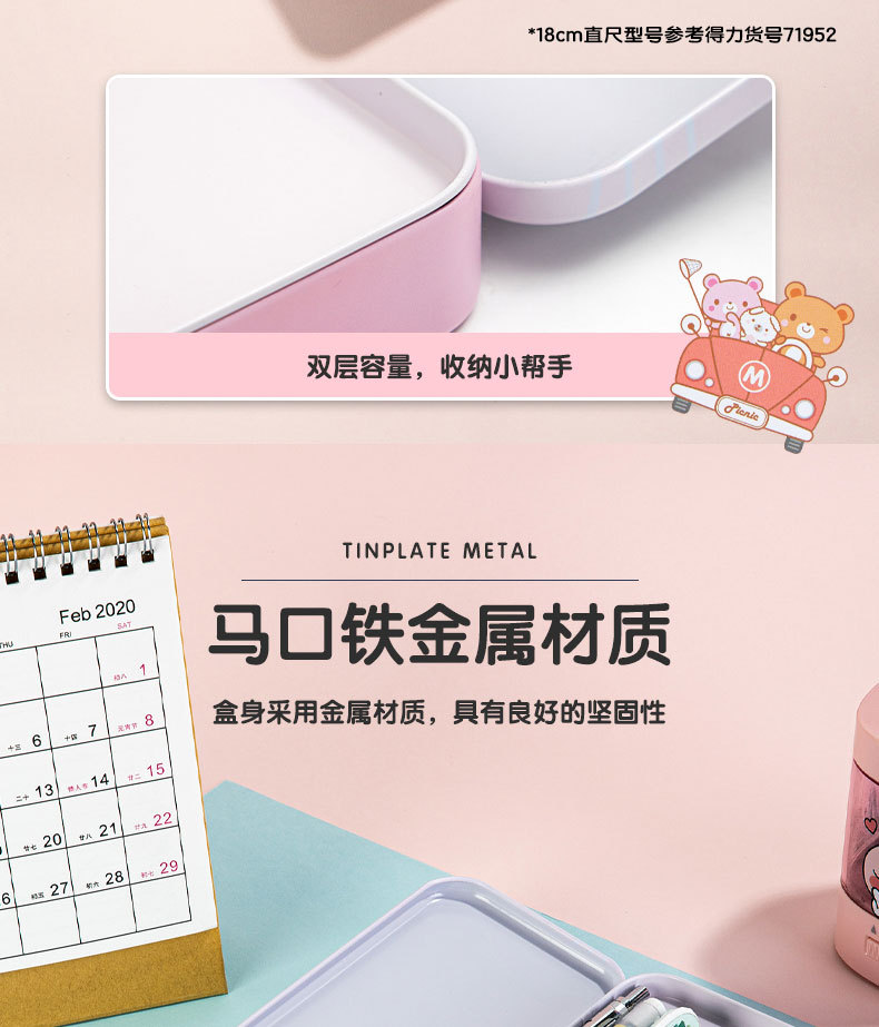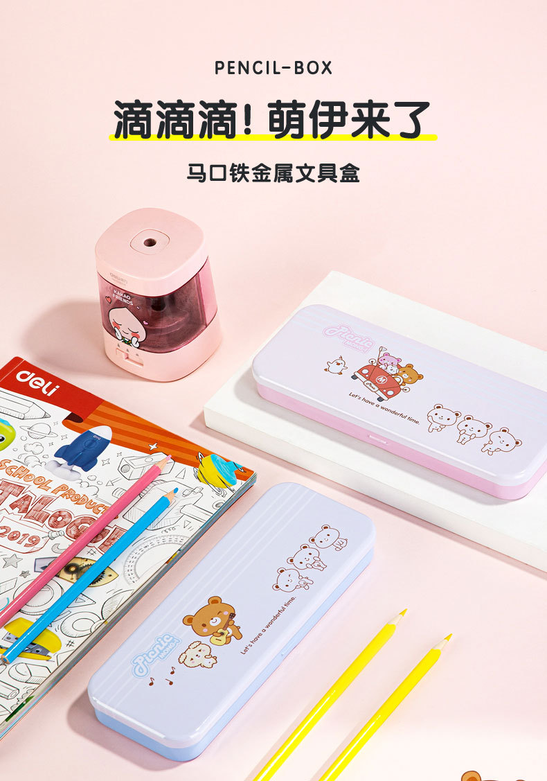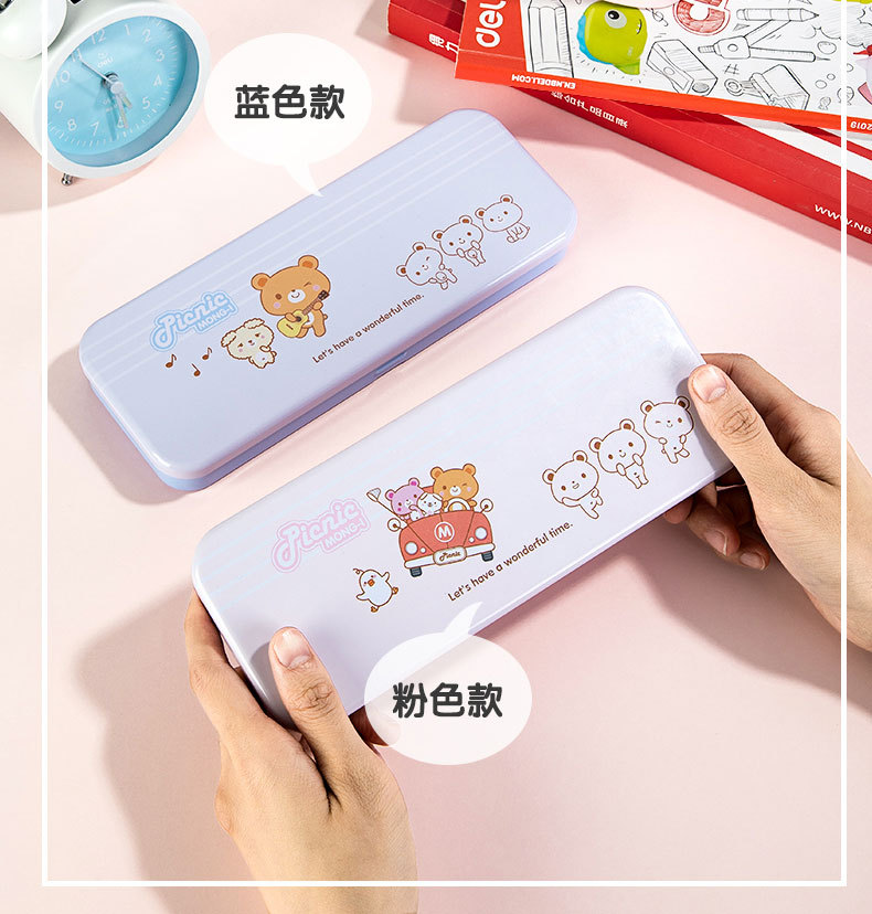 델리 95560 연필 상자 대용량 문구 상자 철 상자 초등학생 간단한 만화 다기능 연필 상자