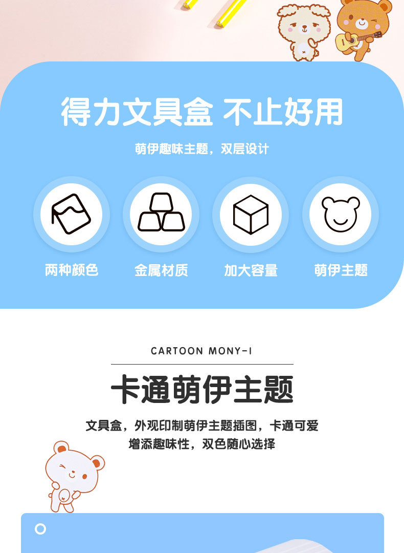 델리 95560 연필 상자 대용량 문구 상자 철 상자 초등학생 간단한 만화 다기능 연필 상자스토어 가기