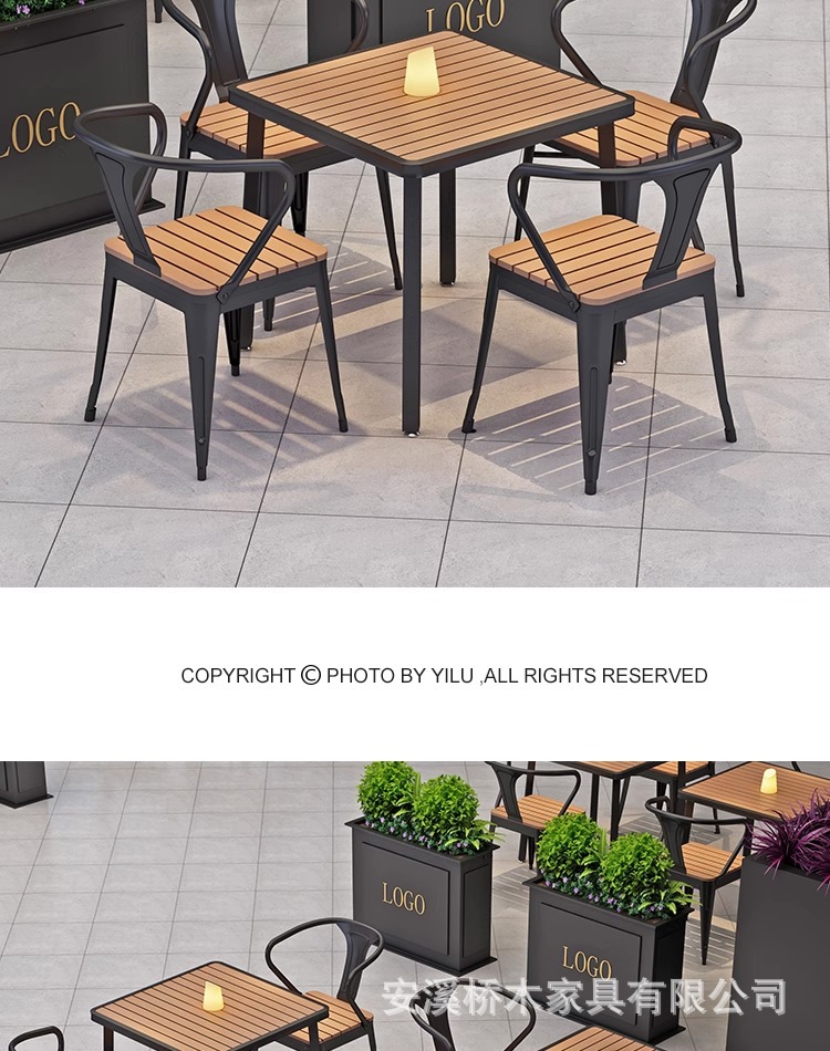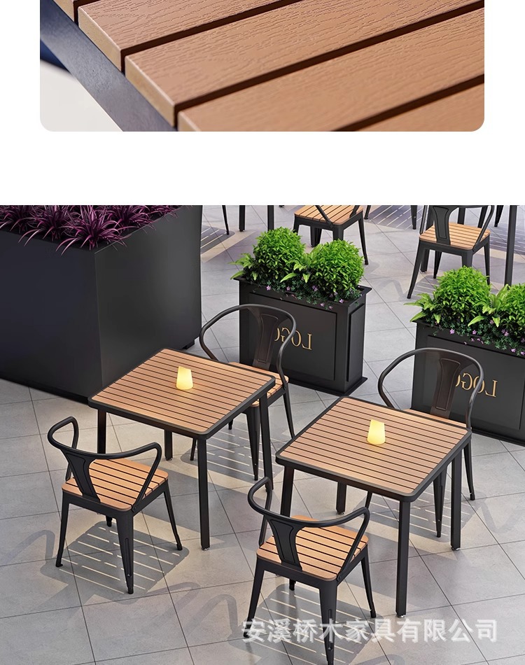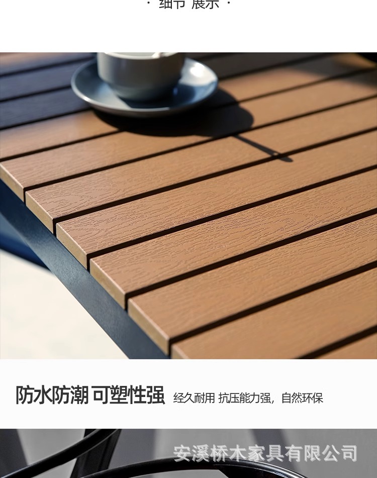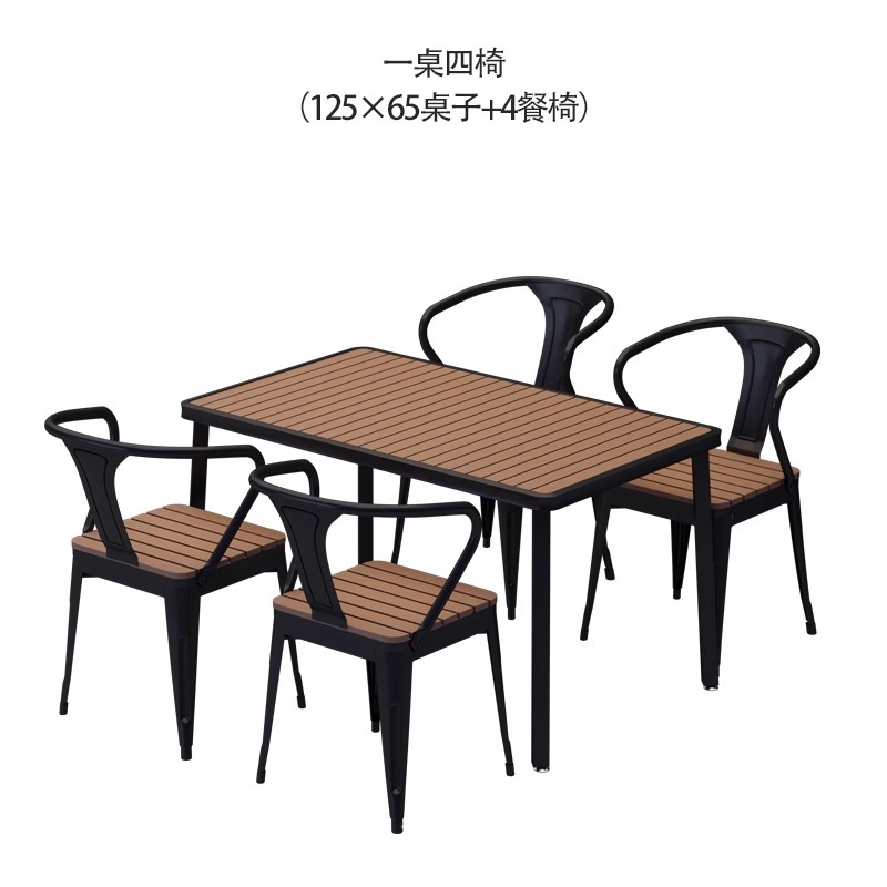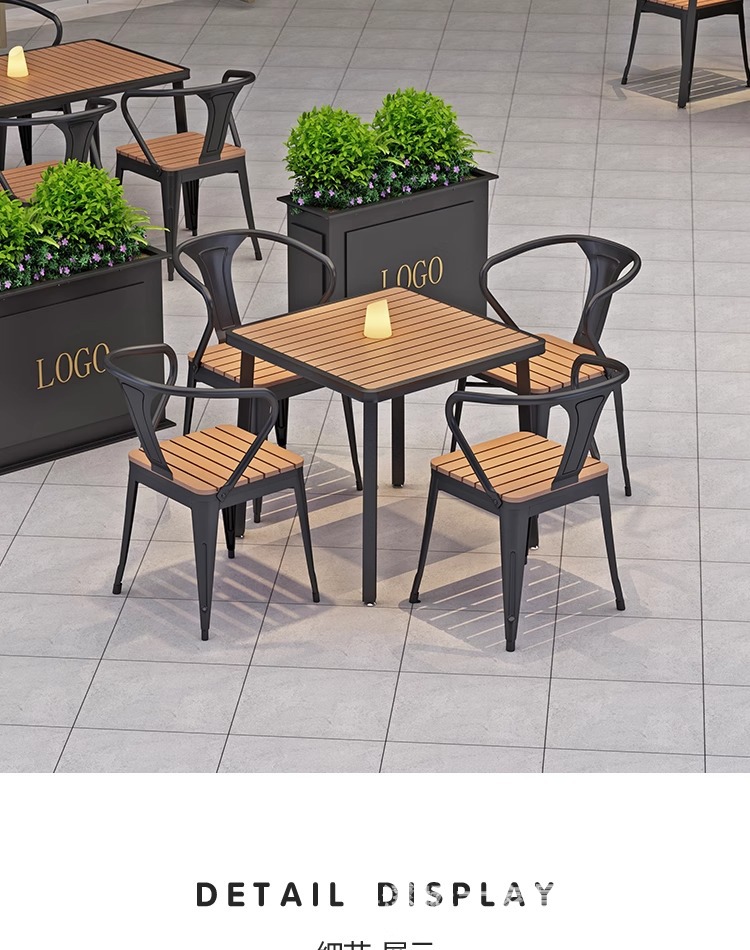 야외 테이블과 의자 조합 야외 안뜰 정원 발코니 식탁 플라스틱 목재 방수 태양 보호 야외 바 레스토랑 테이블과 의자