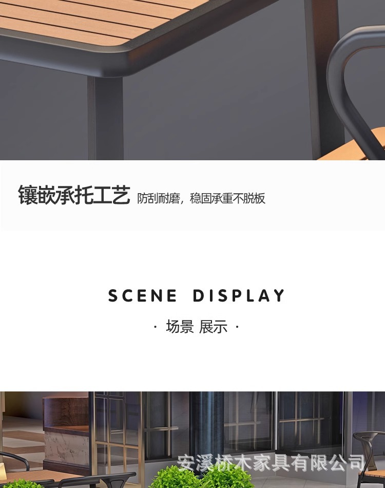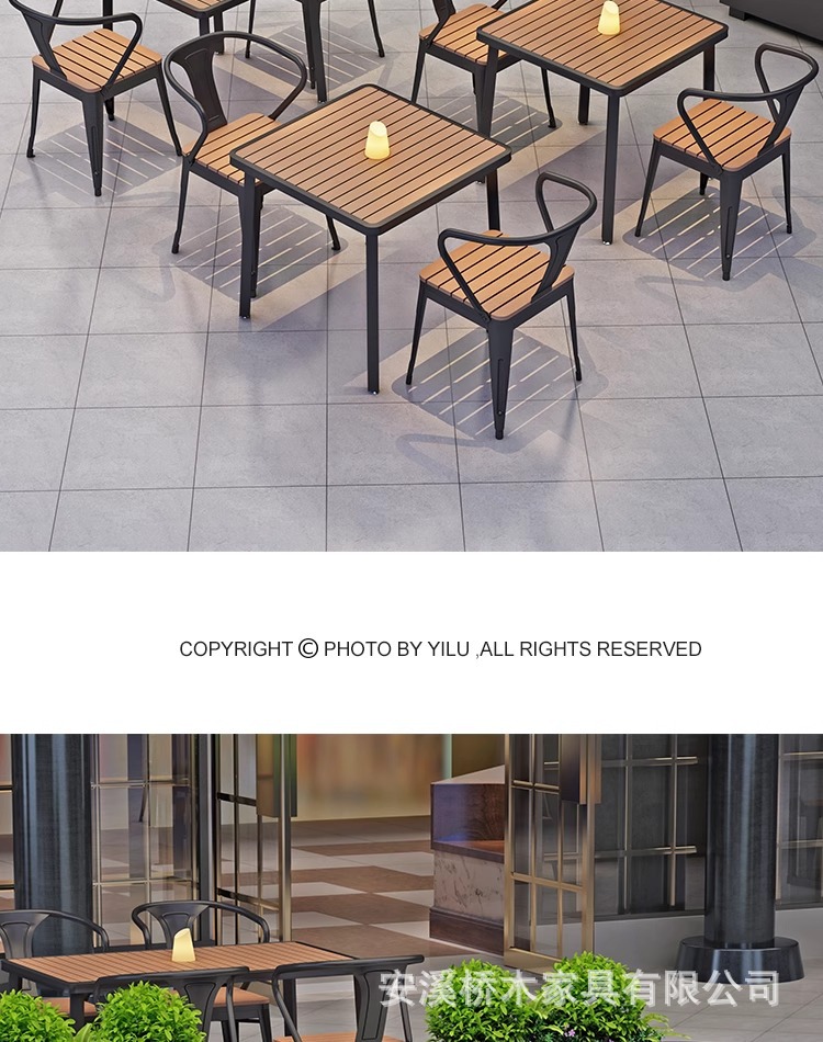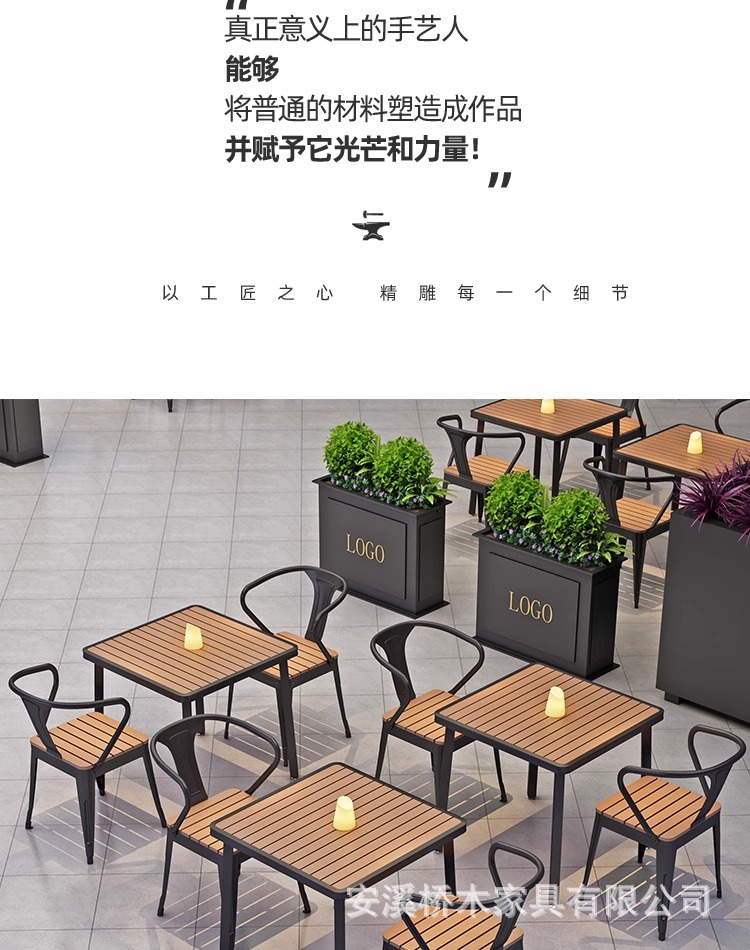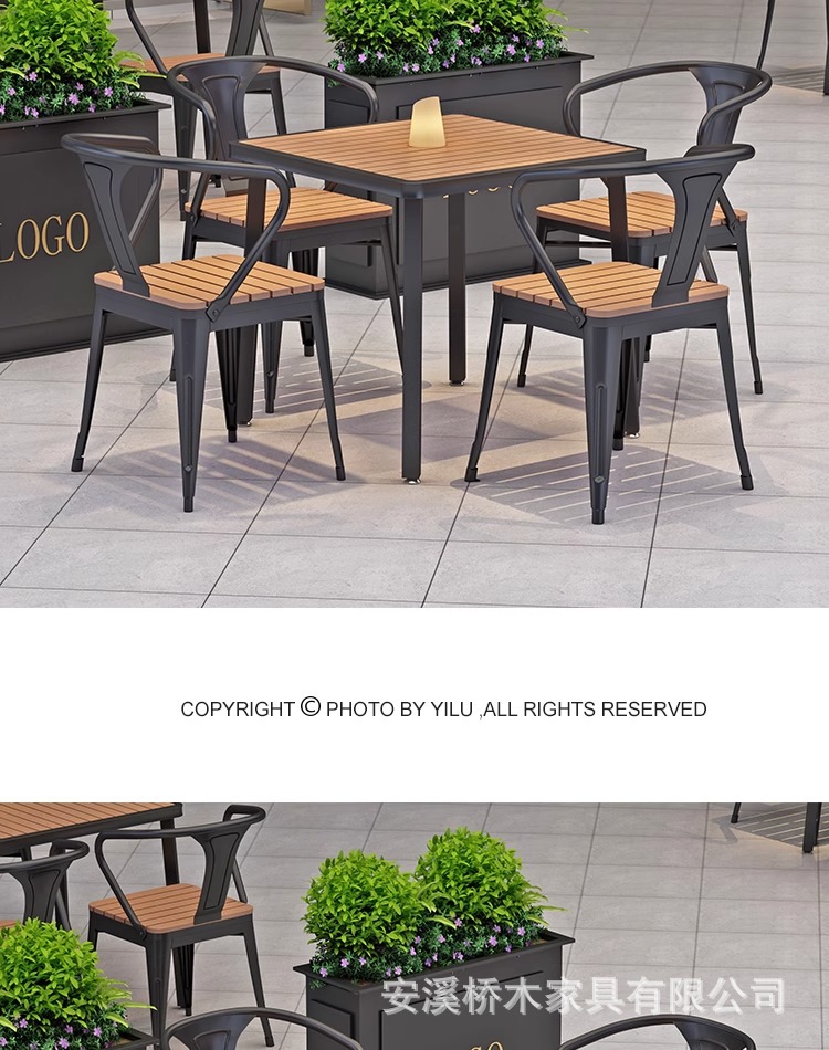야외 테이블과 의자 조합 야외 안뜰 정원 발코니 식탁 플라스틱 목재 방수 태양 보호 야외 바 레스토랑 테이블과 의자