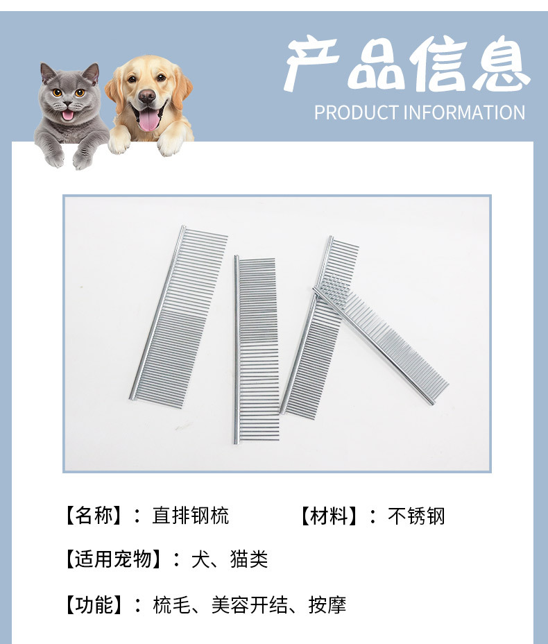 긴털 고양이를 위한 애완동물 빗, 특수 빗, 매듭을 풀어주는 강철 빗, 래그돌 고양이와 개 얼굴 빗, 밀집된 치아 직선 빗