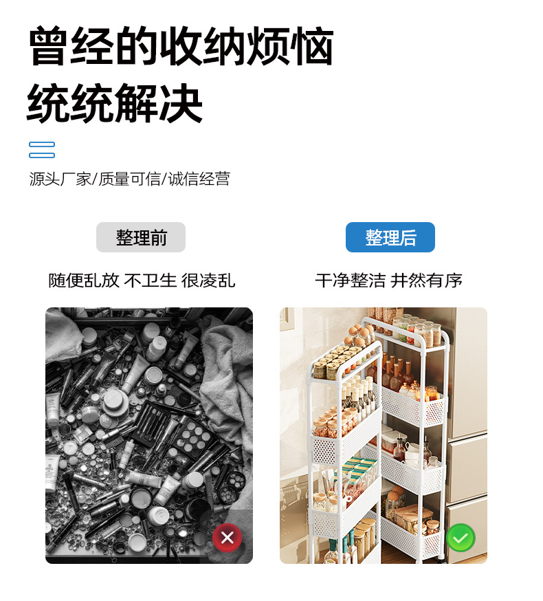 가정용 바닥에서 천장까지 이어지는 이동식 다층 트롤리 보관 랙 주방 및 거실용 매우 좁은 보관 랙