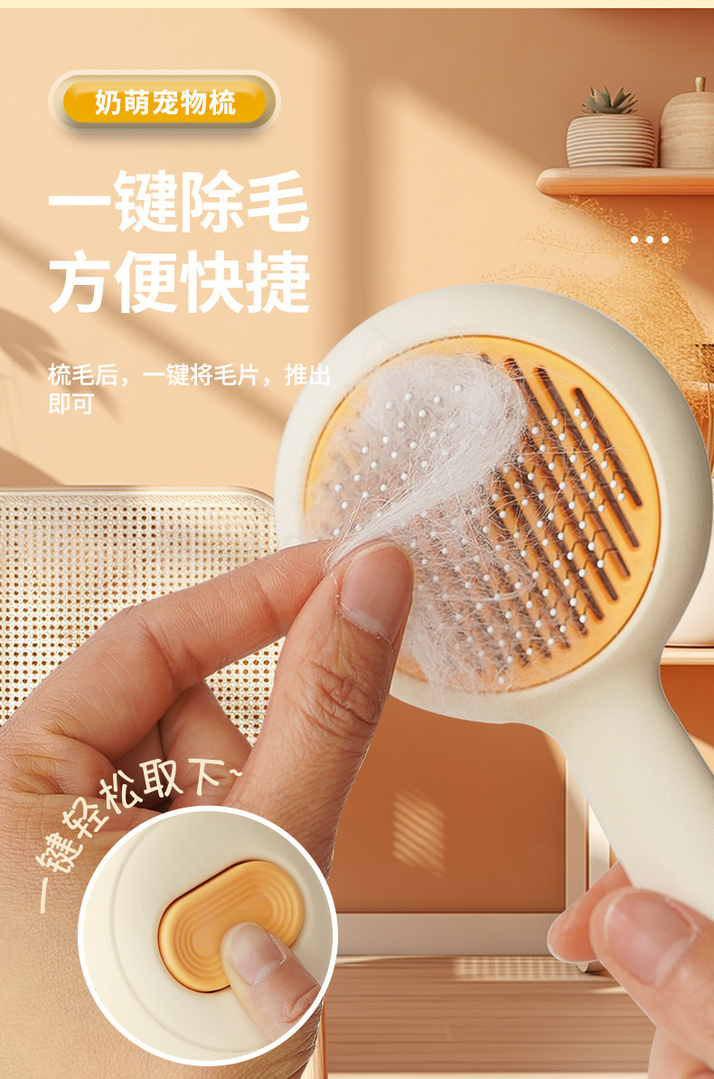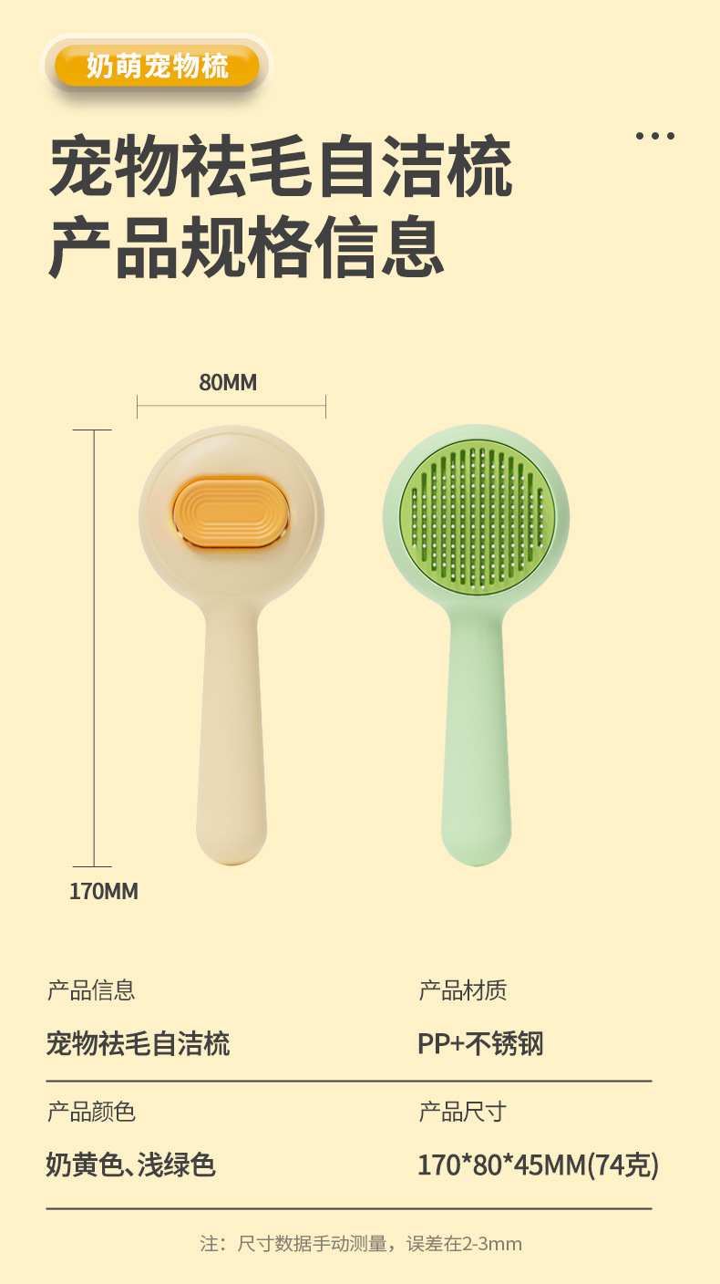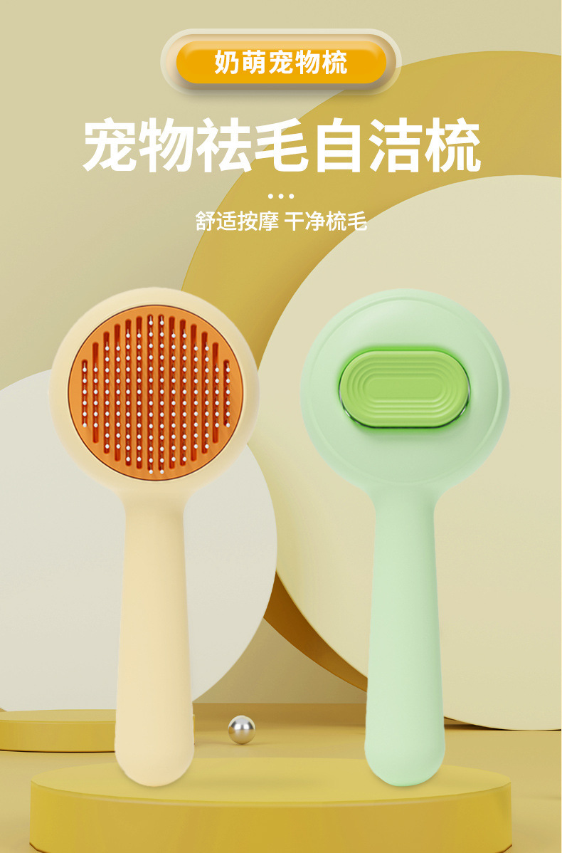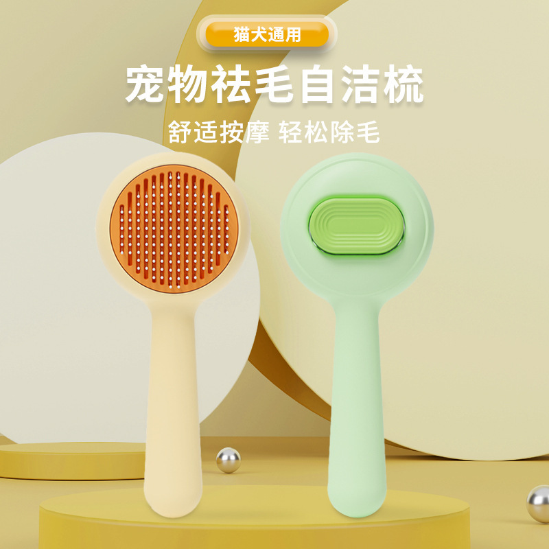 • 큰 버튼 애완동물 자가 청소 빗 - 커스터드