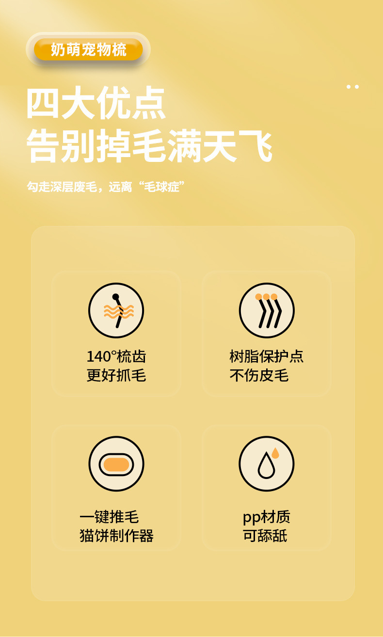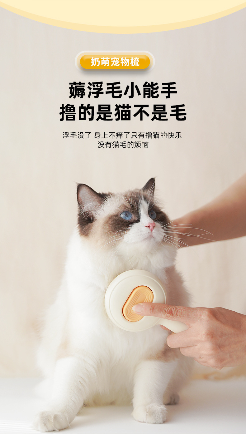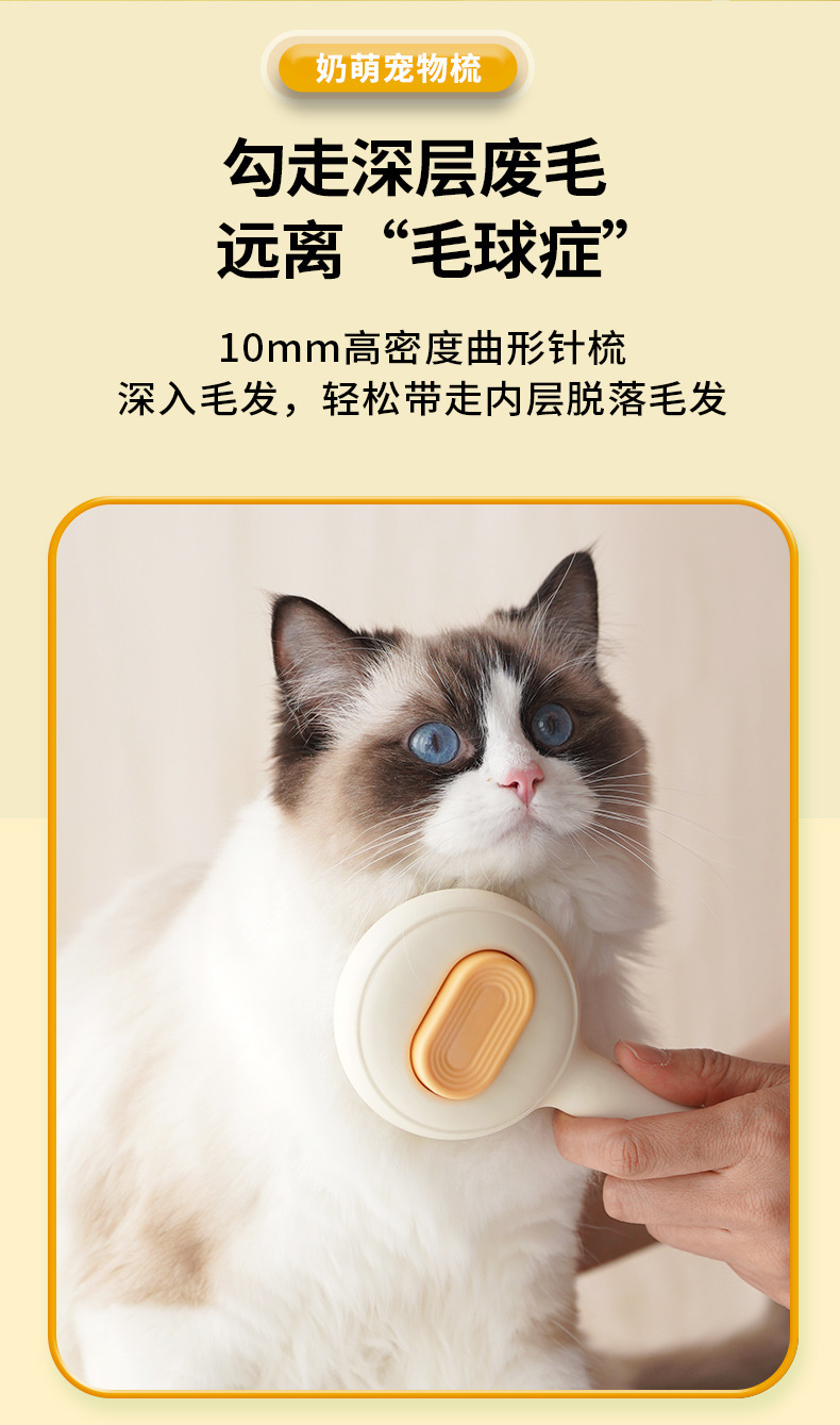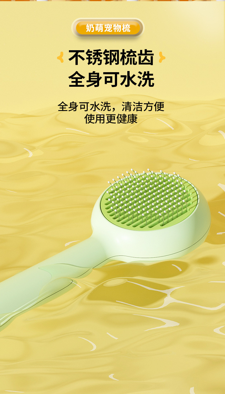 • 큰 버튼 애완동물 자가 청소 빗 - 커스터드