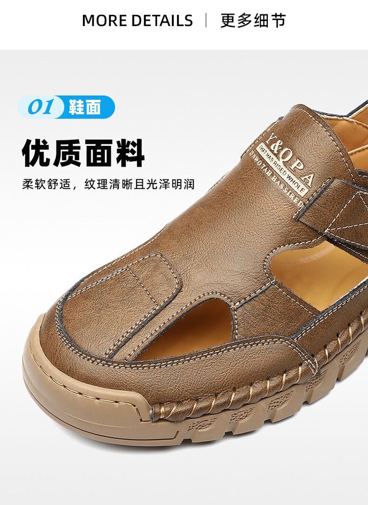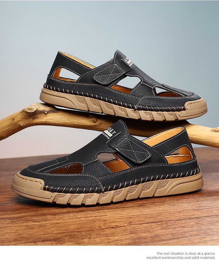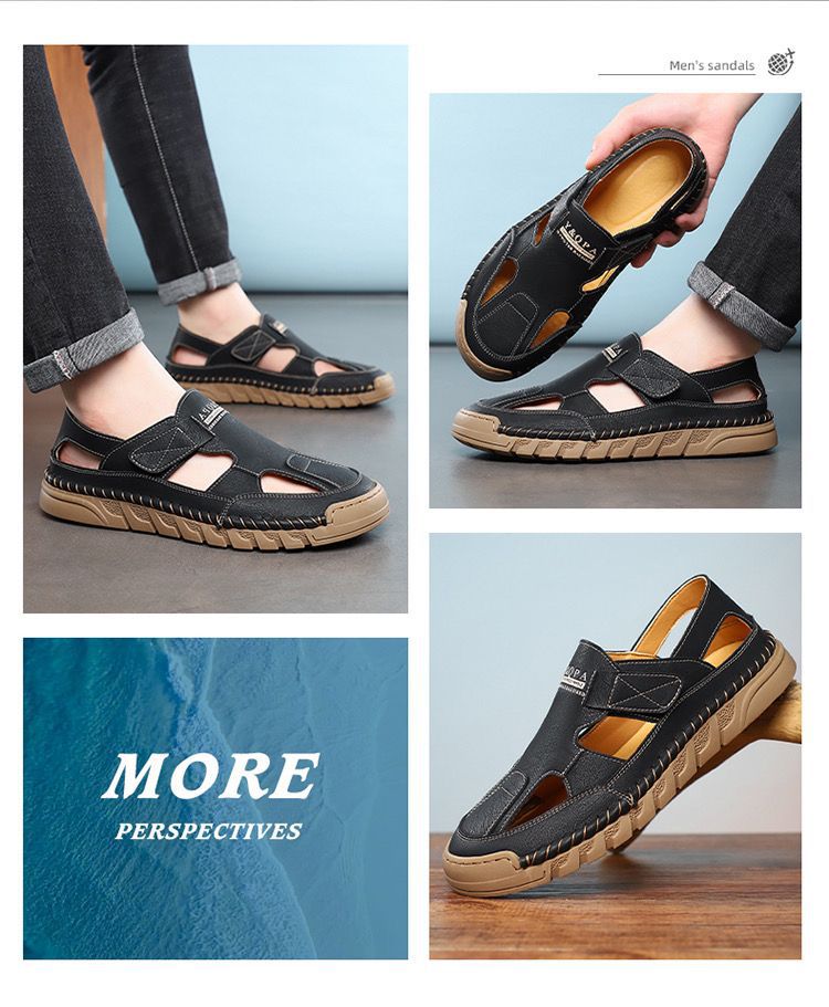 2025 여름 새로운 가죽 샌들 남자 구멍 비치 신발 Baotou 로마 중공 패션 남자 신발 드롭 배송