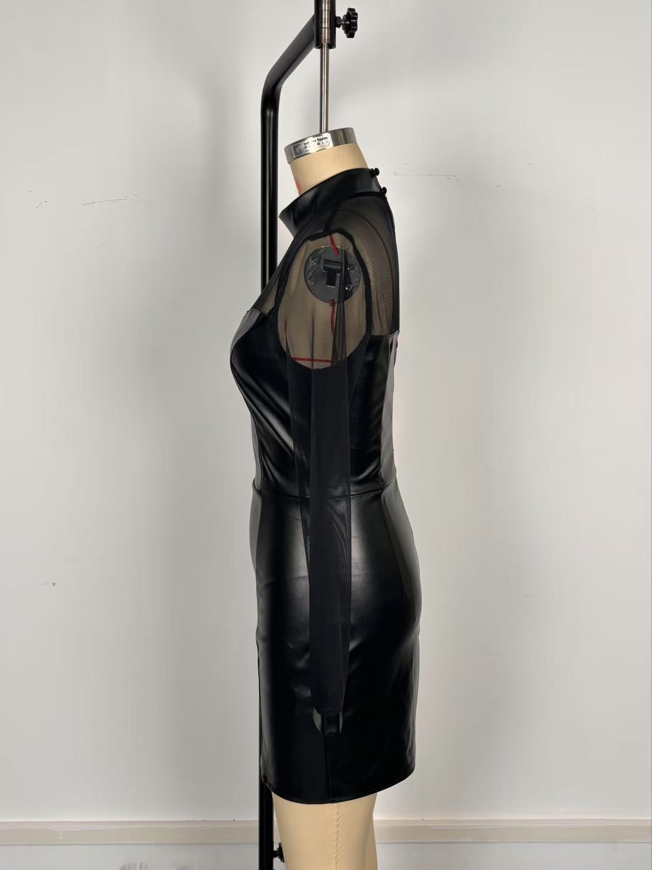 국경을 넘나드는 새로운 아마존 유럽과 미국의 나이트 클럽 섹시한 핫 소녀 메쉬 스플 라이스 가죽 패션 타이트 드레스스토어 가기