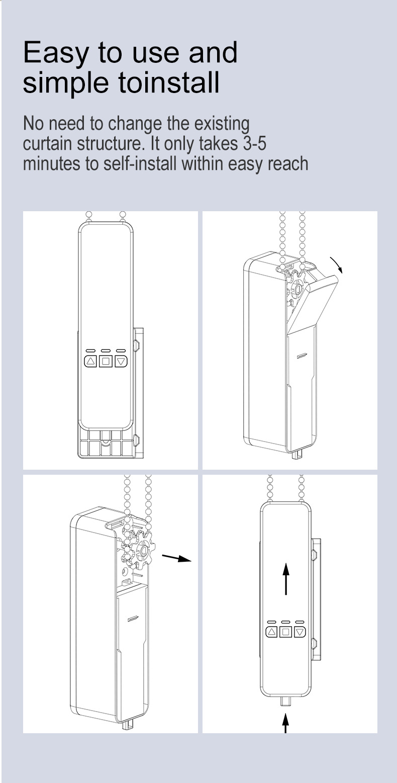 국경을 넘는 지능형 끈 조절식 커튼 모터, 완전 자동 휴대폰 원격 제어 와이파이 전동 끈 조절식 롤스크린 모터스토어 가기