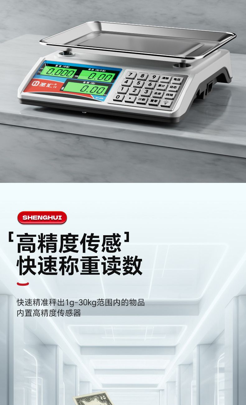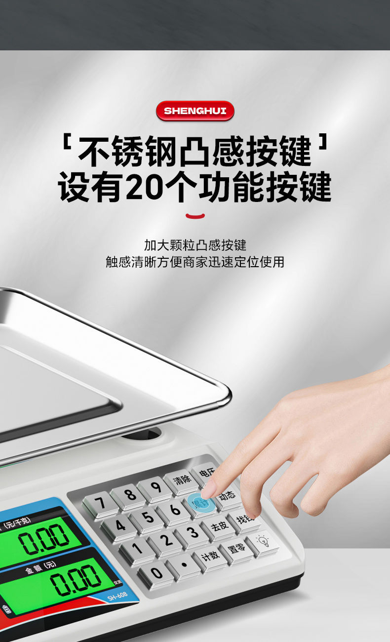Shenghui 정품 30kg 전자 저울 비즈니스 상업용 홈 스톨 정확한 소형 야채 판매 저울 홈 플랫폼 저울스토어 가기