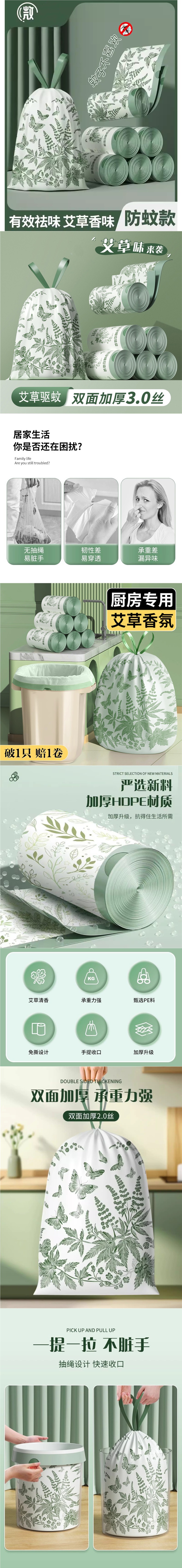 가정용 쓰레기 봉투 쑥 모기 구충제 인쇄 휴대용 졸라 매는 끈 두꺼운 쓰레기 봉투 주방 두꺼운 대형 청소 봉투