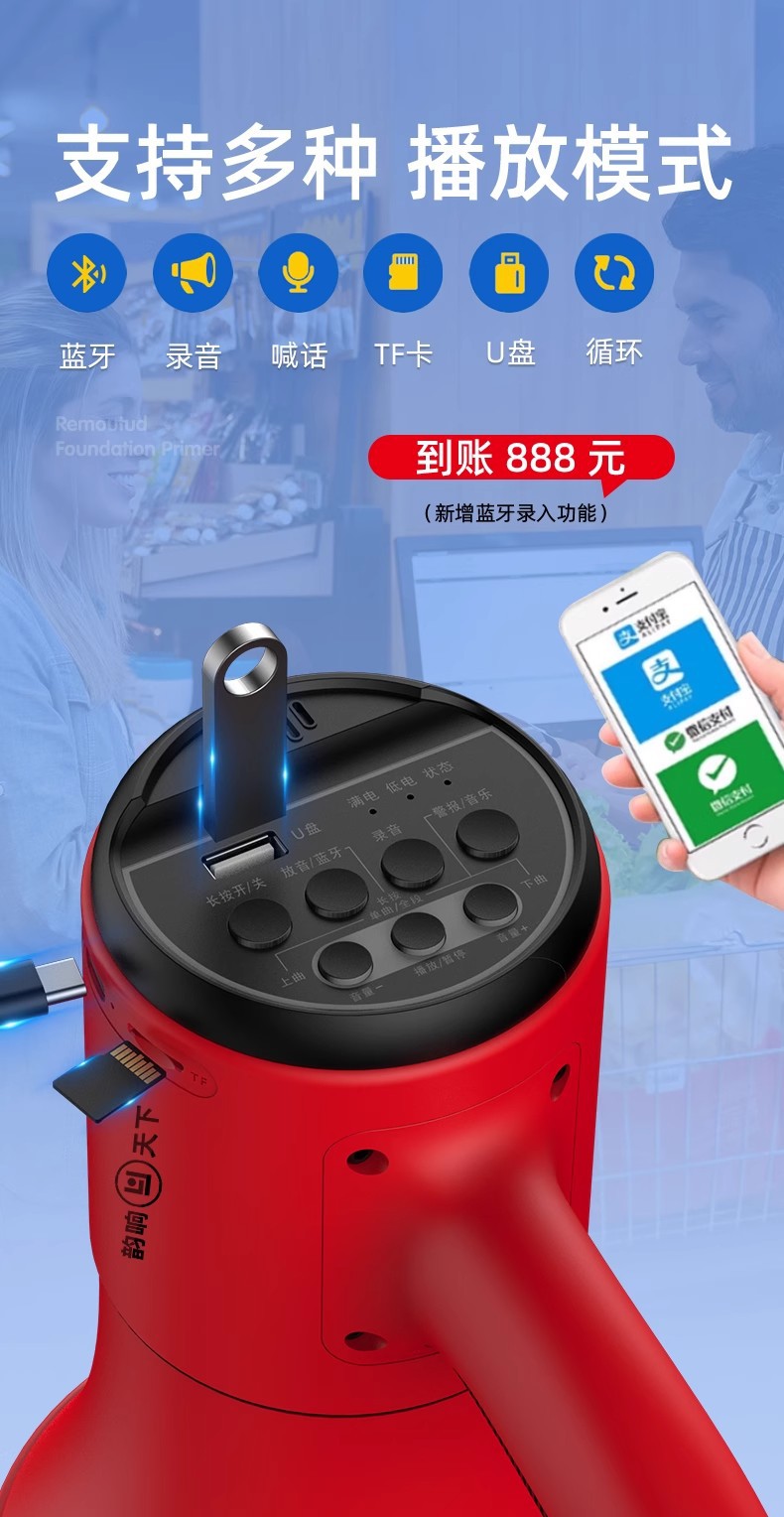 Lanyun Bluetooth 휴대용 메가폰은 야외 노점 판매 및 홍보 확성기 스피커를 녹음할 수 있습니다.스토어 가기