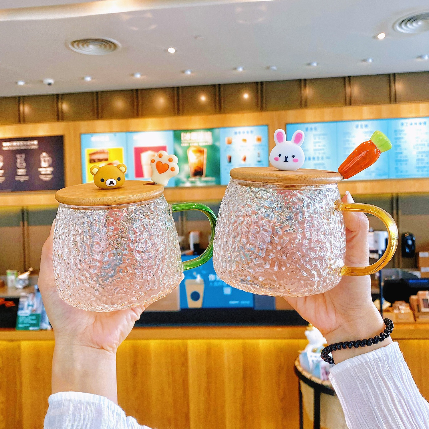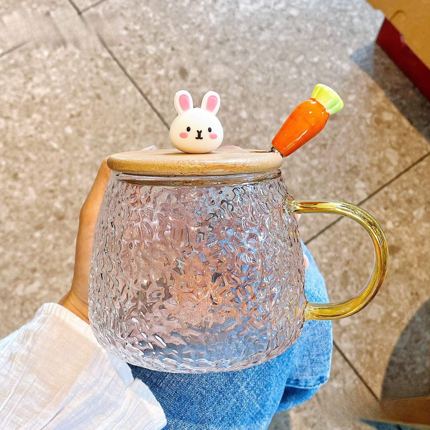 여성용 고급 여름 물컵, 고붕규산염 고온 방지 유리컵, 커플 머그, 뚜껑이 있는 스푼, 사무실스토어 가기