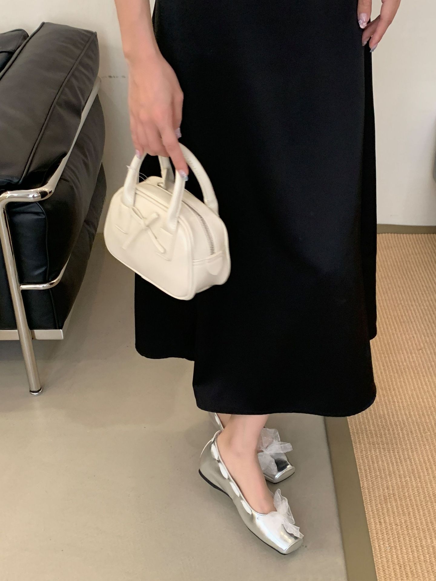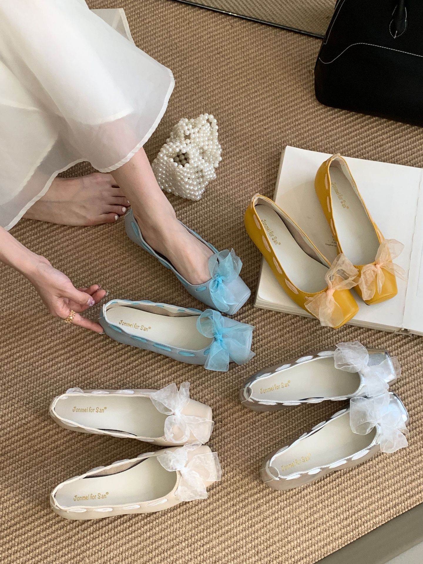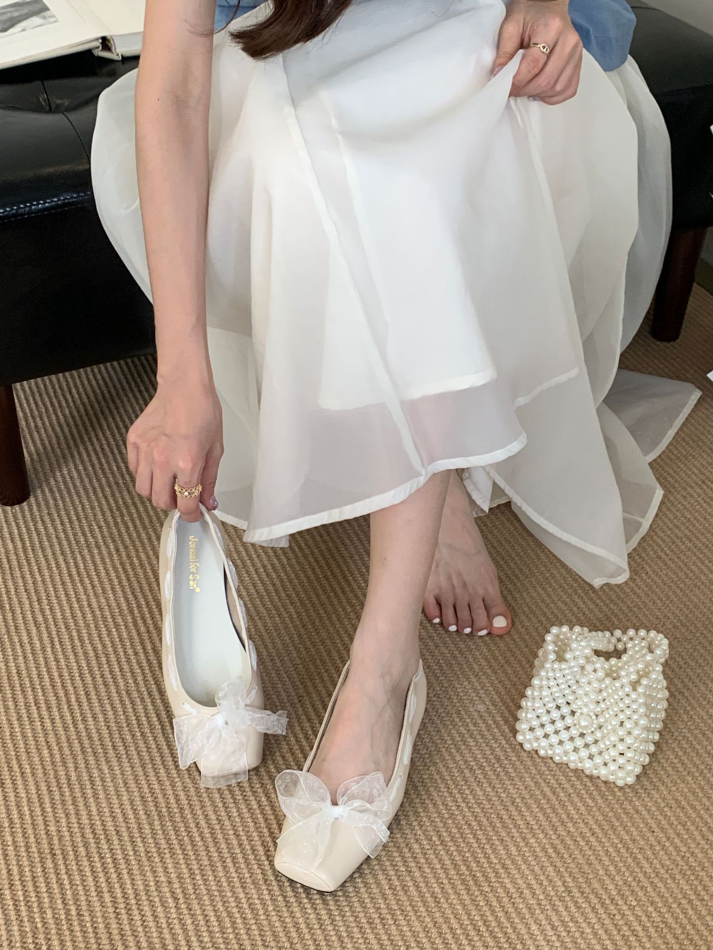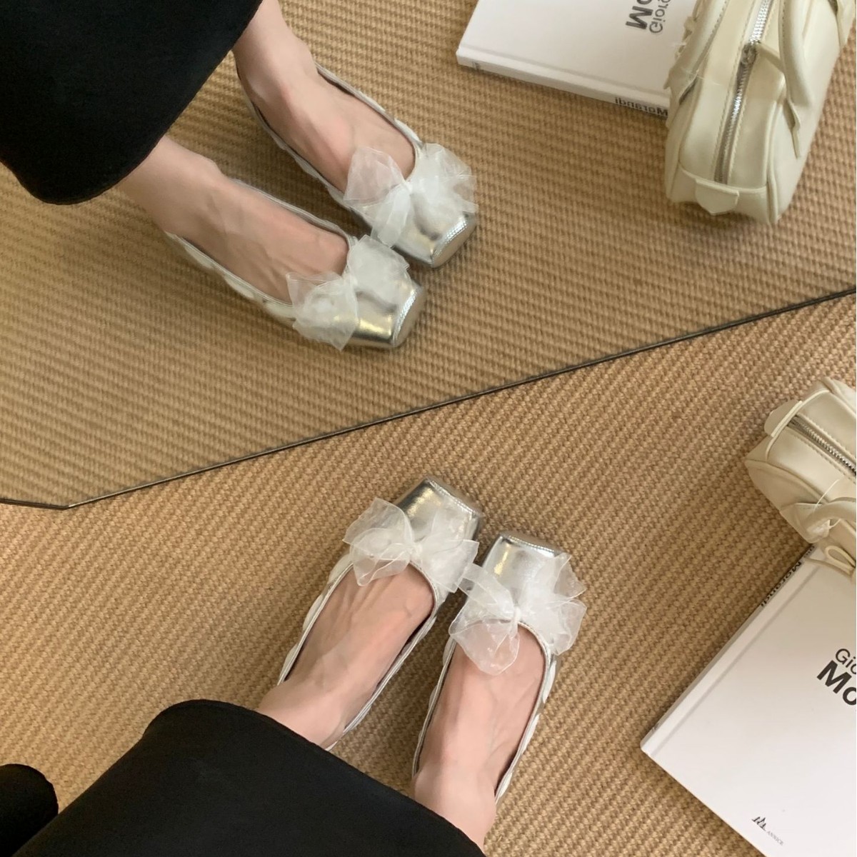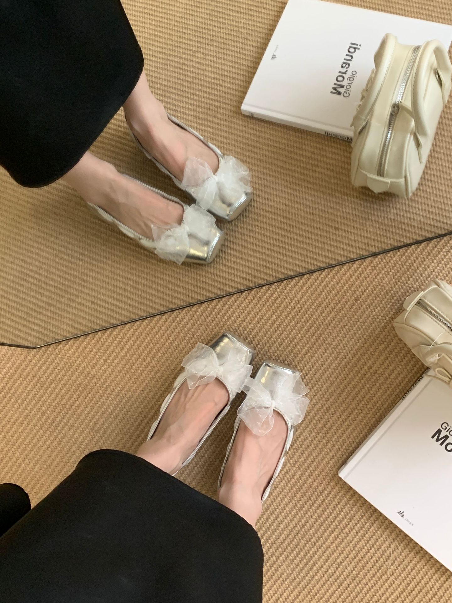 2025 이브닝 바람 보우 펌프스 다용도 실버 리본 메리 제인 틈새 기질 여성화