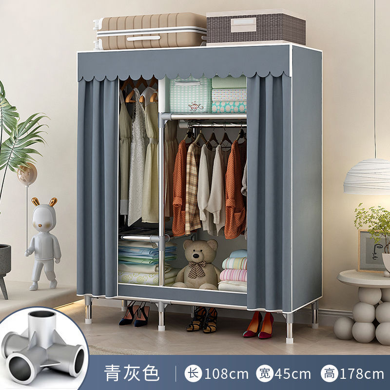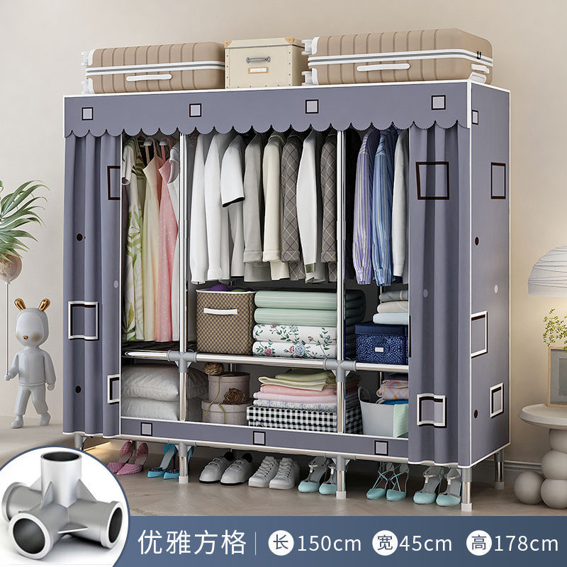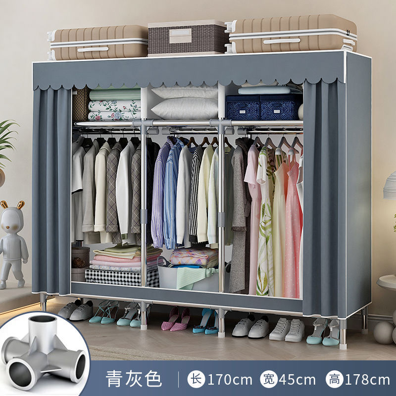 간단한 옷장 홈 침실 조립 천 옷장 임대실 보관 전체 강철 프레임 두꺼운 바닥 옷장 선반스토어 가기