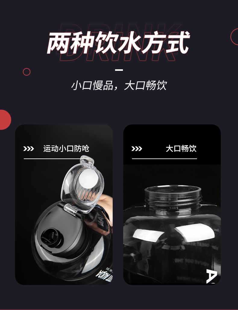 물 컵 대용량 고온 방지 톤 버킷 2024 새로운 스타일 소년 배꼽 피트니스 스포츠 물병 2000ml스토어 가기