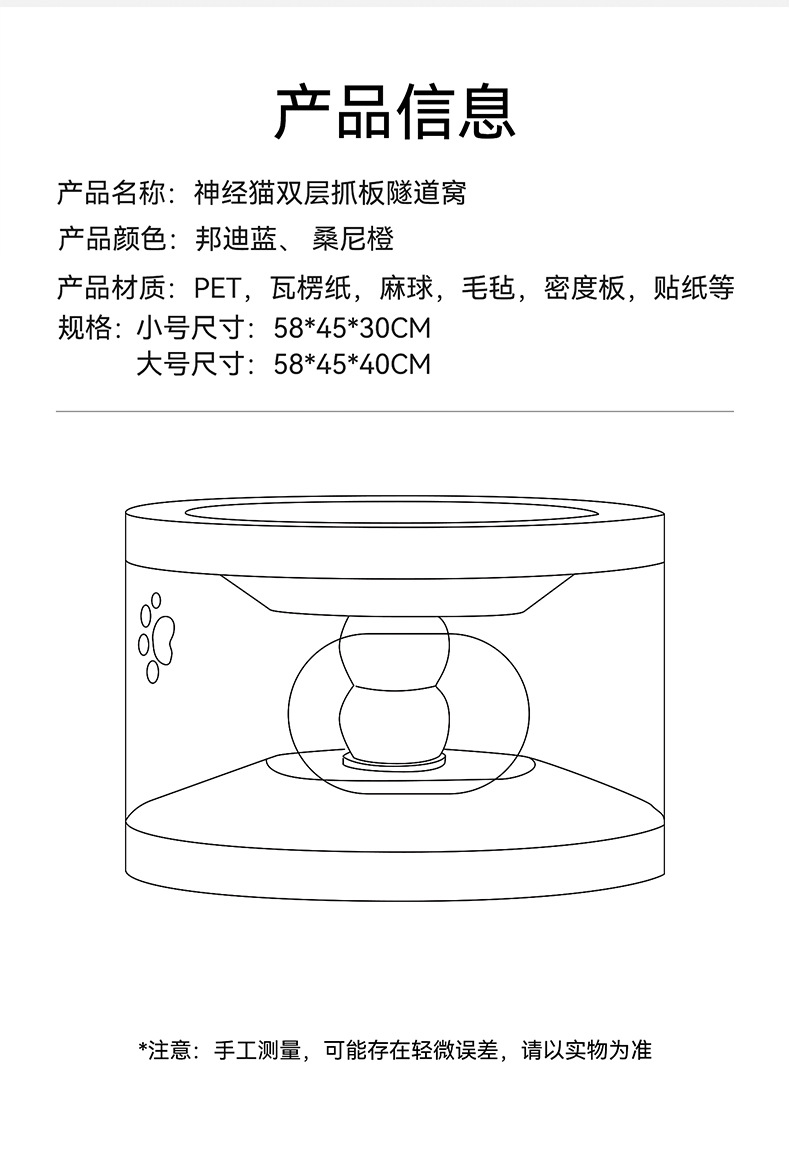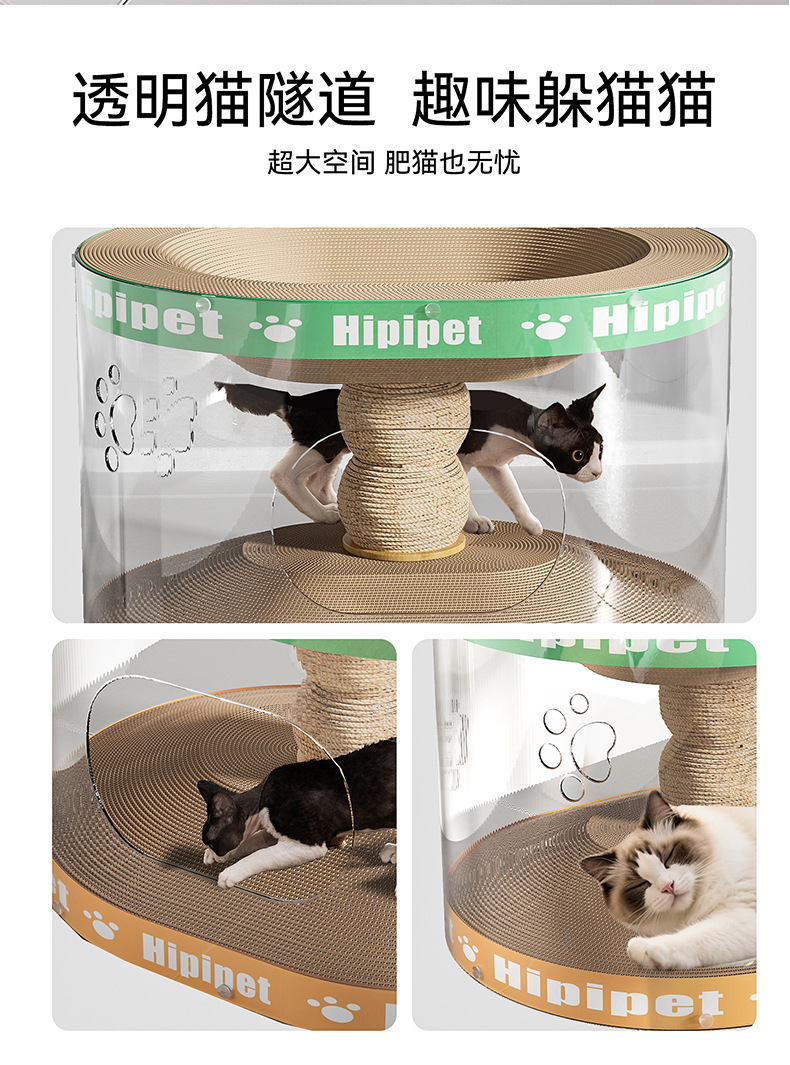 고양이 용품, 고양이 둥지, 일체형 고양이 스크래치 보드, 내마모성, 긁힘 방지, 부스러기 없는 골판지 애완 동물 성인 고양이 이중층 고양이 터널