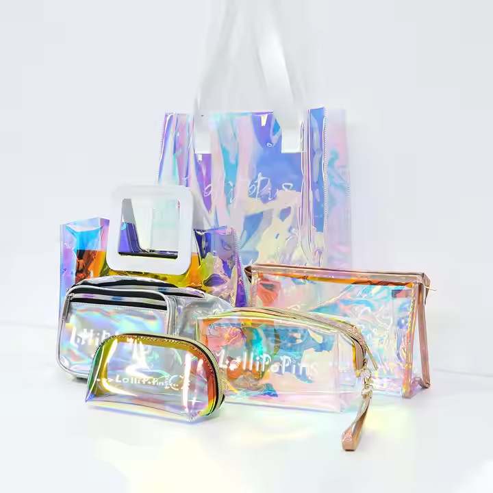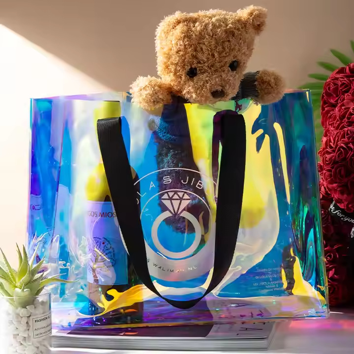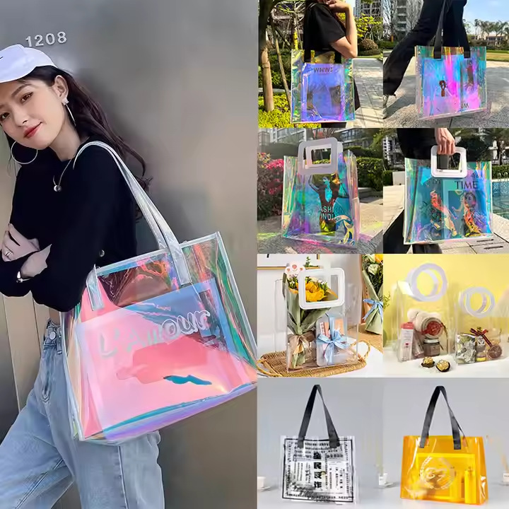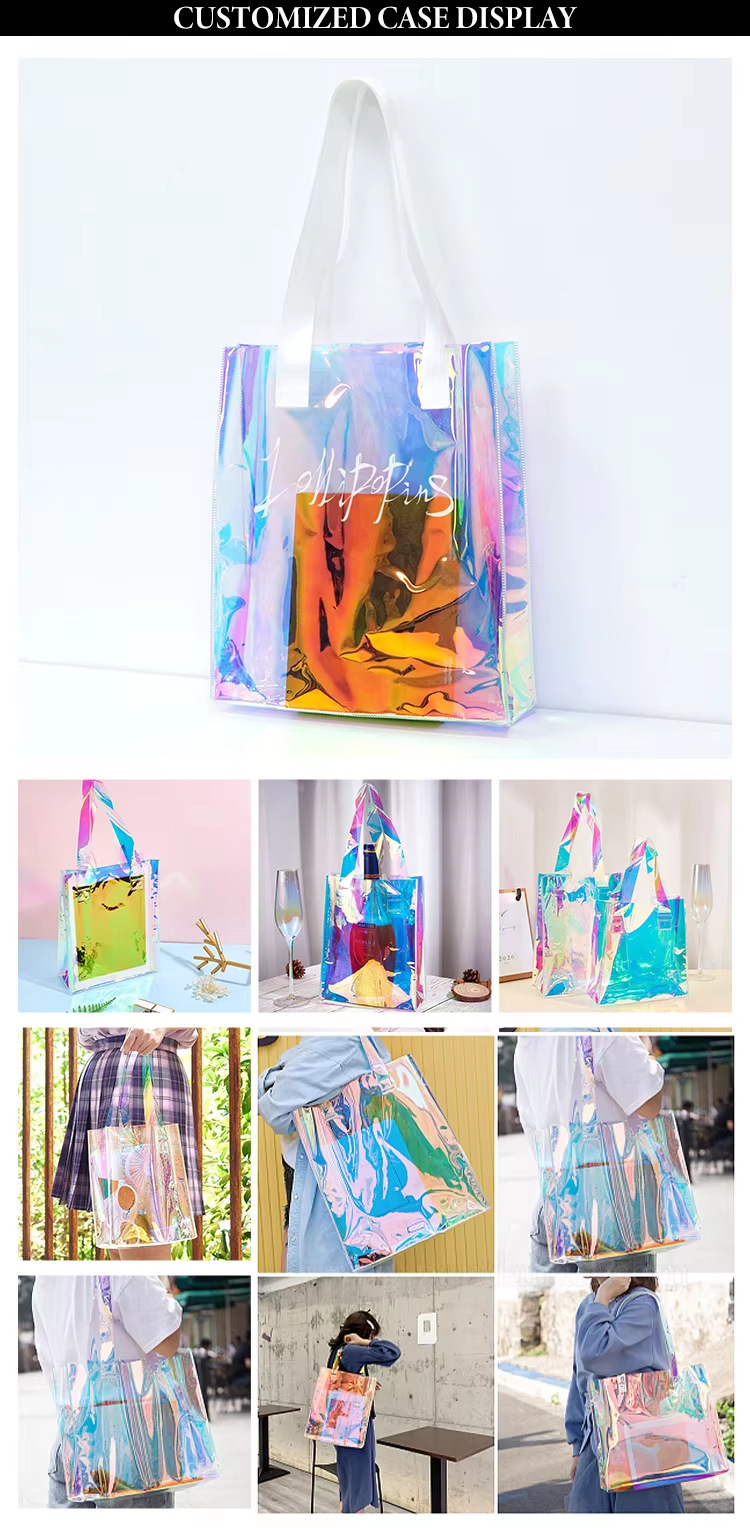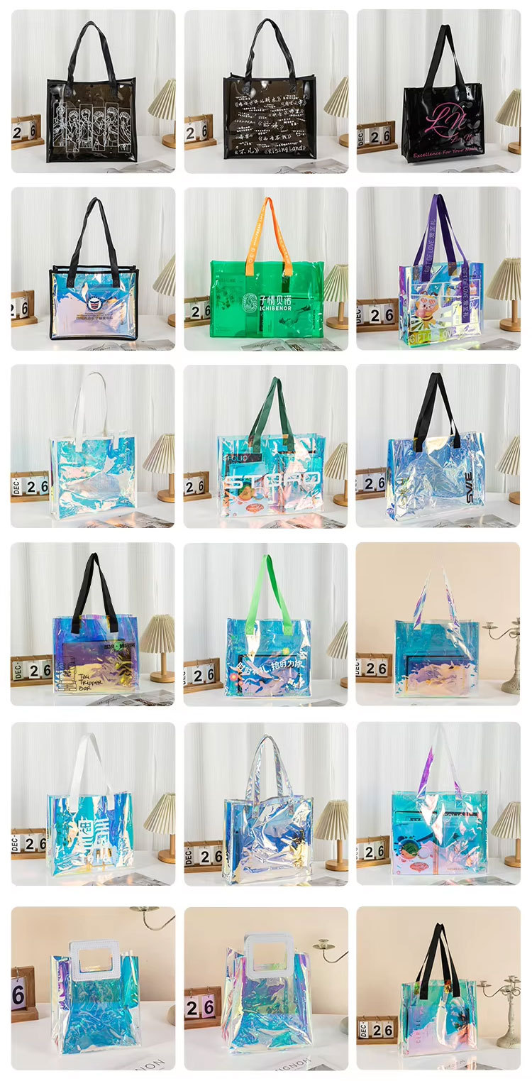 PVC 레이저 핸드백 로고 인쇄 가능 투명 레이저 쇼핑백 고급 기념품 보관 가방 제조업체 맞춤 제작