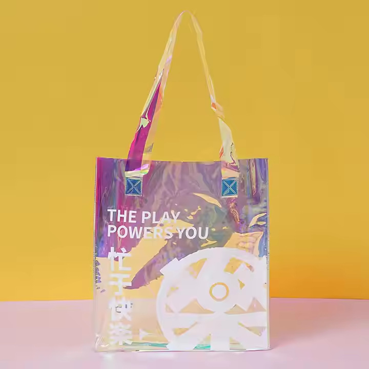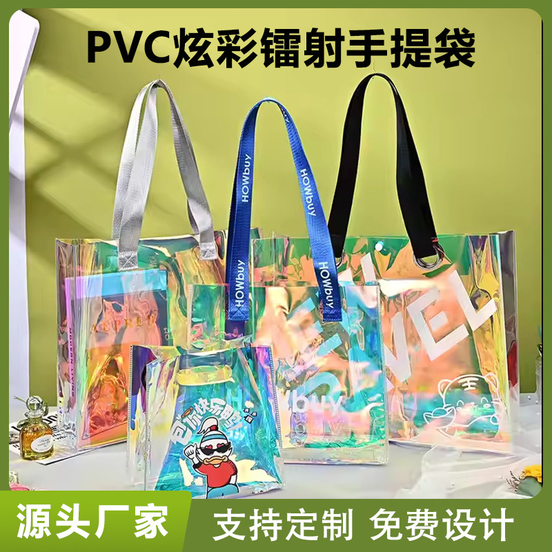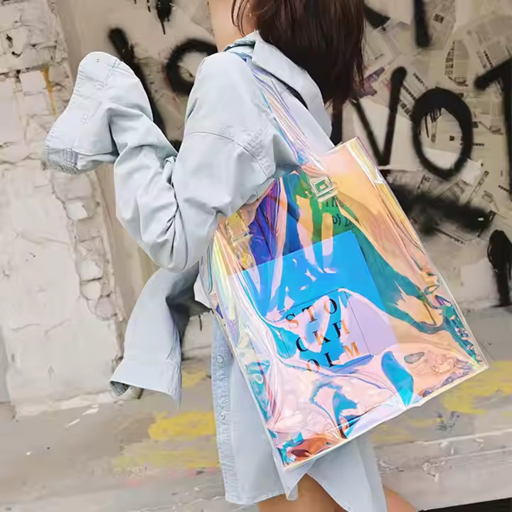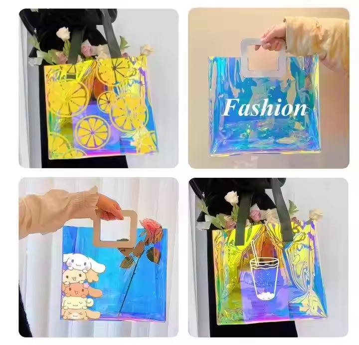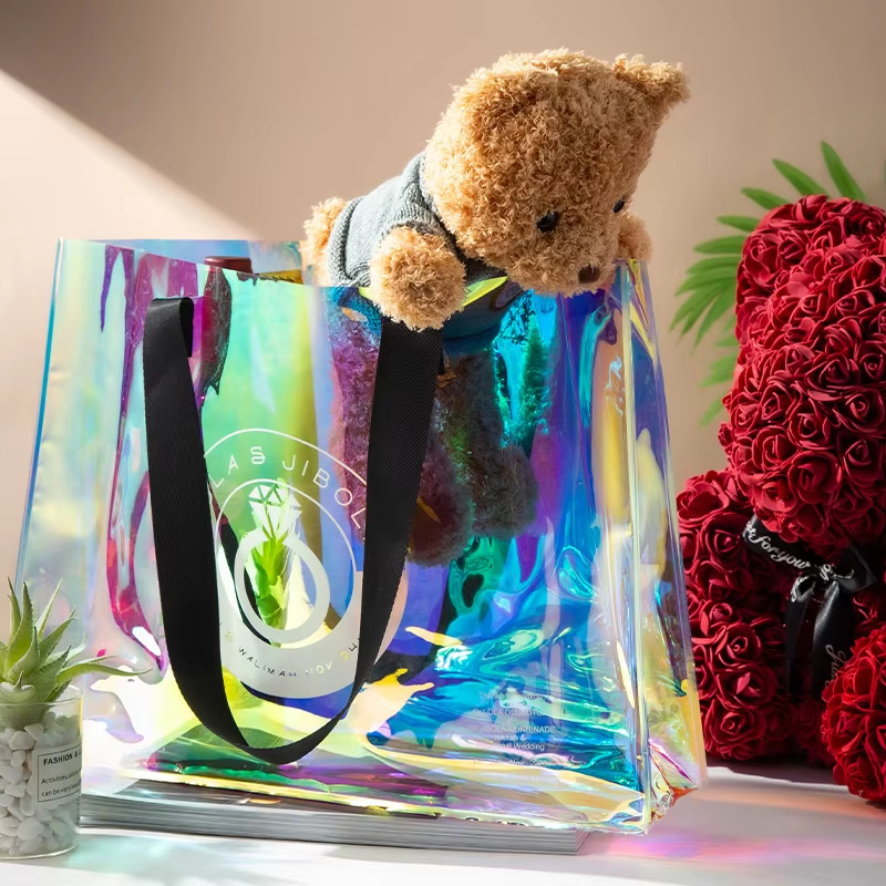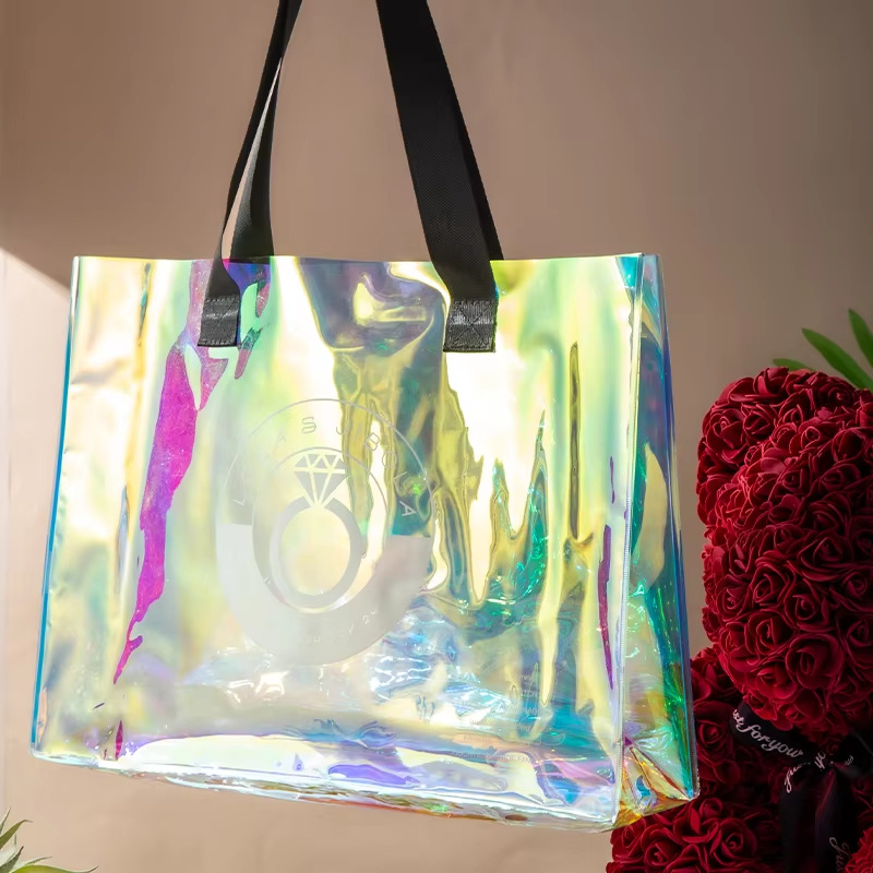 PVC 레이저 핸드백 로고 인쇄 가능 투명 레이저 쇼핑백 고급 기념품 보관 가방 제조업체 맞춤 제작스토어 가기